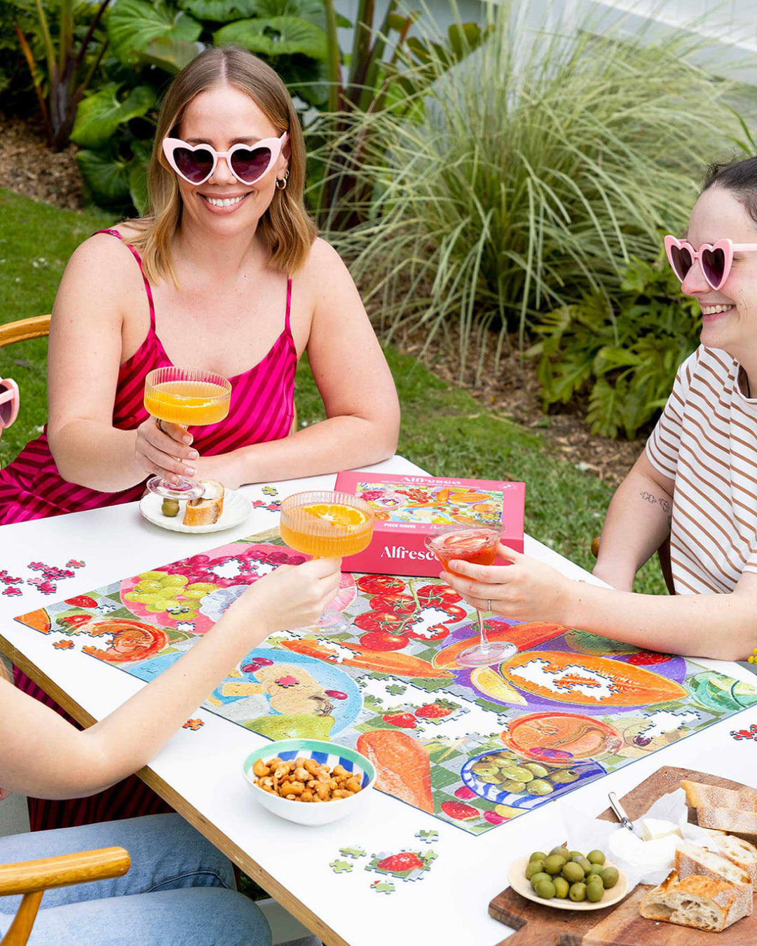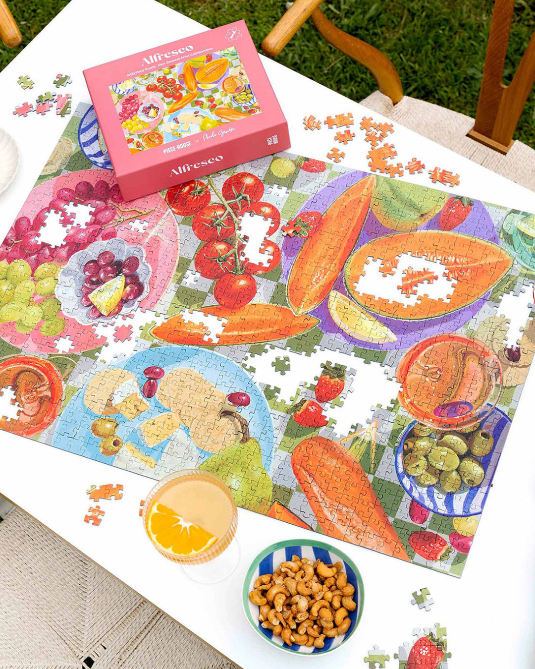 The artwork is contemporary and expressive, making these puzzles perfect for festive gatherings, quiet Sundays, or thoughtful moments with someone you love. Whether you lean into scenes of weekend brunch, warm summer days, floral compositions or coastal views, each Piece House puzzle brings something special to your home.