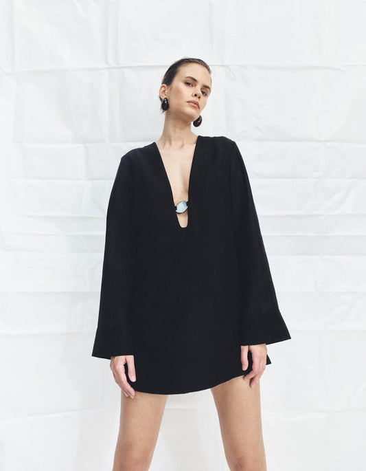 Paloma Plunged Long Sleeve Mini Dress