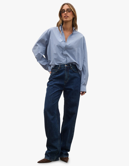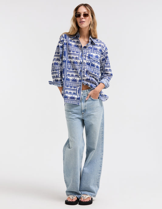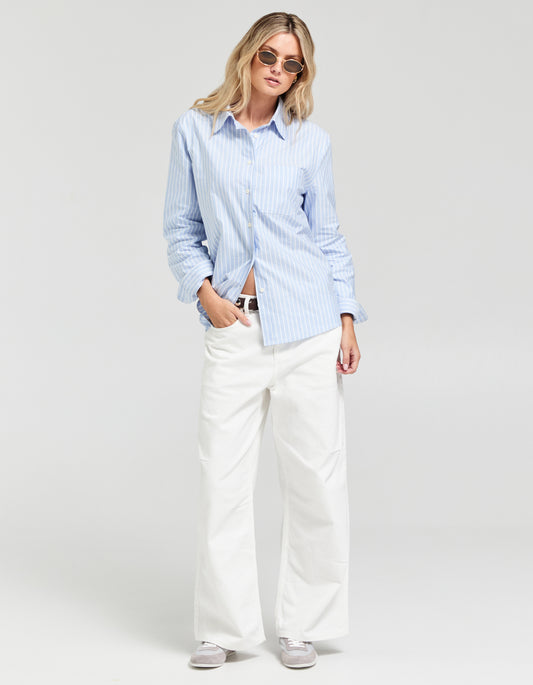 Tessa Poplin Cropped Long Sleeve Shirt Blue Stripe