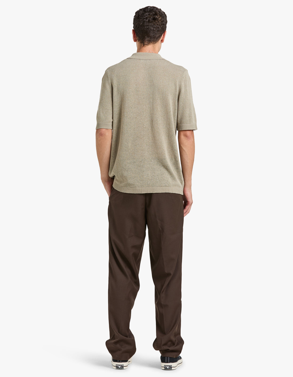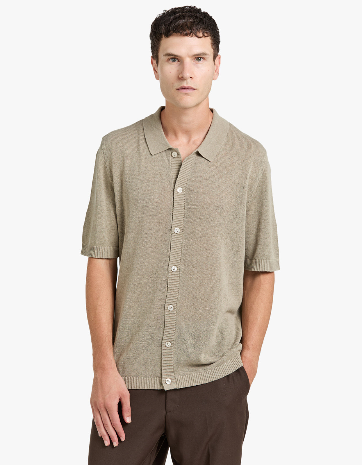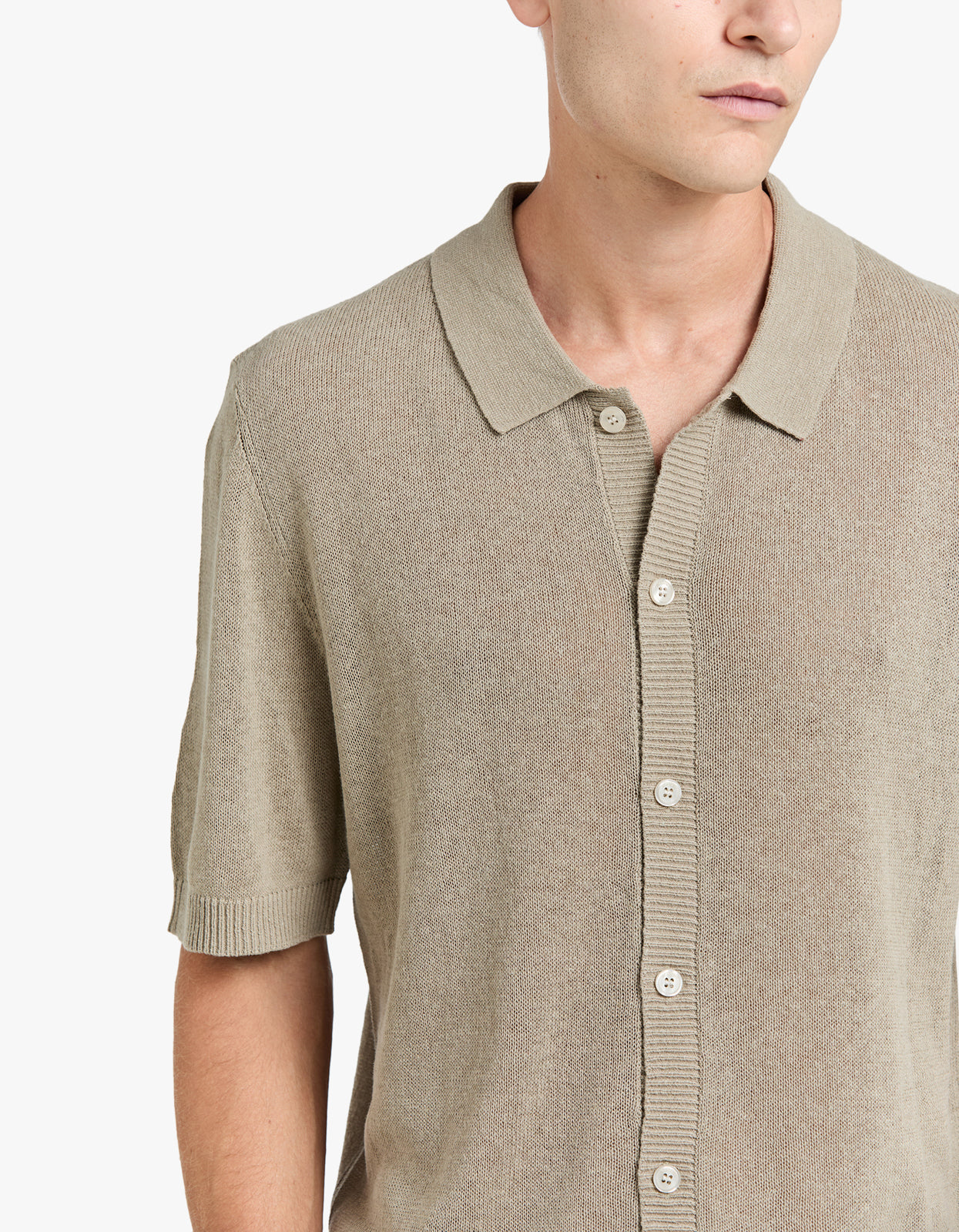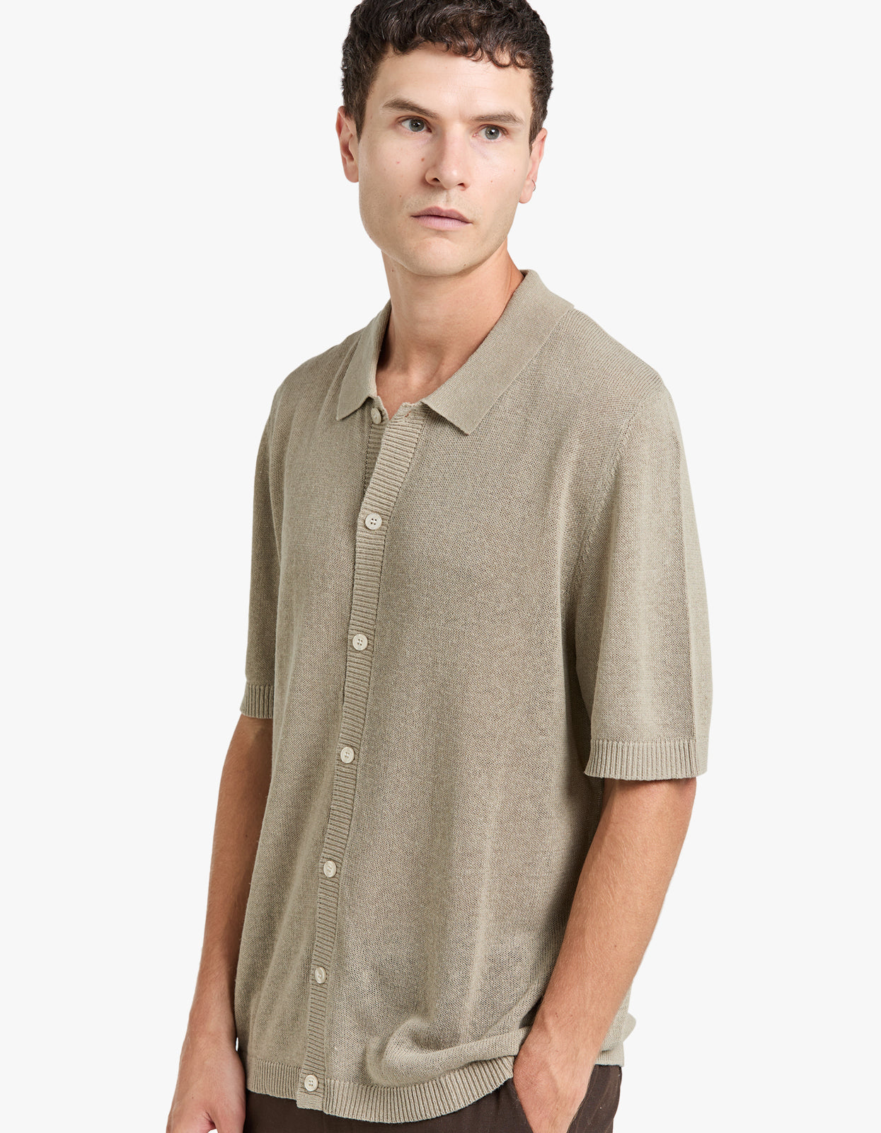 A luxurious must-have with premium linen blend yarn and a breathable, lightweight feel. The perfect alternative to a shirt, this polo channels a cool retro vibe when worn open over a tank. Elevate your summer wardrobe now.