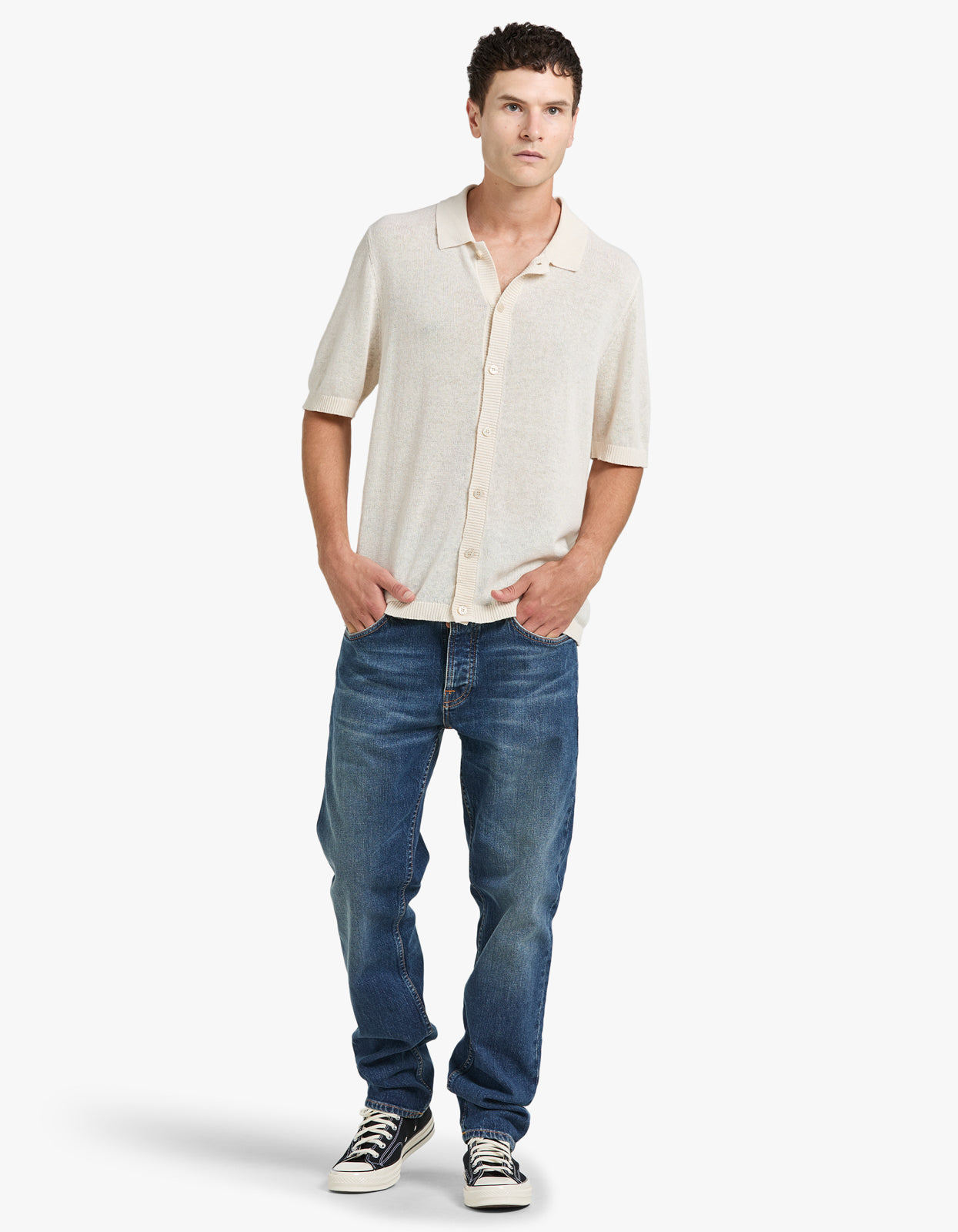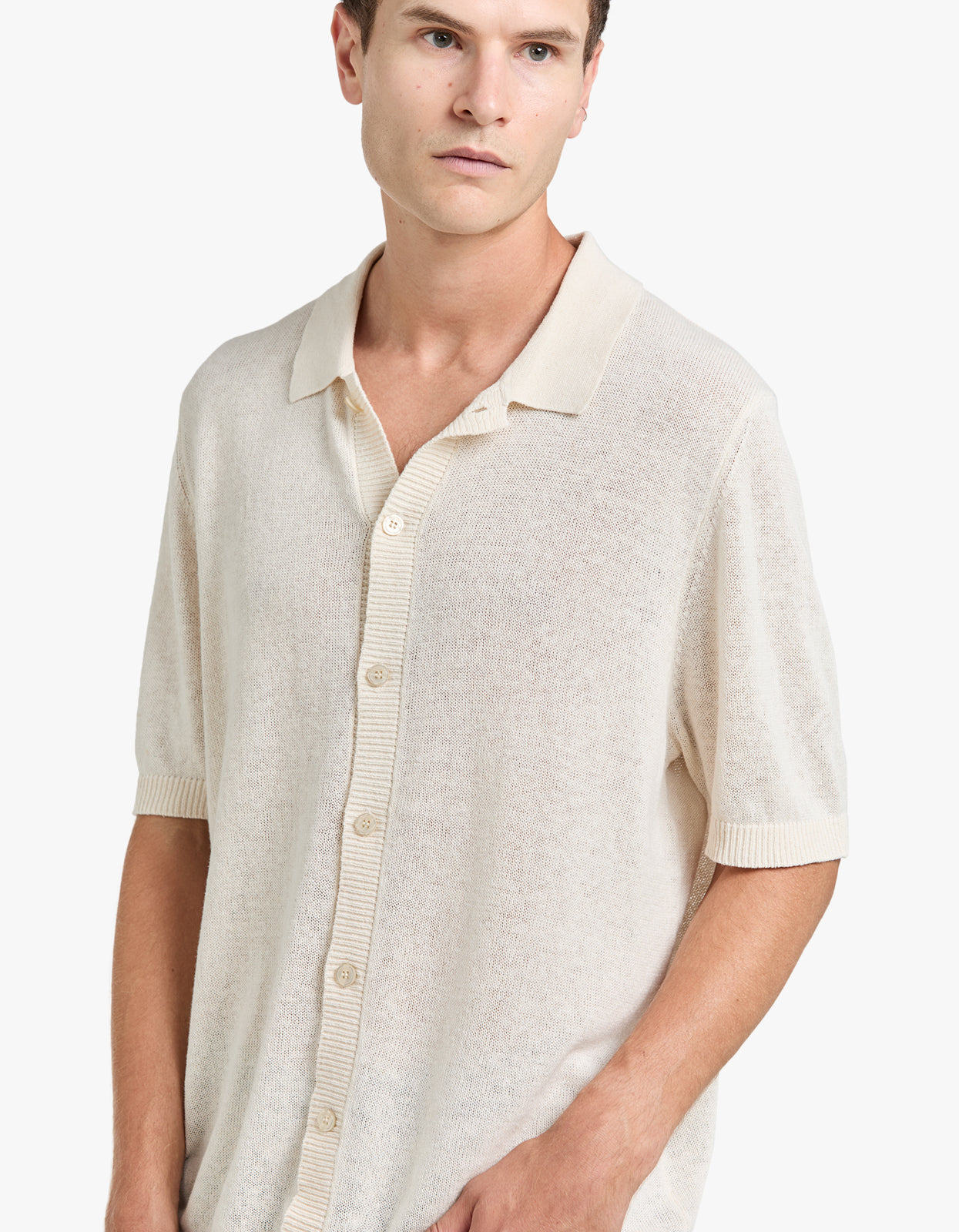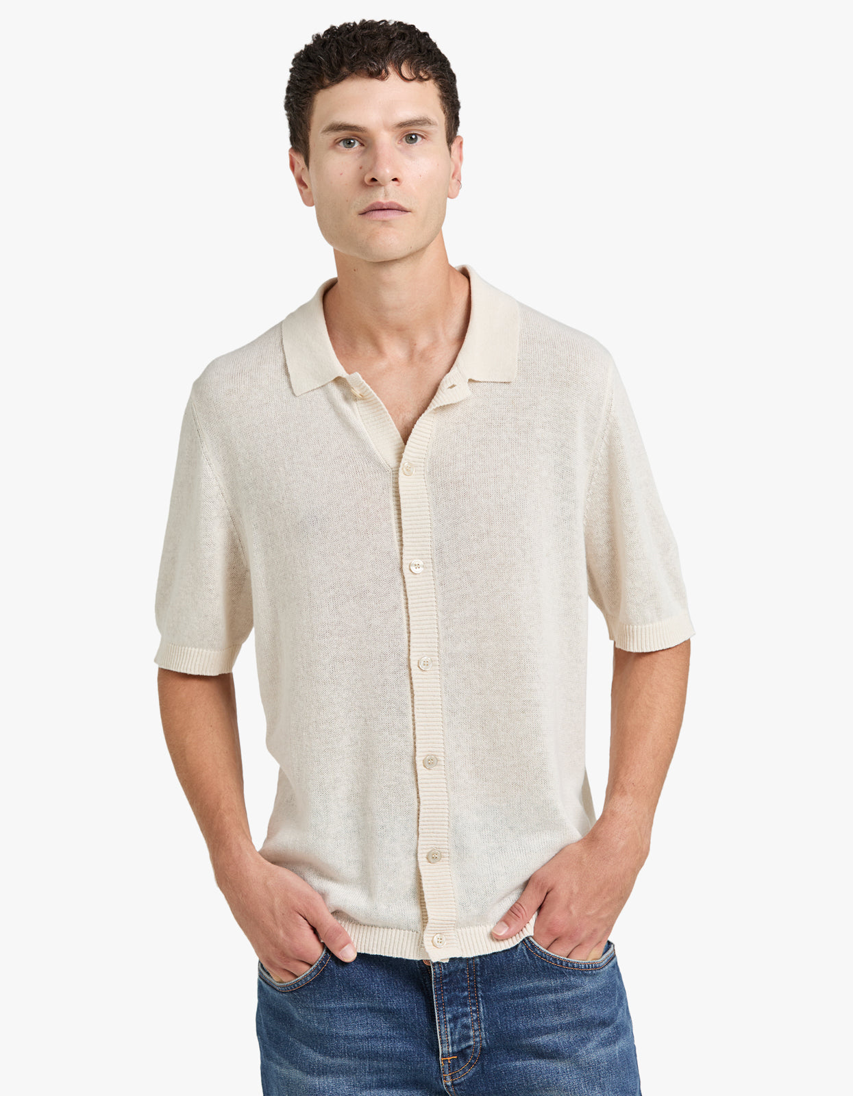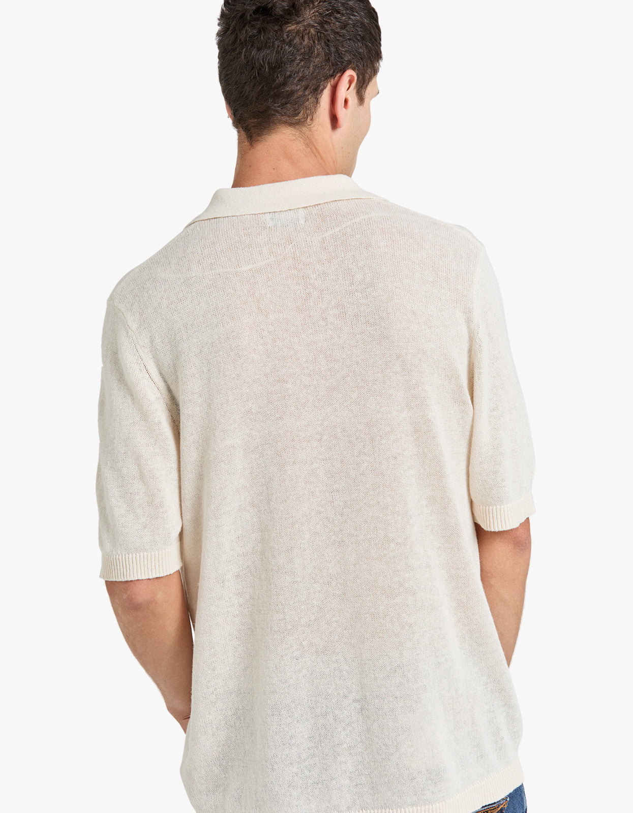 A luxurious must-have with premium linen blend yarn and a breathable, lightweight feel. The perfect alternative to a shirt, this polo channels a cool retro vibe when worn open over a tank. Elevate your summer wardrobe now.