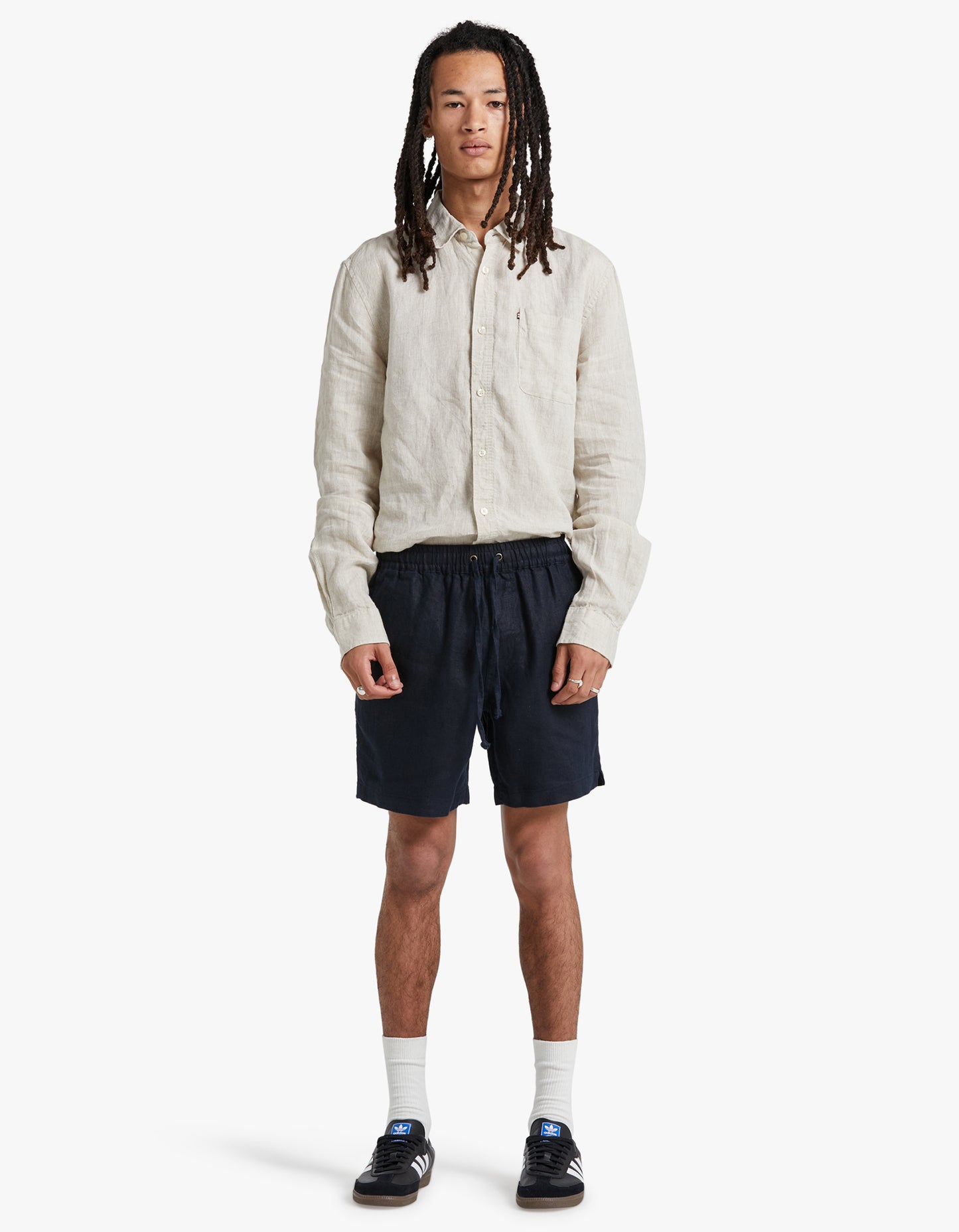 The Riviera Linen Short is essential for the upcoming summer, a completely effortless vibe with the elasticated drawcord waist and side pockets. Made from a comfortable linen, they're light and chill yet so easy to wear with a short sleeve shirt for a dressier look.