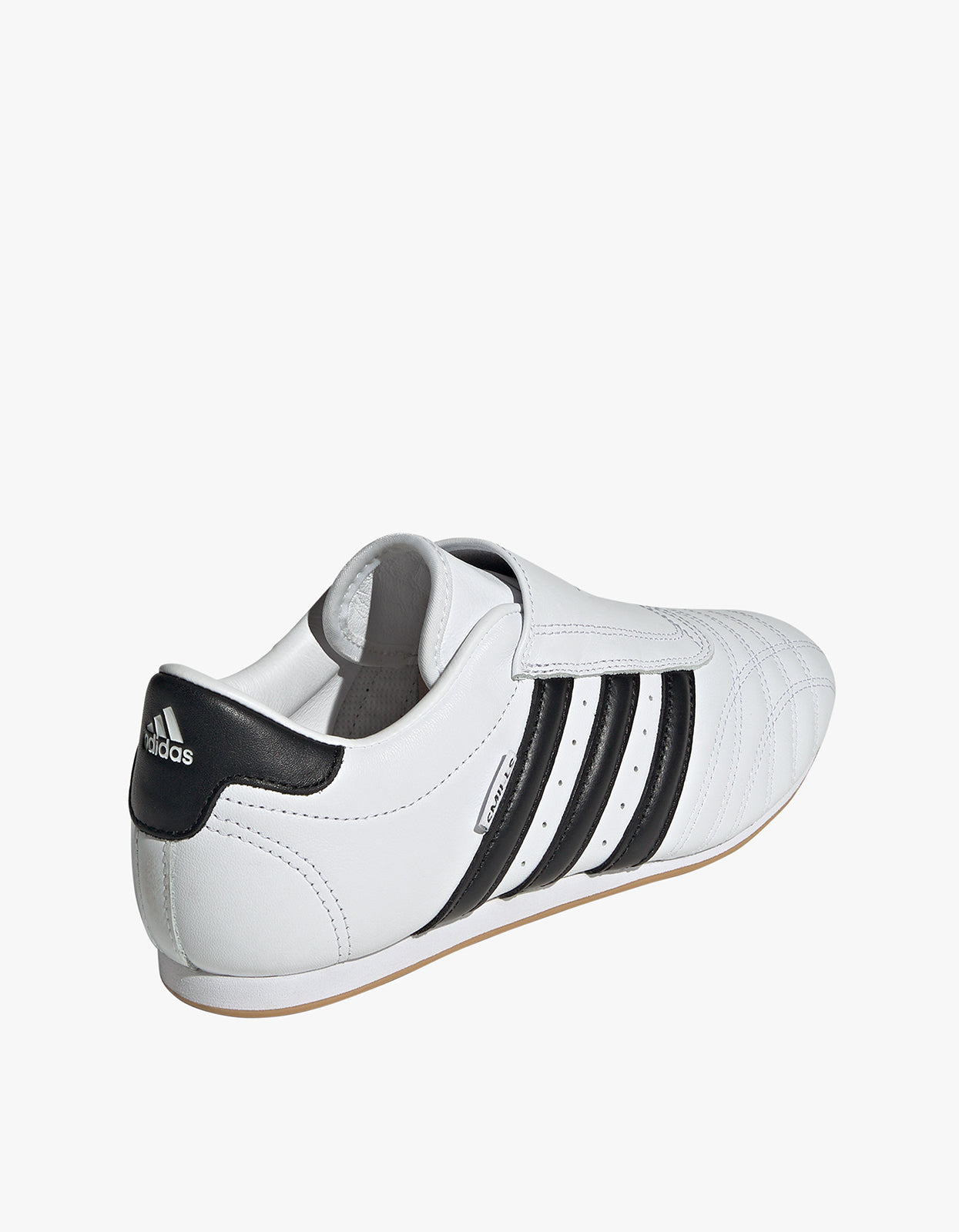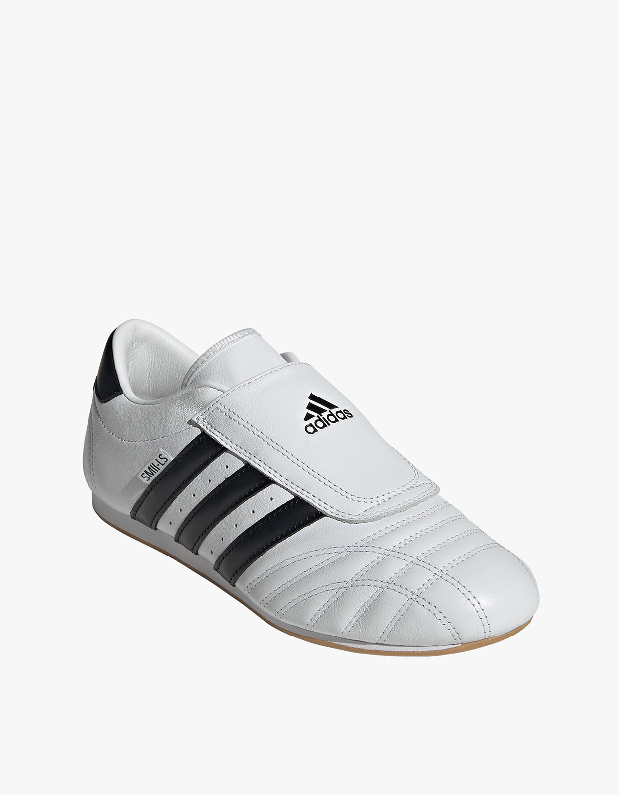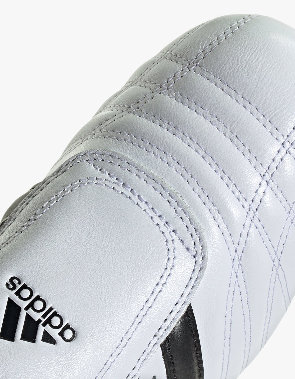Kick your way to victory with Adidas Womens Taekwondo Slip On shoes in white and black.