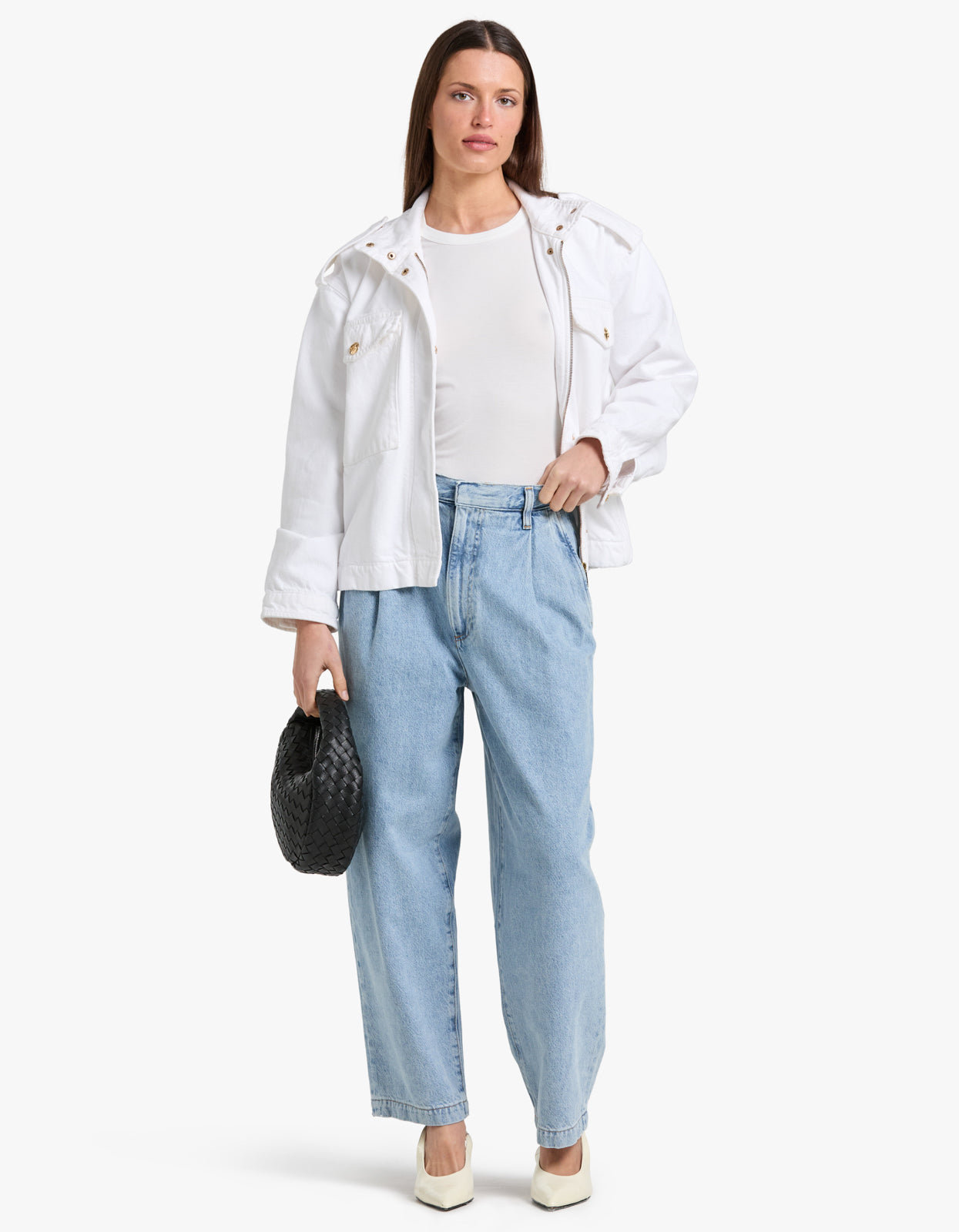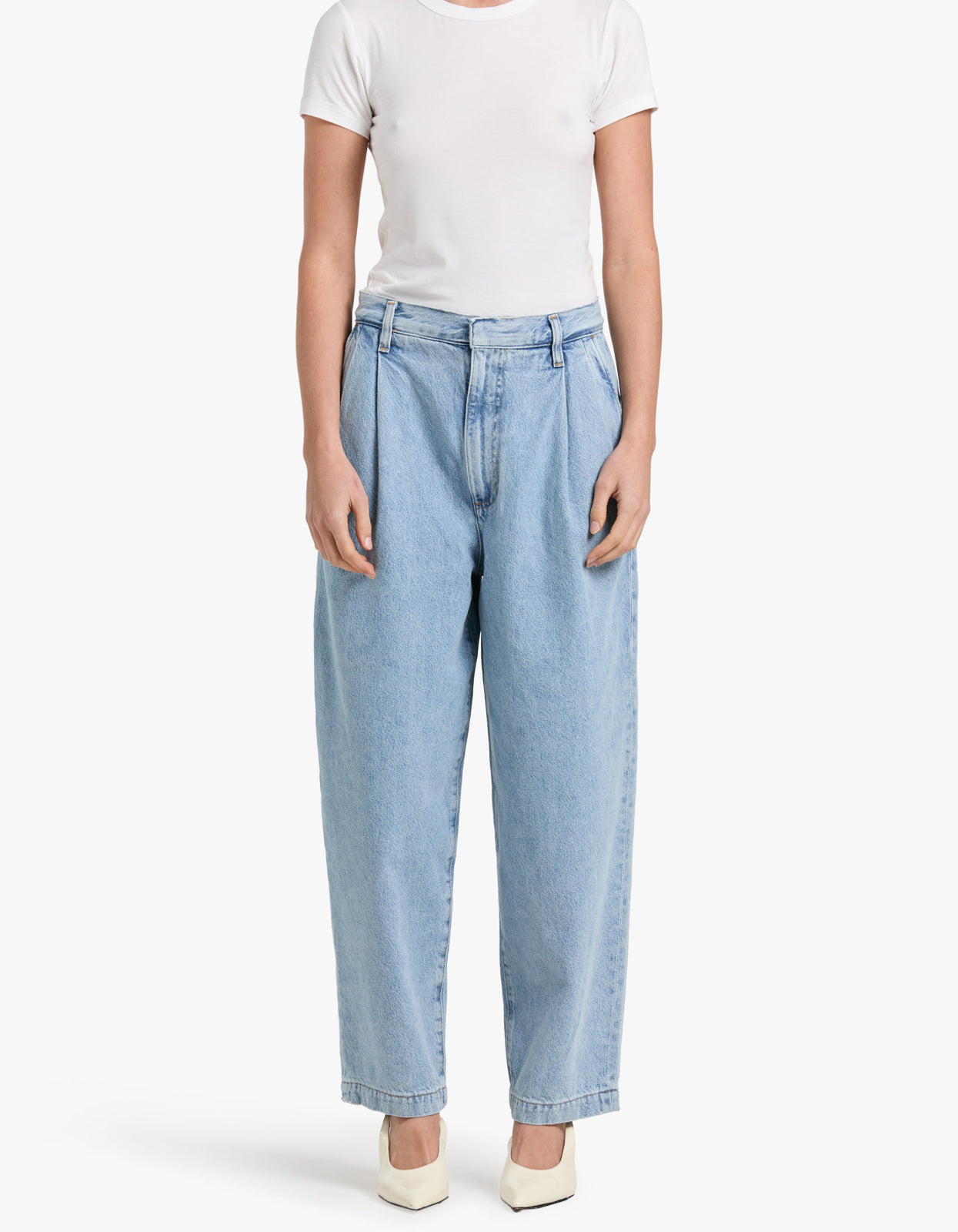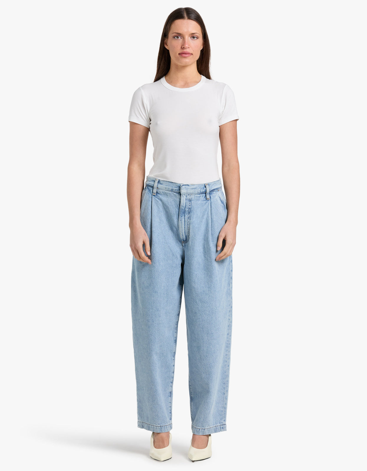 A minimalist trouser with a baggy tapered shape, crafted in our new polished twill. Its versatile design provides a sleek and polished look, perfect for any occasion.