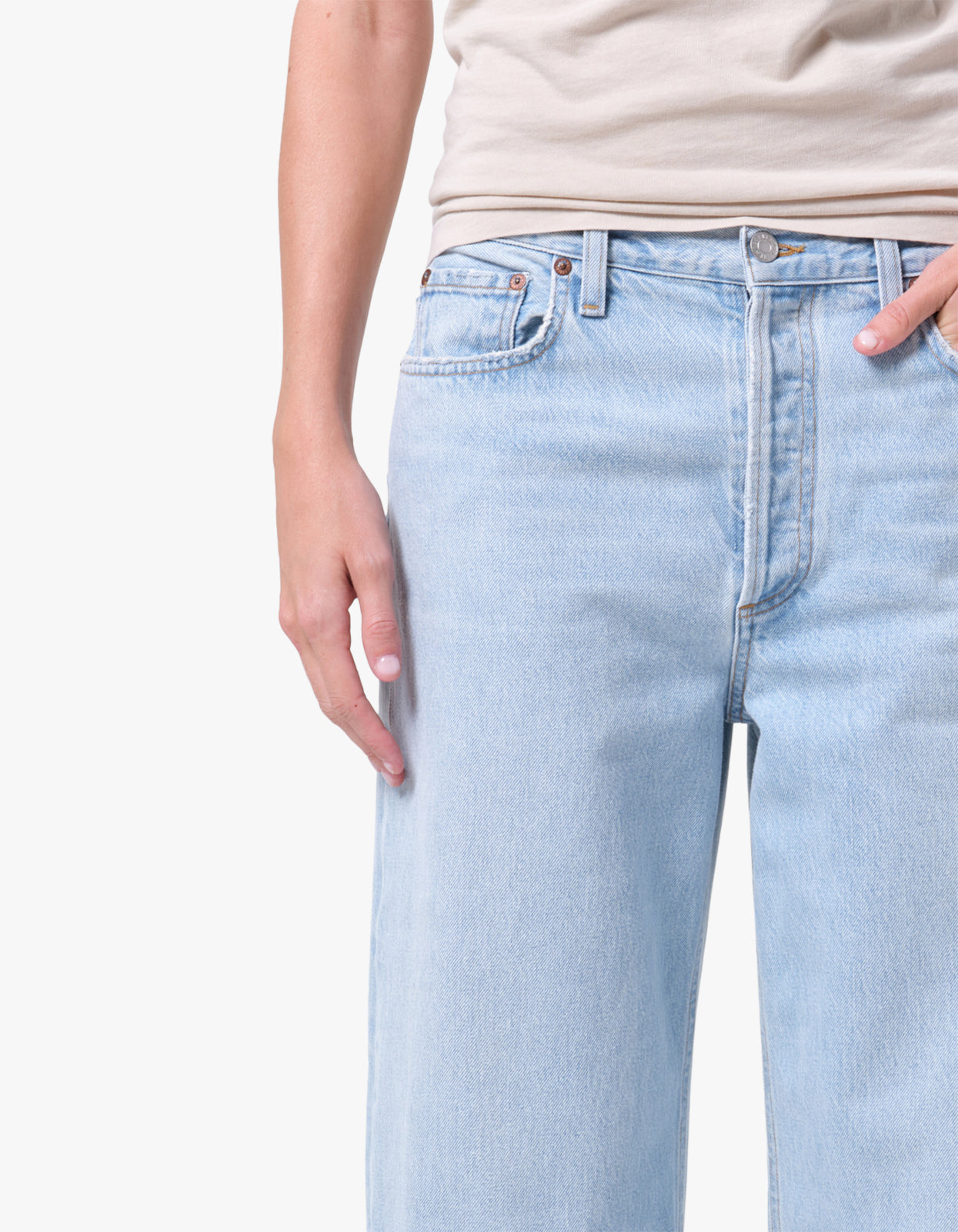 The Agolde Low Slung Baggy blends relaxed ease with sculptural drape. With its low-slung waist and intentionally baggy leg, it's designed in a light vintage indigo wash that offers a soft, naturally lived-in look that feels timeless and versatile.