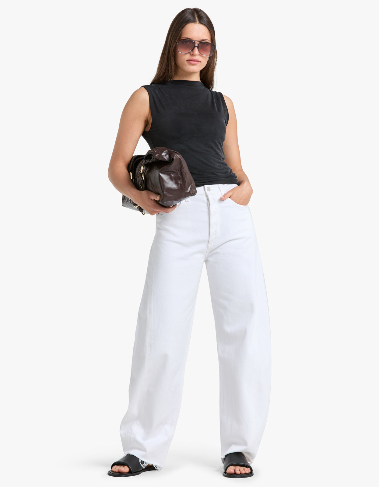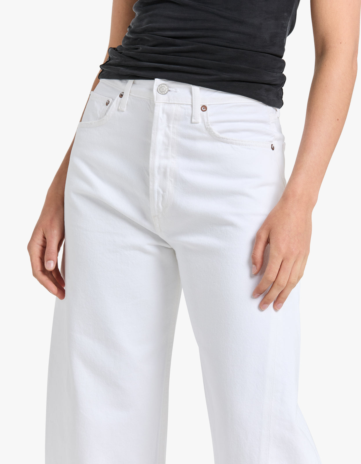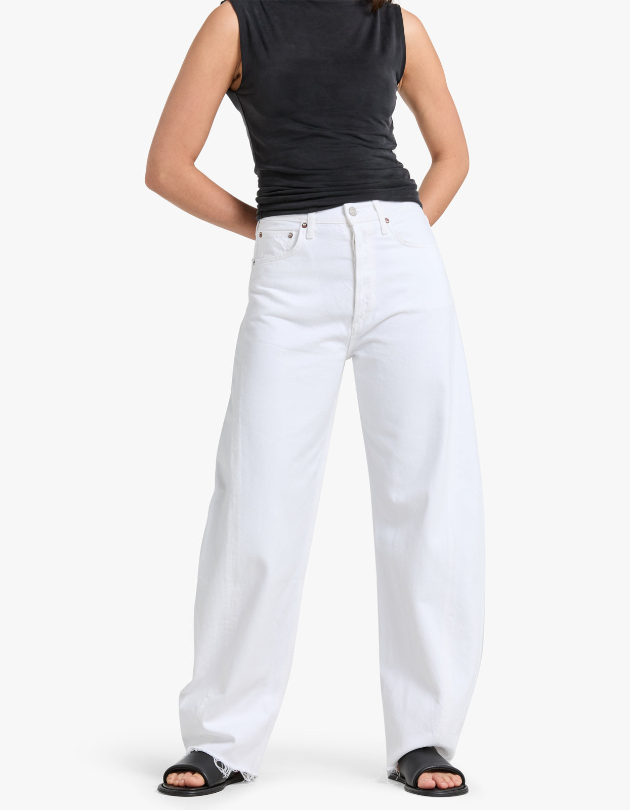 The Barrel Jeans everyone is obsessing over. The Luna Pieced Jean from Agolde is a most-wanted style from the balloon and barrel jean trend, designed with a waist-accentuating high-rise and full-length relaxed leg.