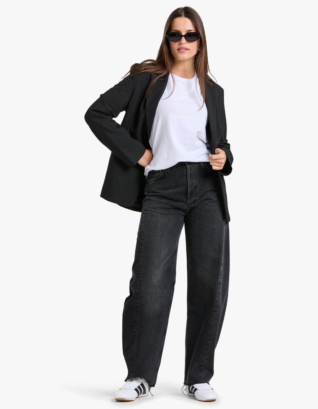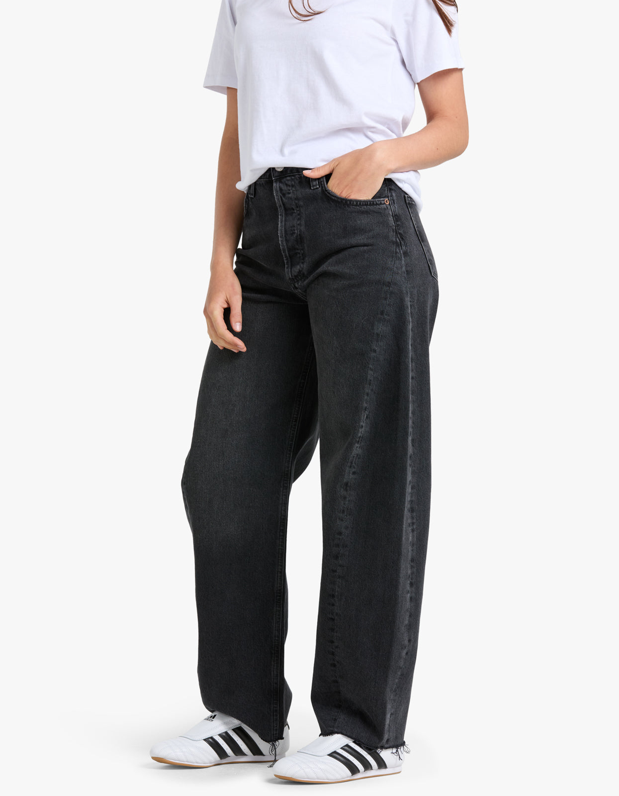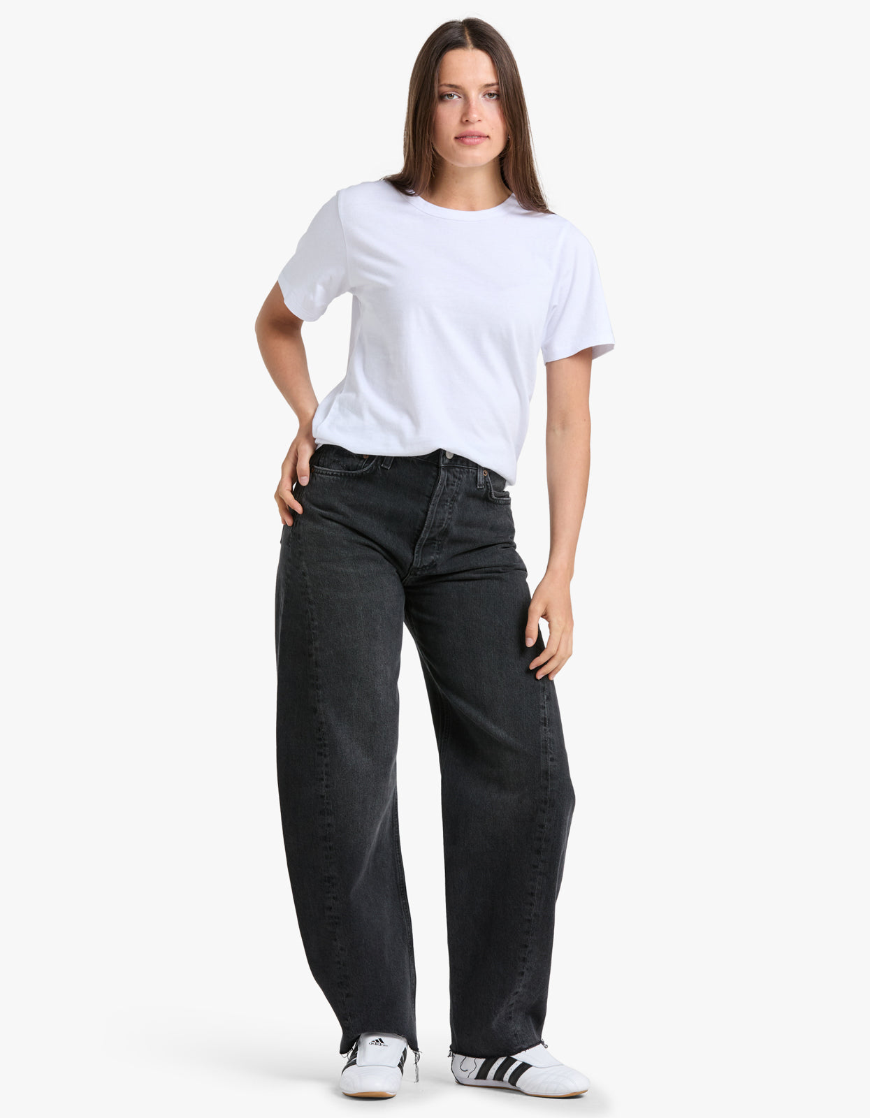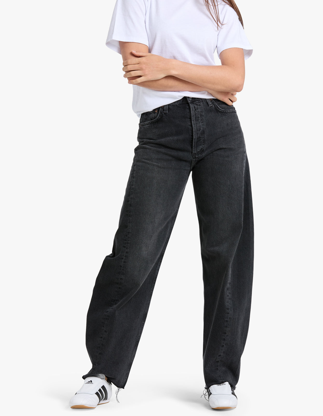 The Barrel Jeans everyone is obsessing over. The Luna Pieced Jean from Agolde is a most-wanted style from the balloon and horseshoe jean trend, designed with a waist-accentuating high-rise and full-length relaxed leg.