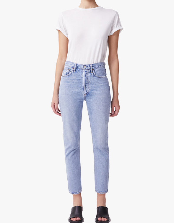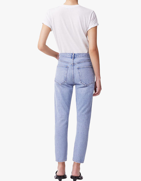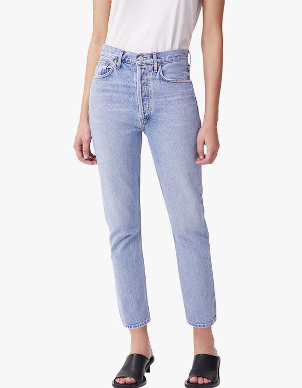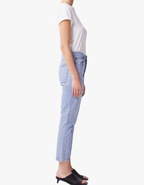 Agolde - the denim brand hailing from downtown LA, knows exactly what the cool modern woman wants. The Riley's are a high rise style in a stonewashed light blue. The straight leg that's cropped above the ankle is flattering and a nod to a favourite vintage pair.