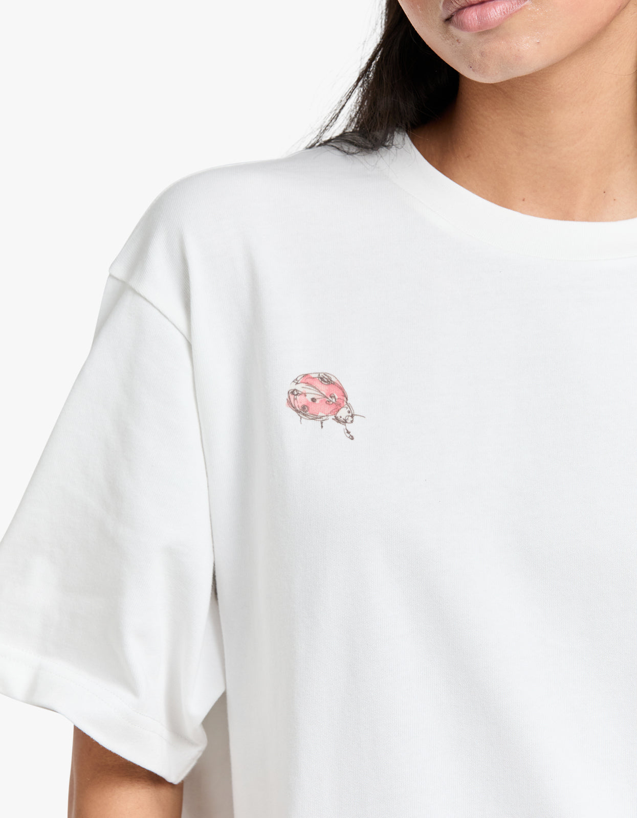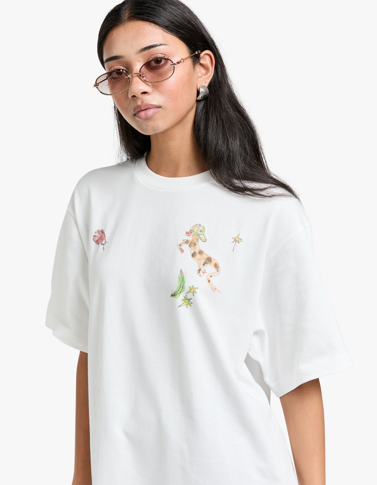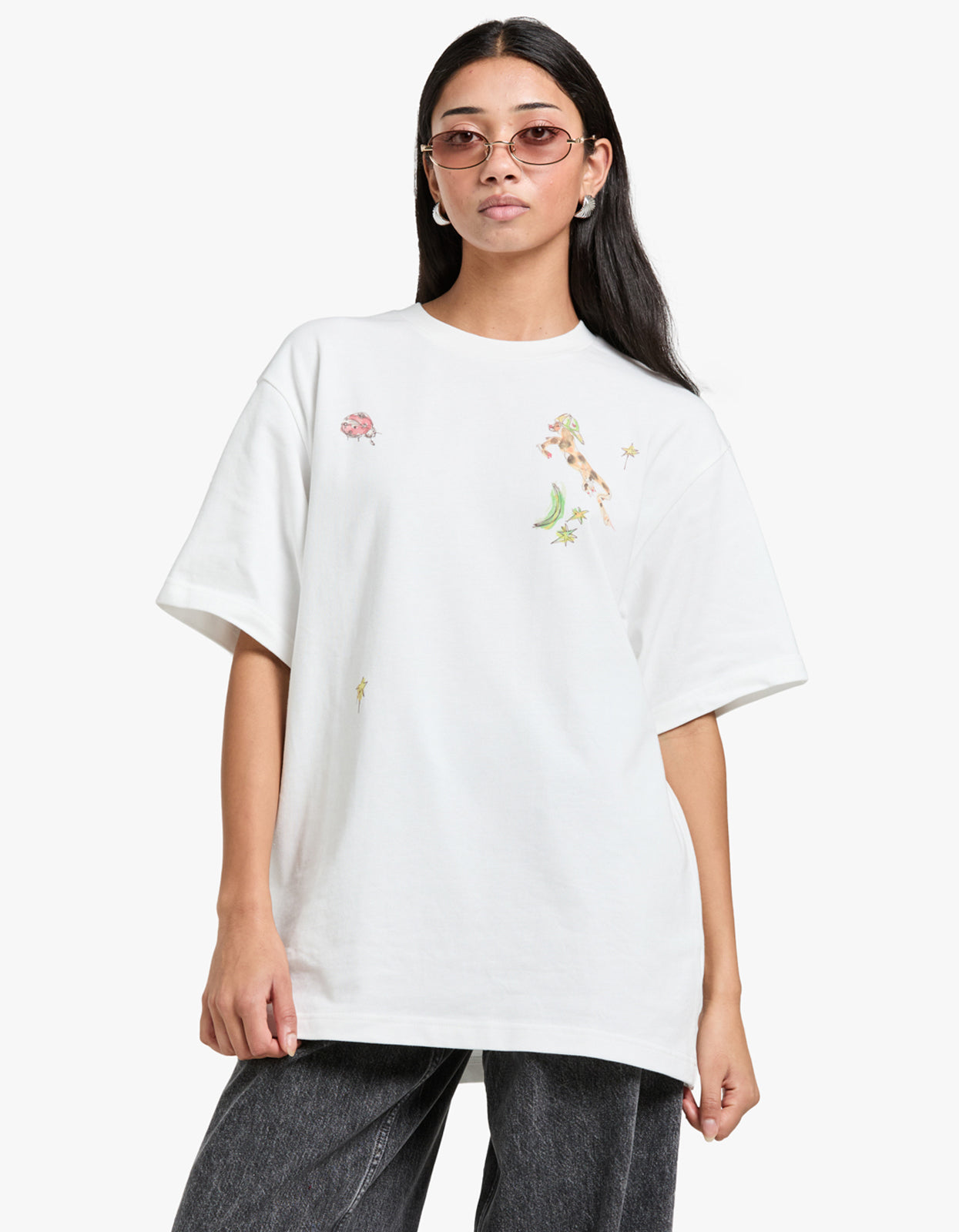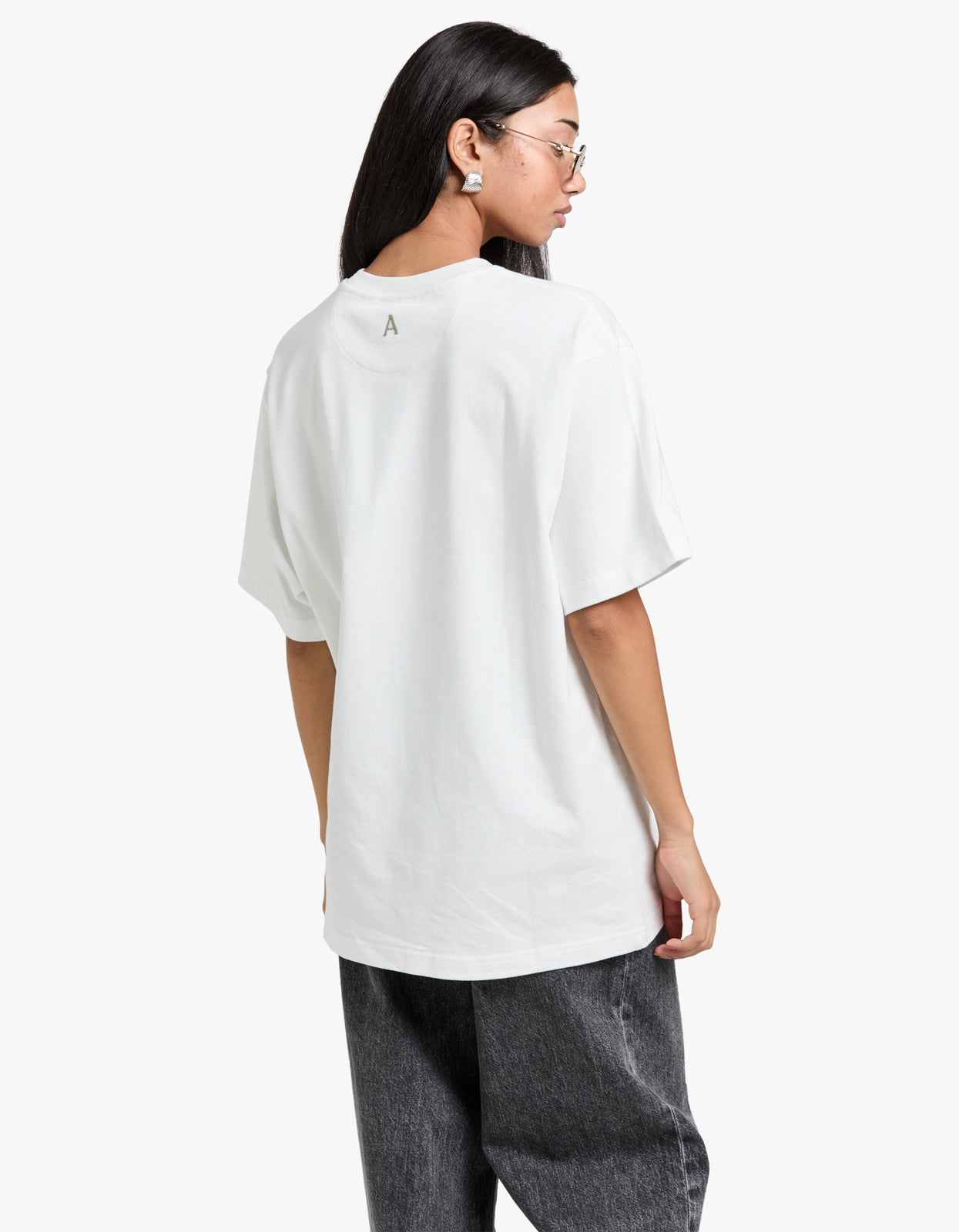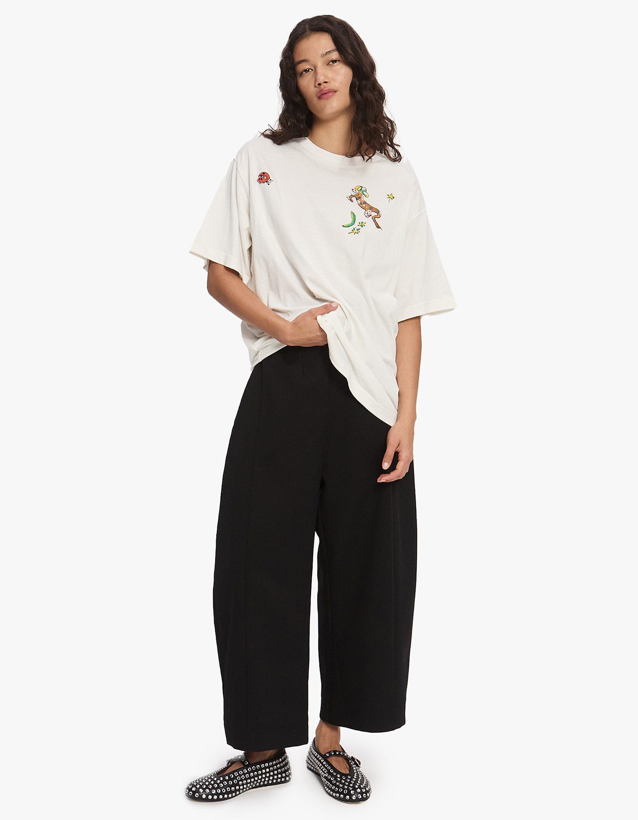 With delicate embroidery and a soft cream hue, this tee seamlessly combines luxury and comfort. Elevate your wardrobe with this exclusive piece and make a statement wherever you go.