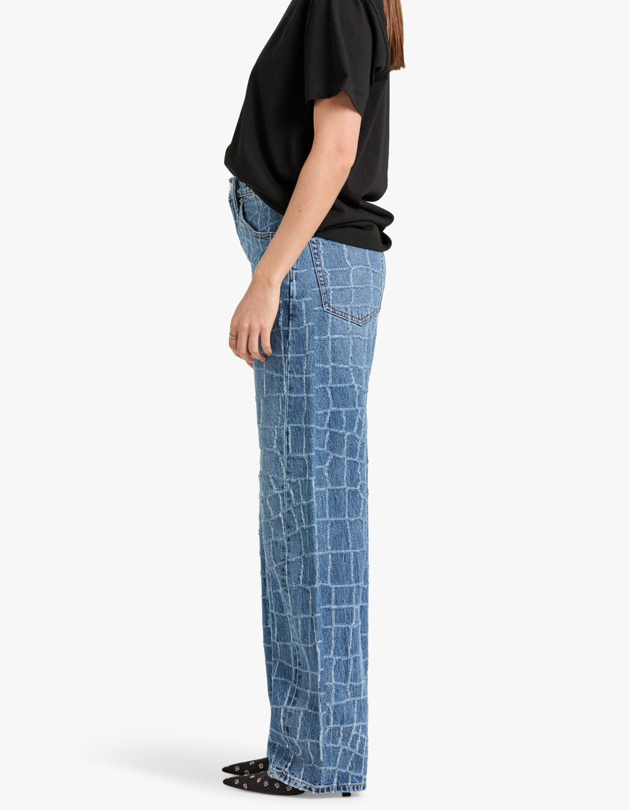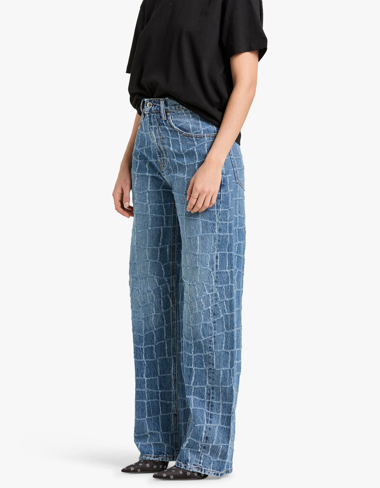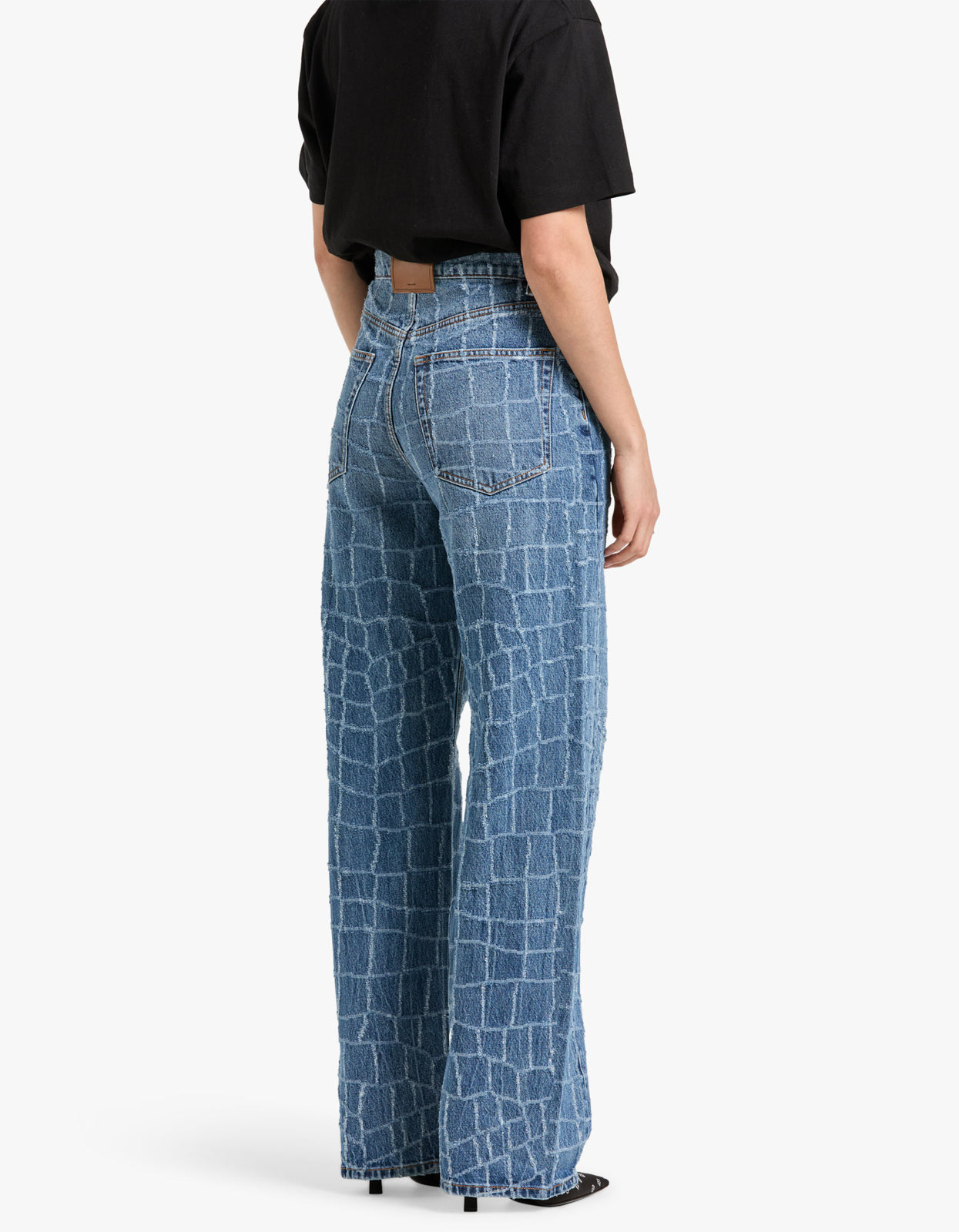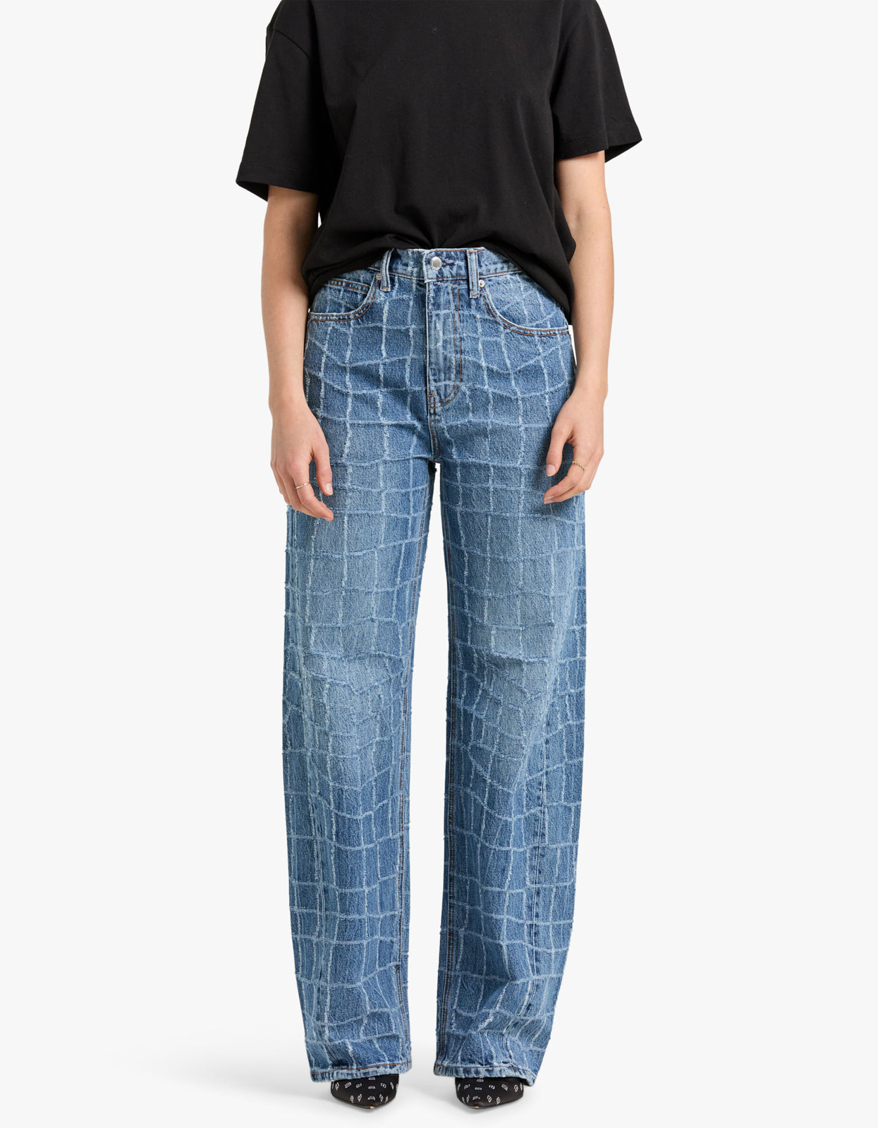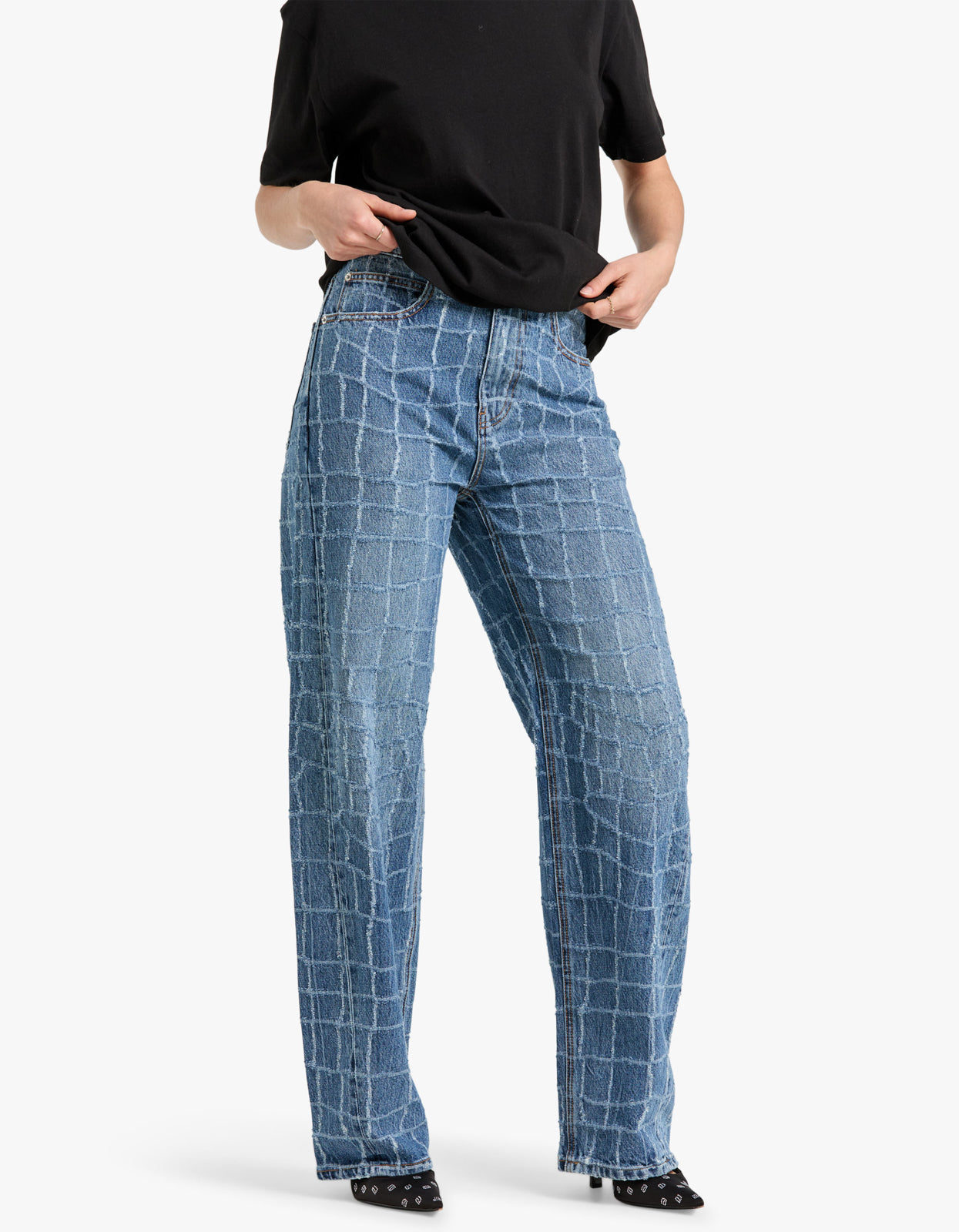 The unique croc design adds a touch of edginess to your wardrobe, perfect for the fashion-forward individual. Take your denim game to the next level with this statement piece.