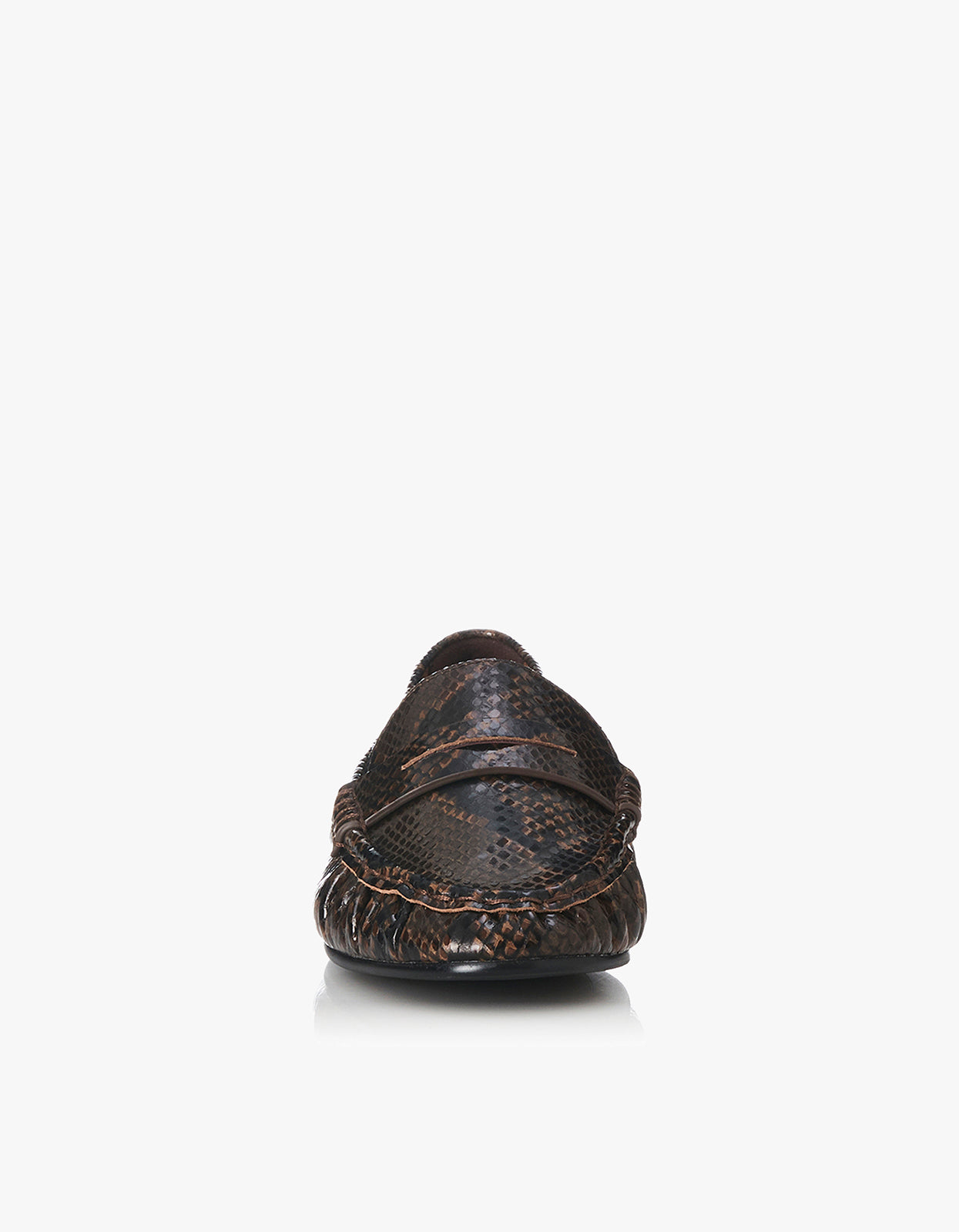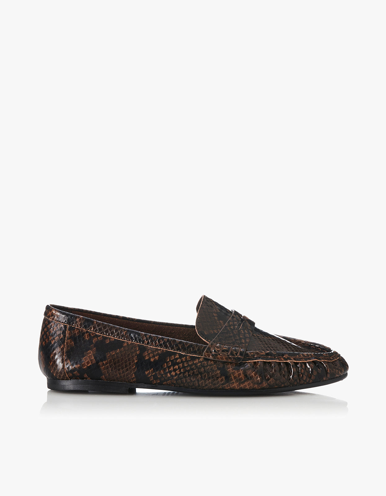 Elevate your footwear with the luxurious Ivana Loafer in Choc Snake from Alias Mae.