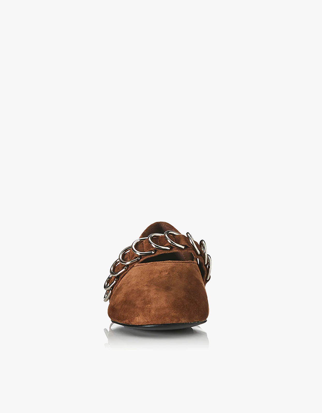 Crafted with rich mocha suede, this shoe exudes sophistication and exclusivity. Elevate your wardrobe with this tasteful and elegant addition, perfect for any occasion.