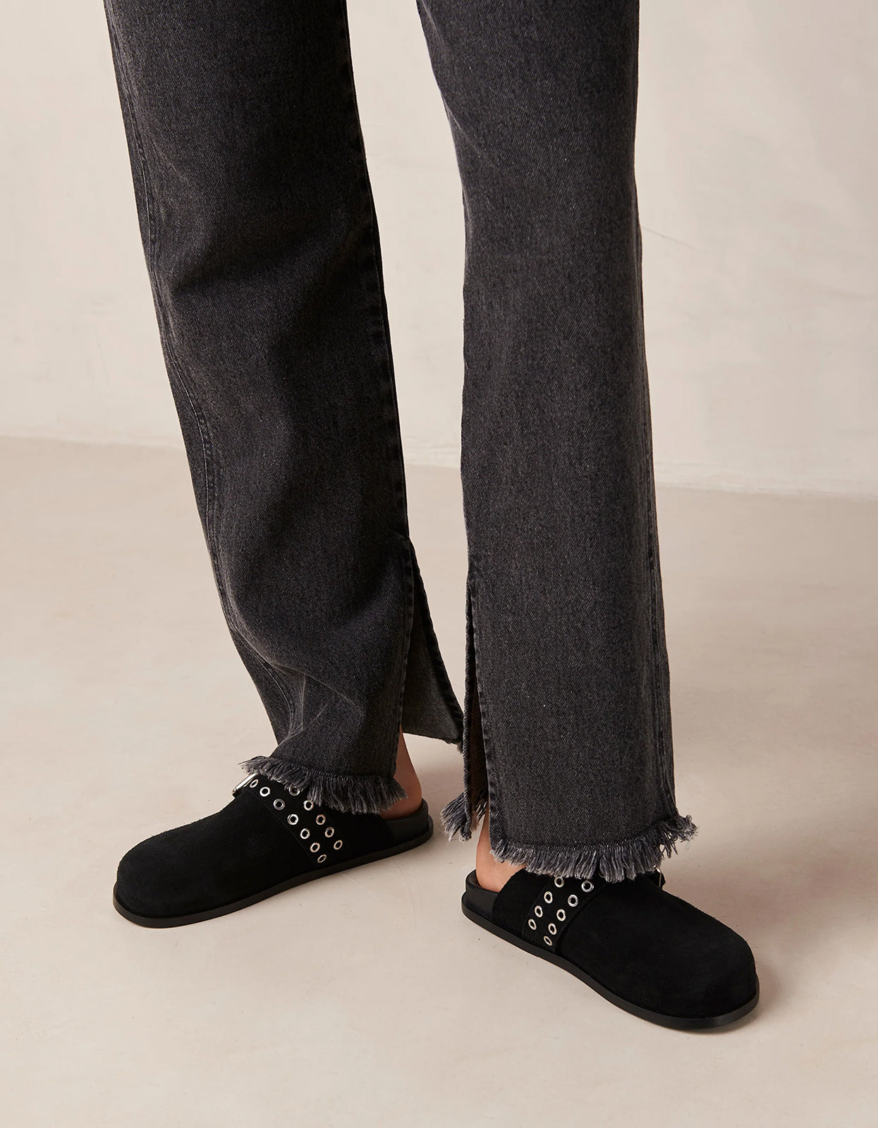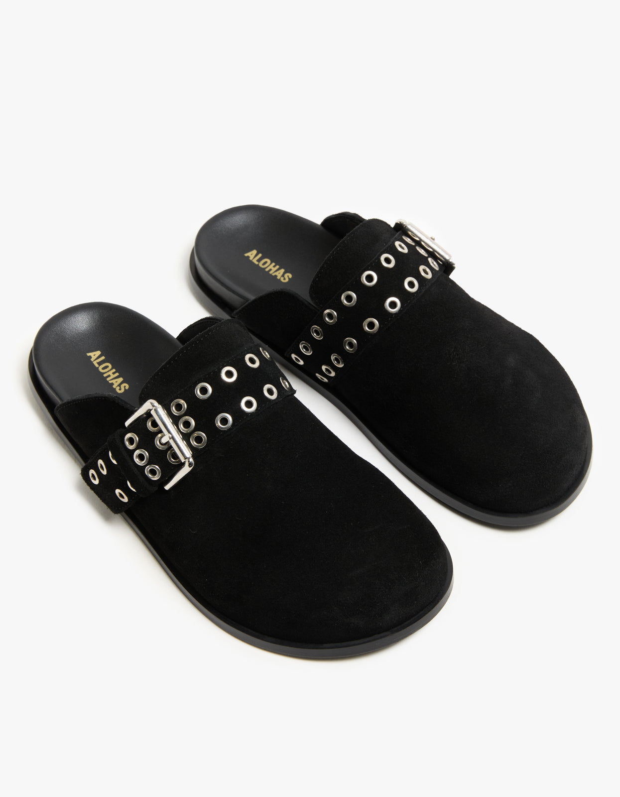 The Halia Mules in luxurious black leather by Alohas are the epitome of elegance.