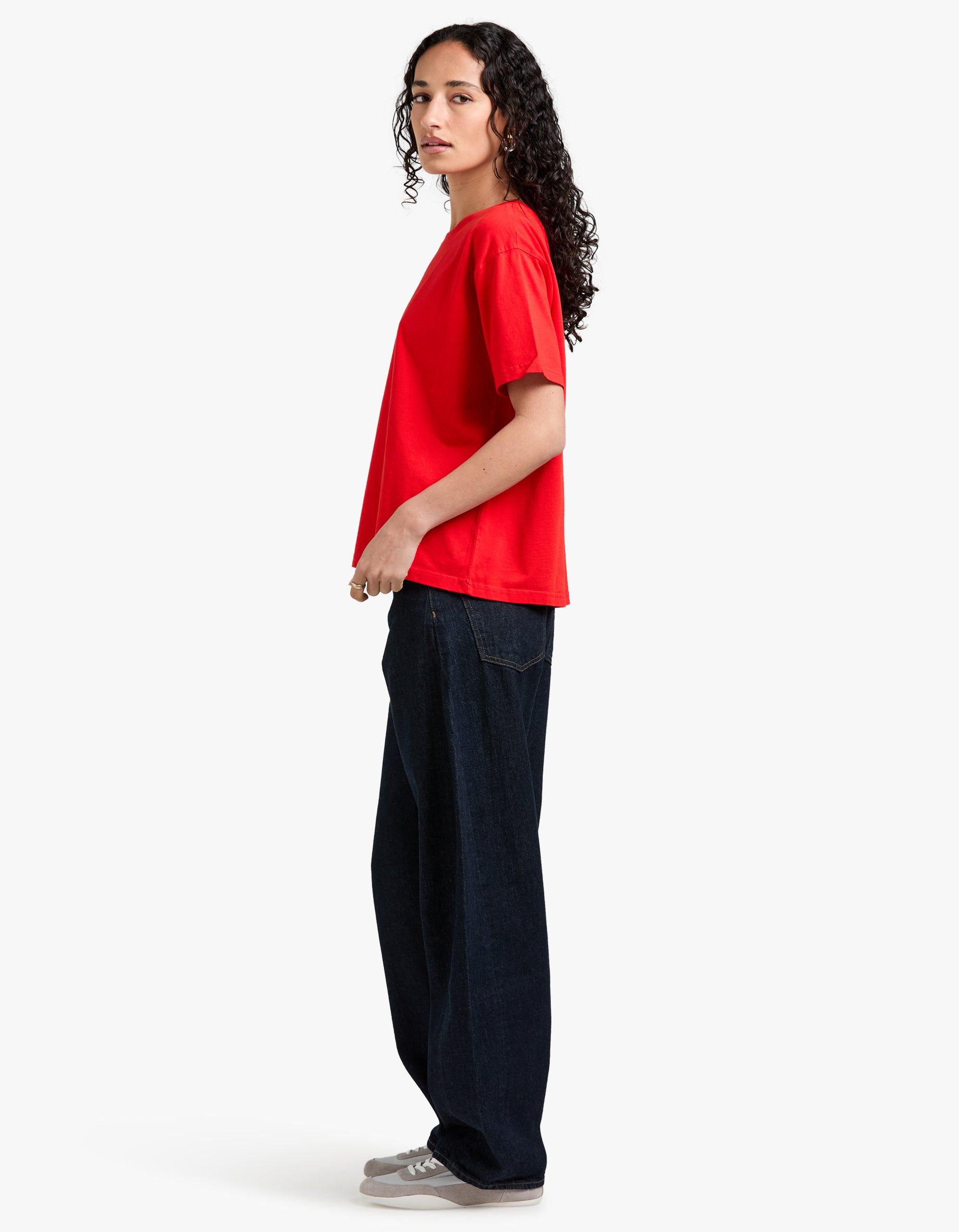 Crafted in 100% cotton with a smooth, compact knit, its oversized, straight cut and soft round neck make it effortlessly easy to layer or stand alone.