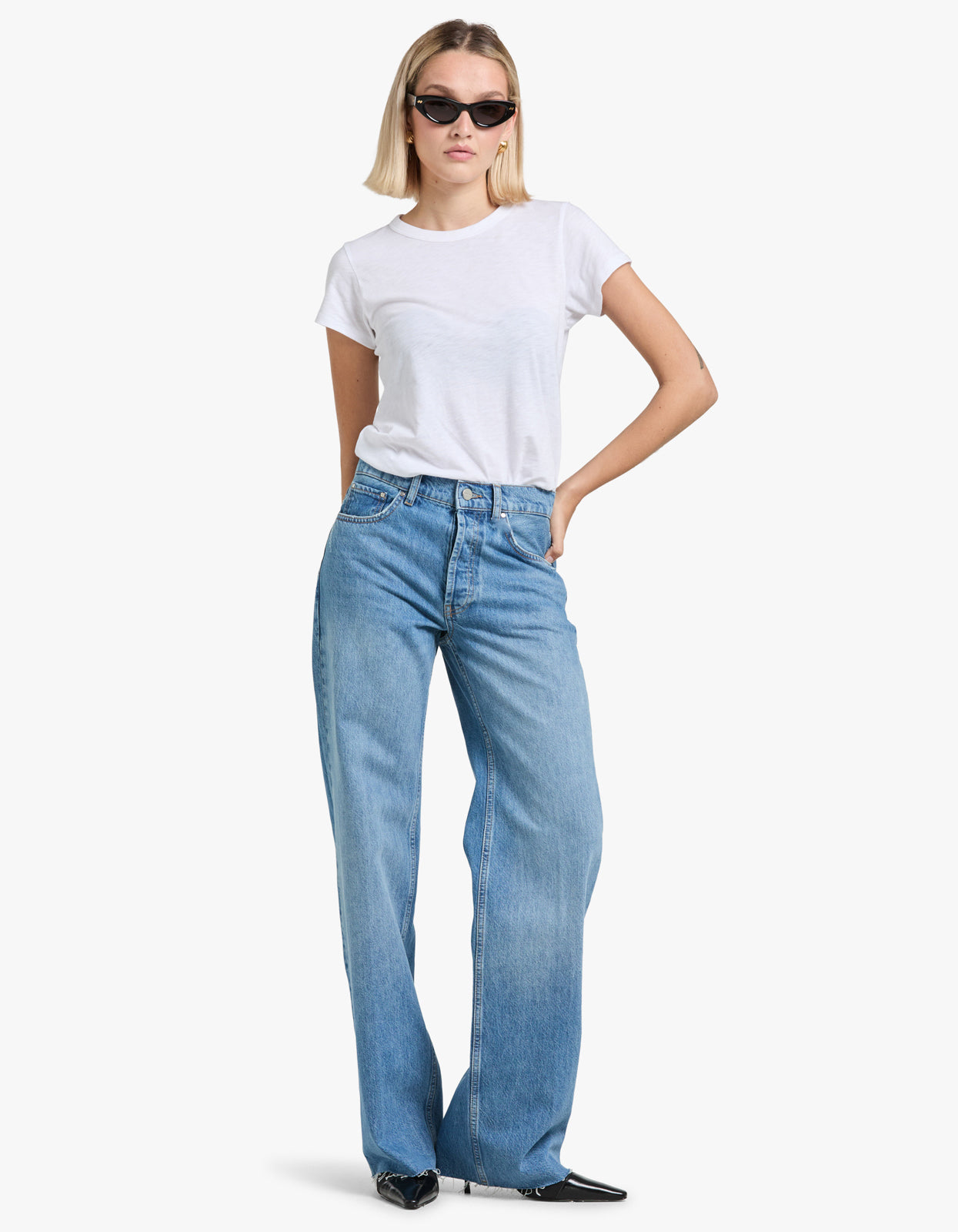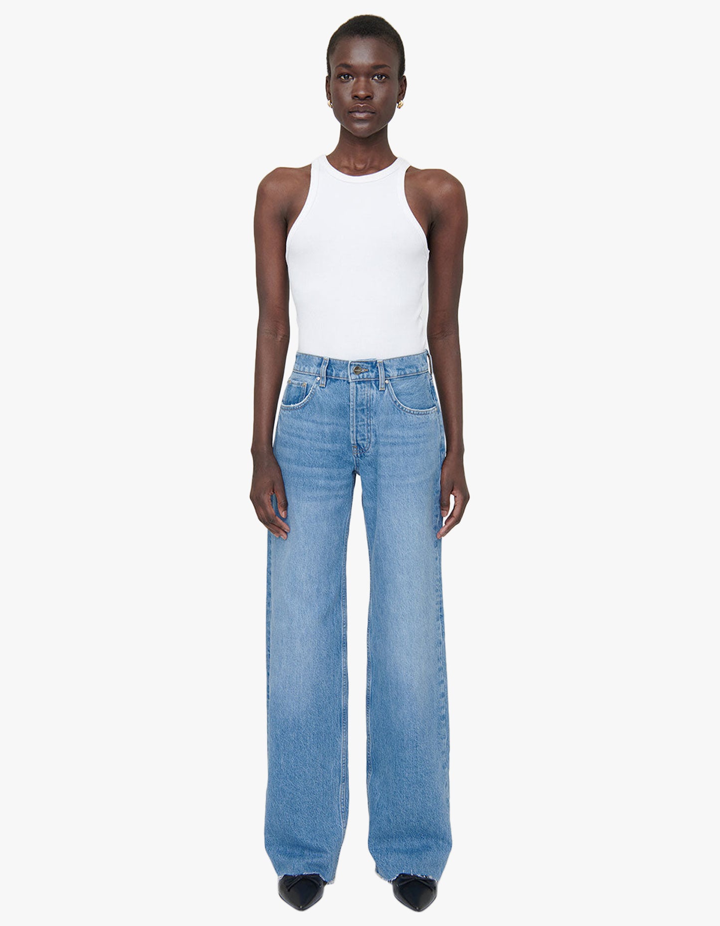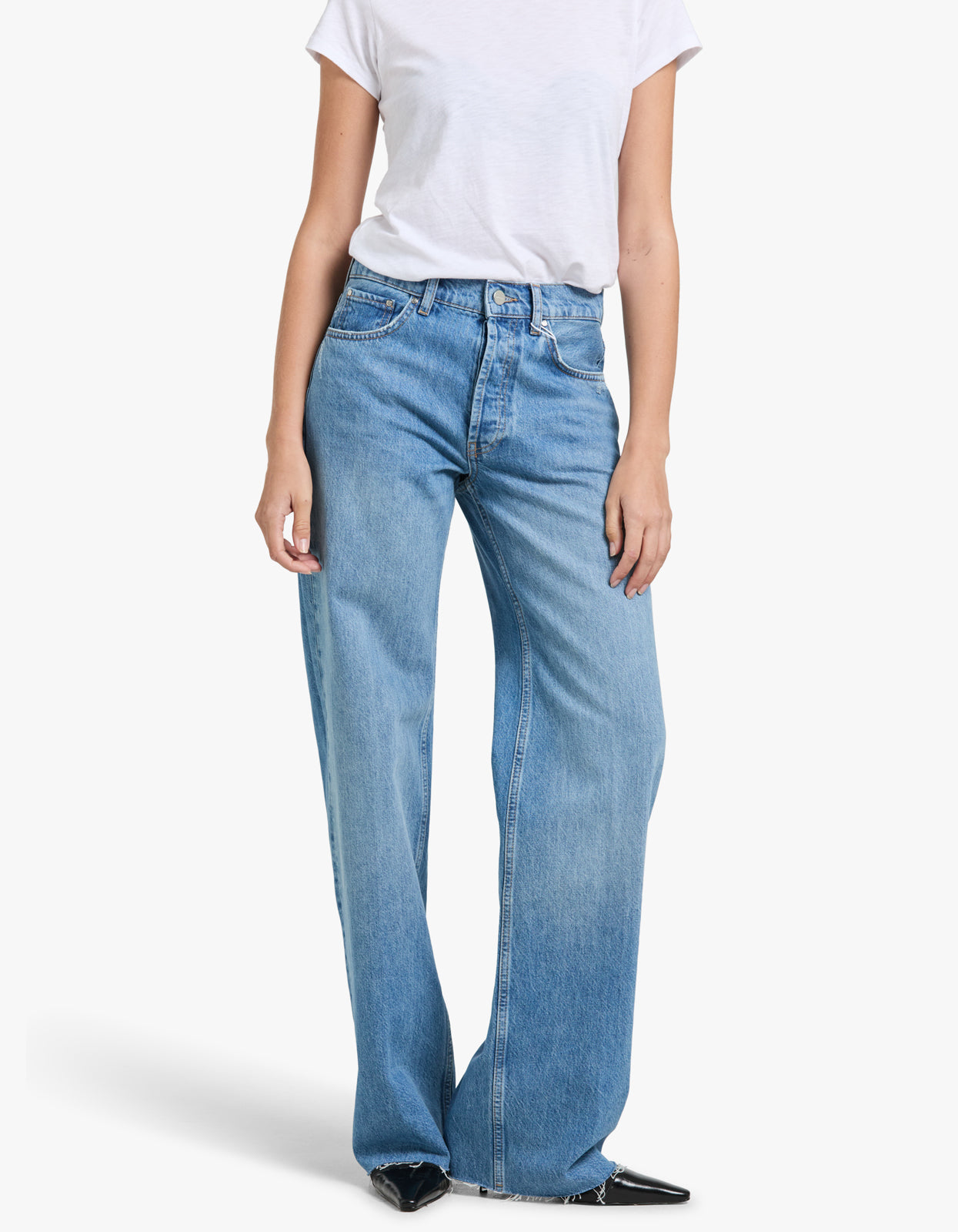 The Hugh Jean is constructed from a rigid denim, featuring a wide leg and raw hemline, all complete in a fresh blue colourway. A relaxed 90’s inspired silhouette intended to be worn low on the hip, day after day thanks to Anine Bing.