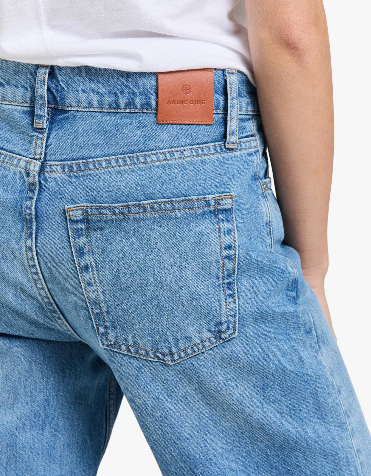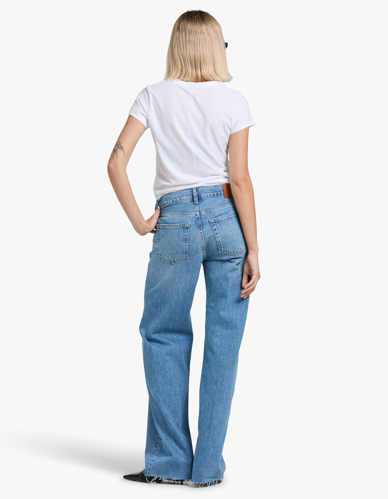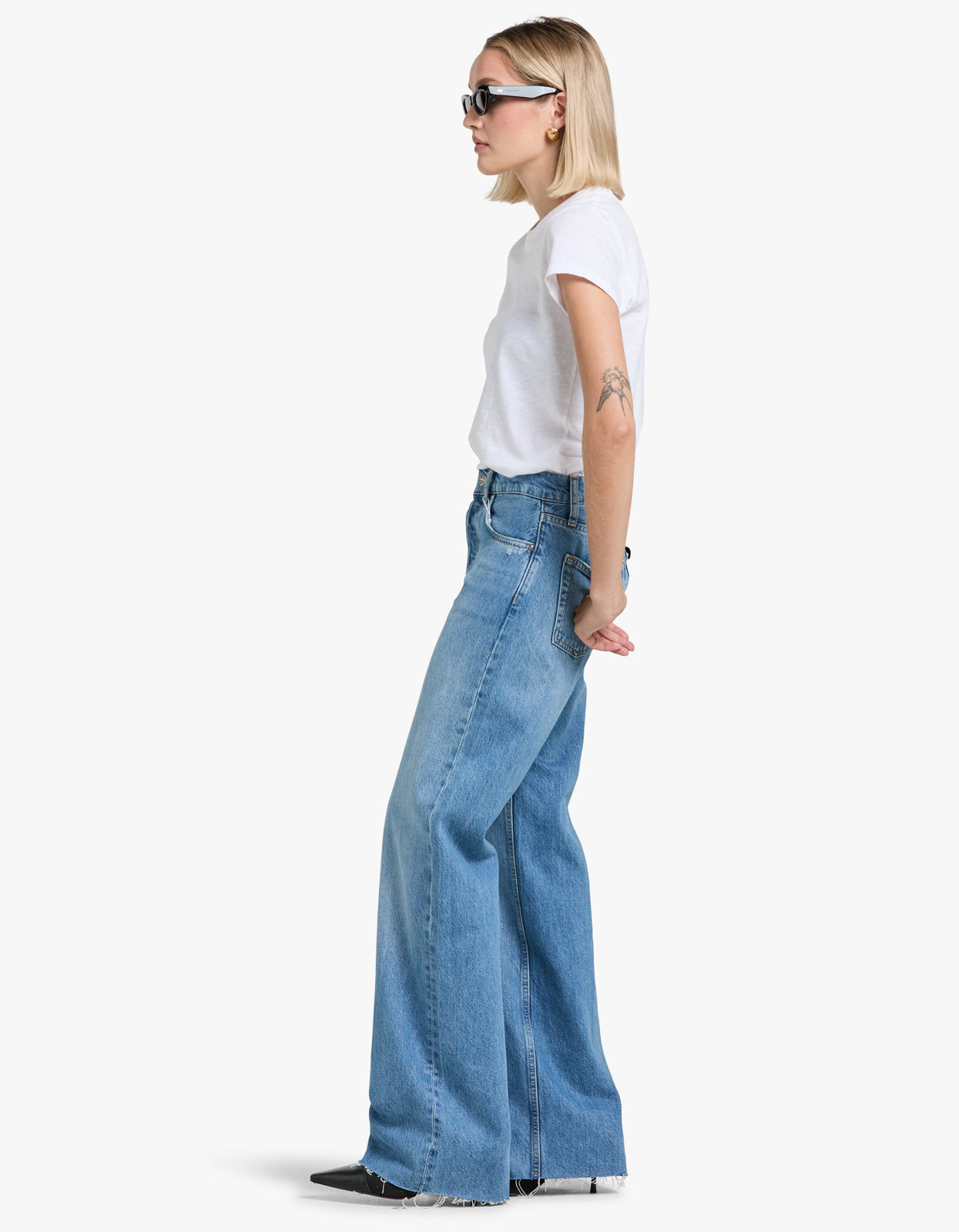 The Hugh Jean is constructed from a rigid denim, featuring a wide leg and raw hemline, all complete in a fresh blue colourway. A relaxed 90’s inspired silhouette intended to be worn low on the hip, day after day thanks to Anine Bing.
