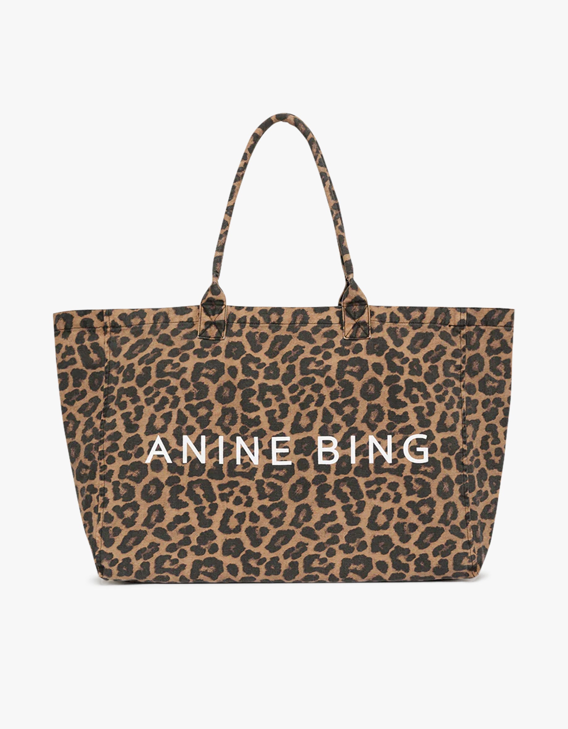 Anine Bing's Leo Canvas Tote combines timeless sophistication with bold leopard print in black and brown tones.