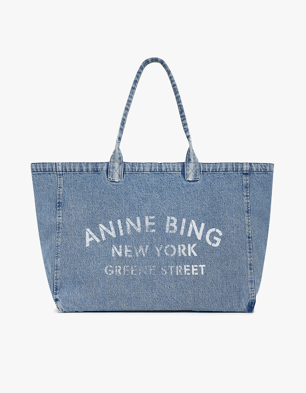 Anine Bing's Leo Denim Tote combines timeless sophistication with a classic shadow blue colourway.