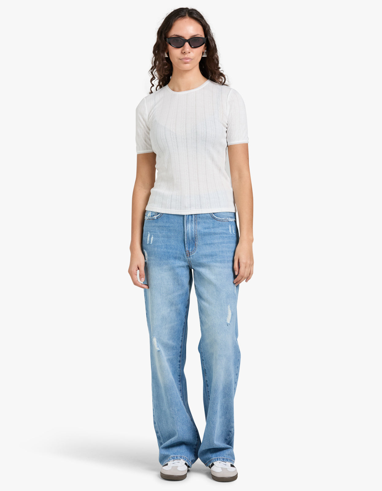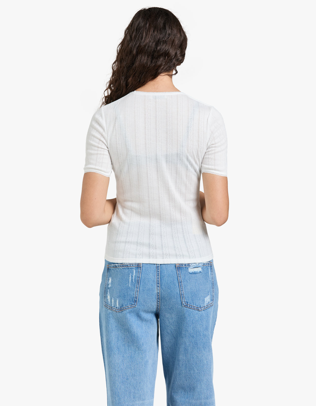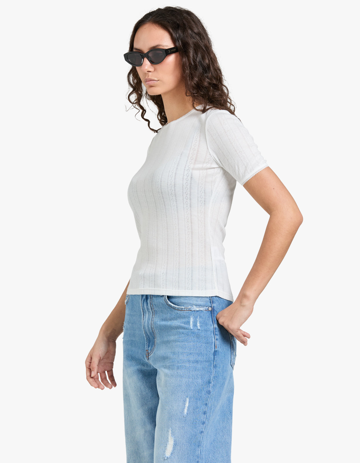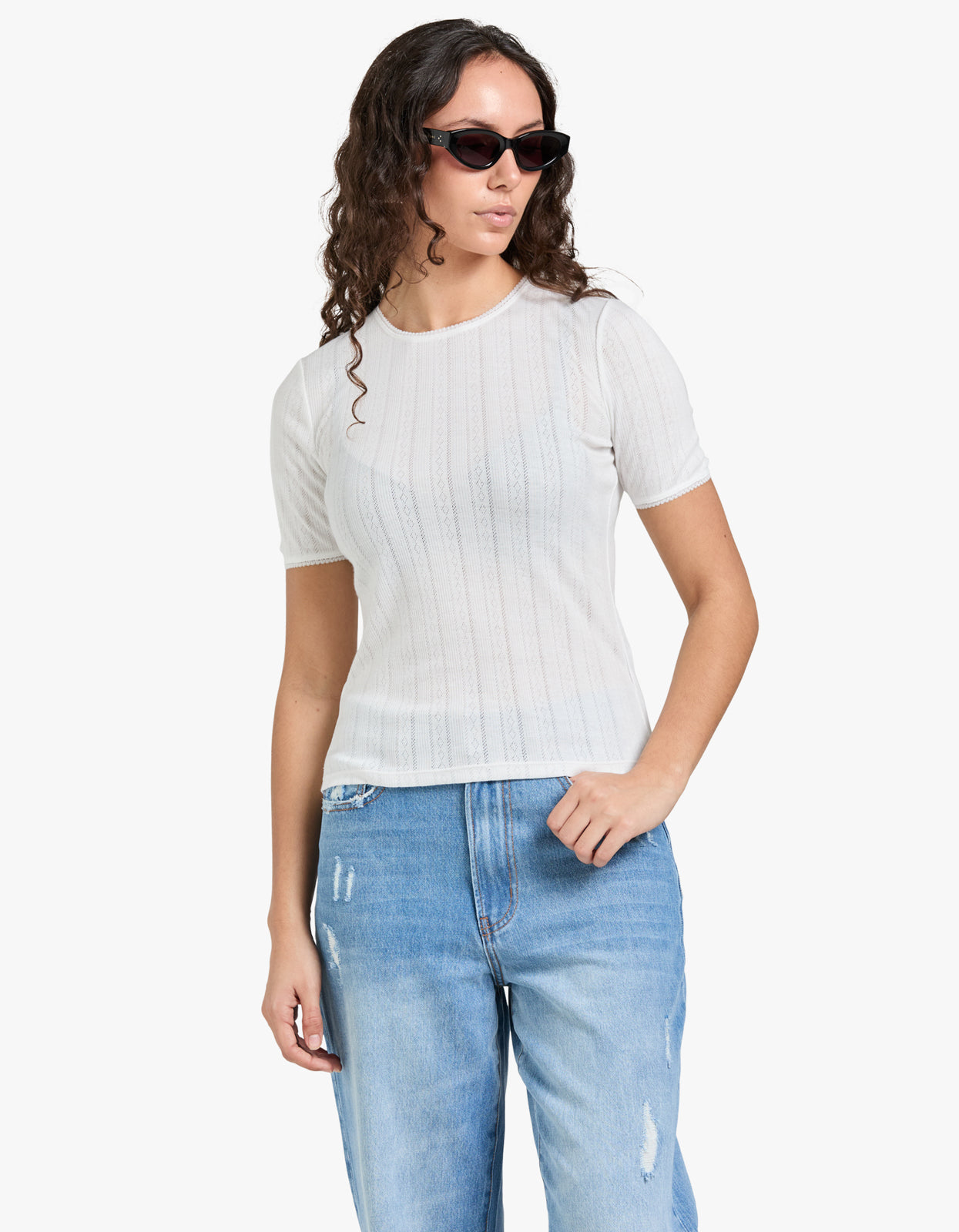 This luxurious tee features a timeless design with a sophisticated touch in the form of its subtle off-white color. Made with high-quality fabric, it offers comfort and style, making it a must-have staple in any wardrobe. Elevate your everyday look with Pia Tee.
