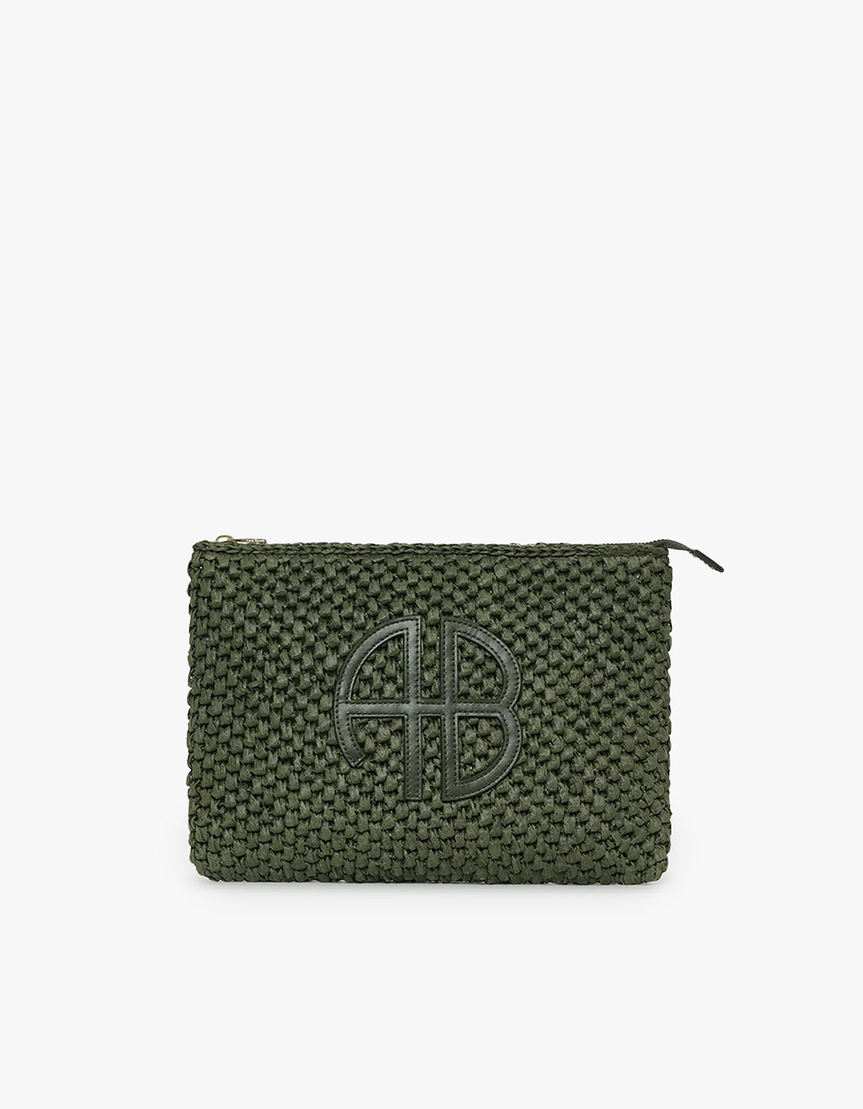 A travel essential crafted from woven olive green seagrass with tonal leather details, the Anine Bing Rio Pouch in Olive combines artisanal craftsmanship with practical design.