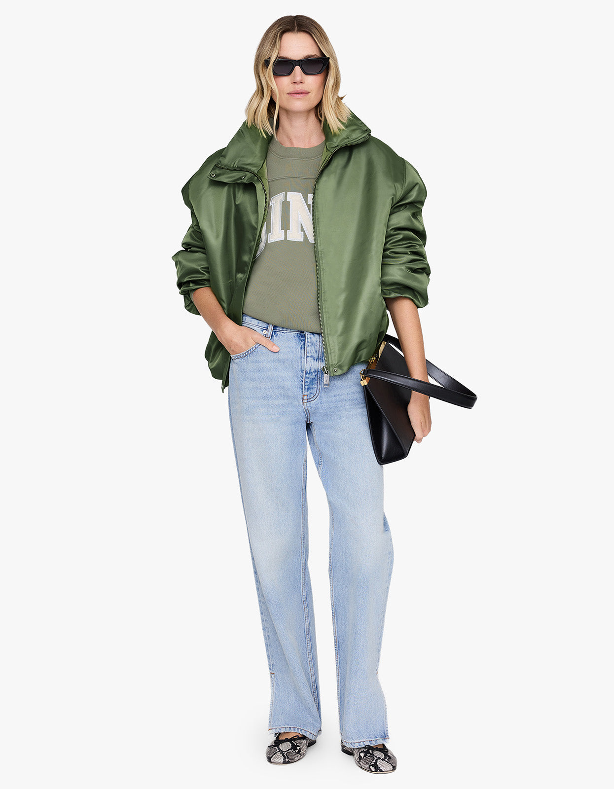 Elevate your wardrobe with this statement staple from Anine Bing: The Trenton Sweatshirt in Washed Olive.