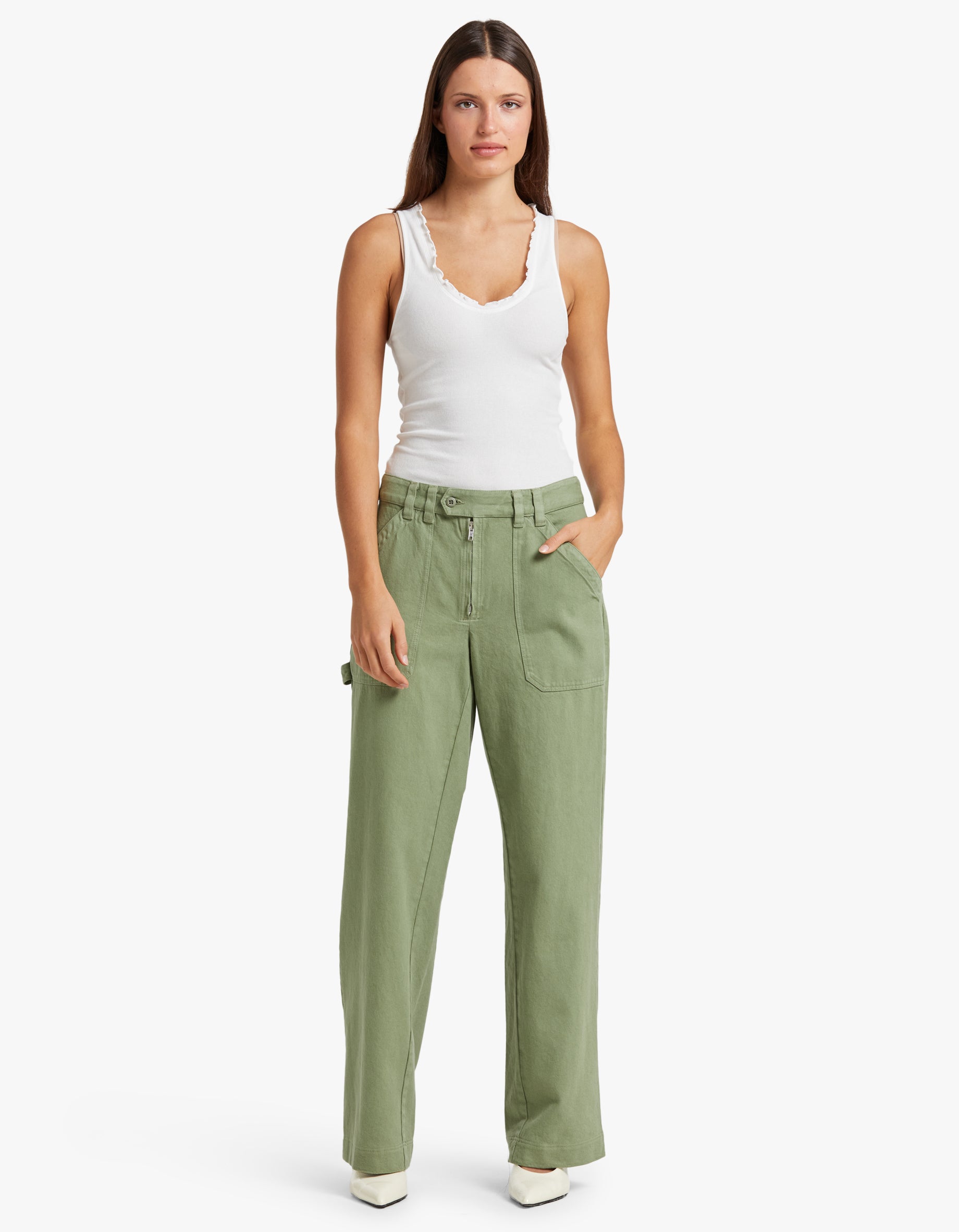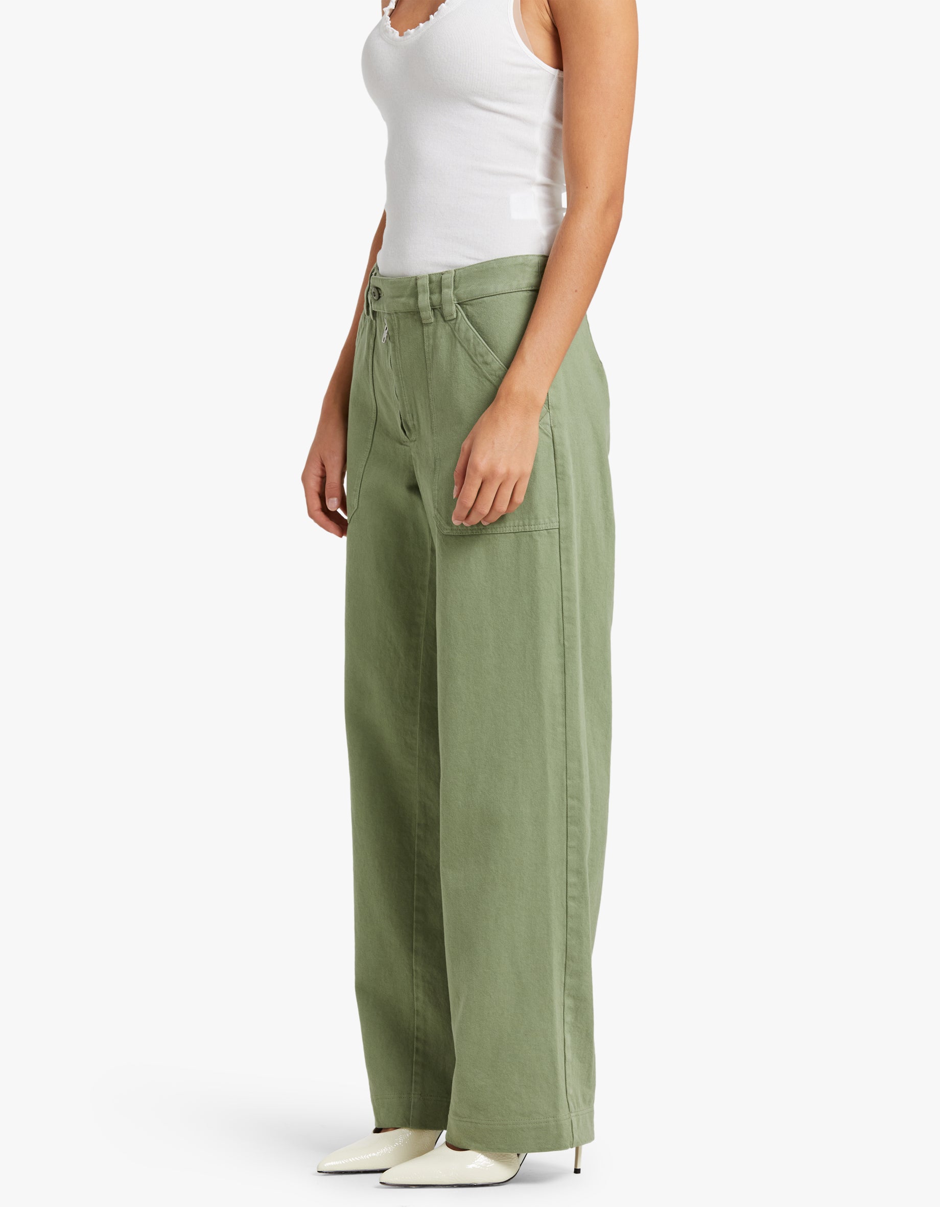 Crafted from cotton - this wide leg trouser will add a subtle hint of colour to your everyday wardrobe. Sporting a wide leg and traditional workwear inspired details, be sure to elevate your day-outing look in an instant.