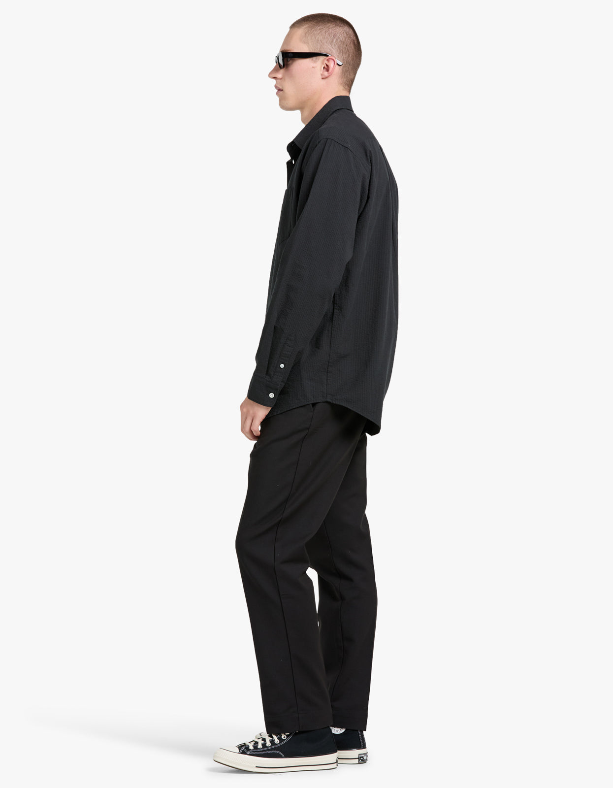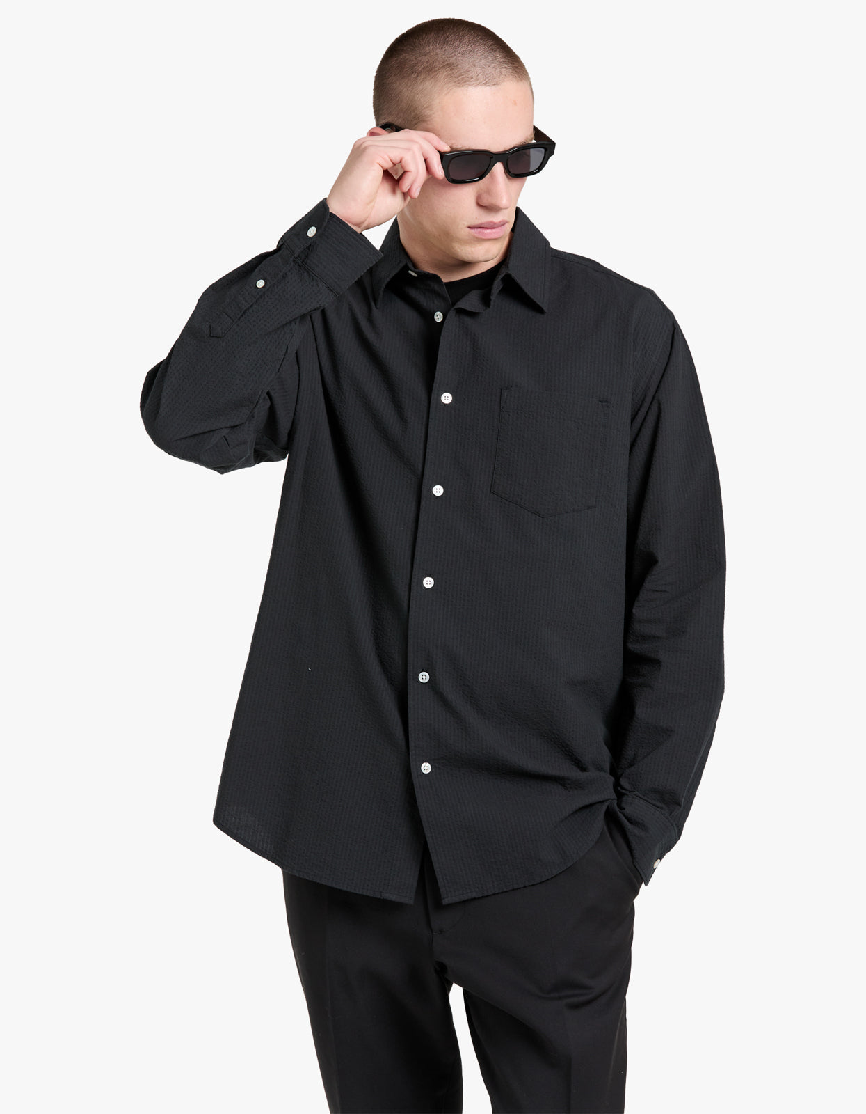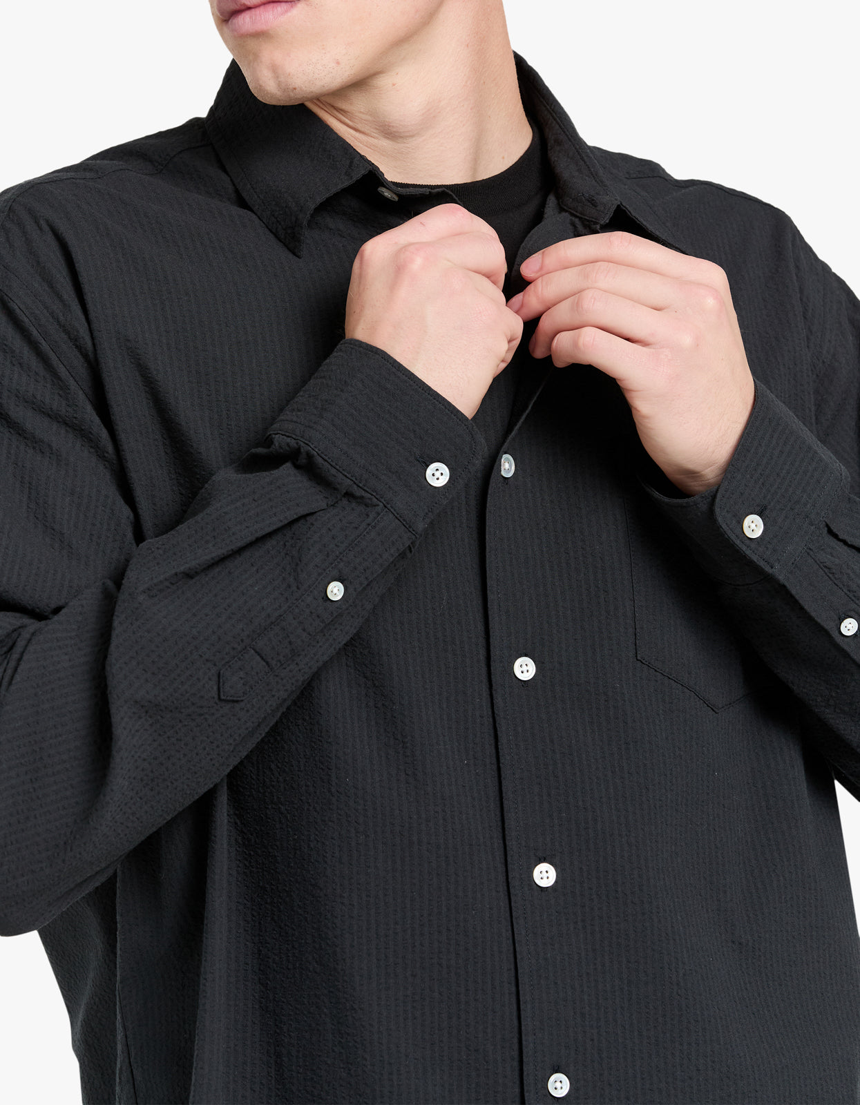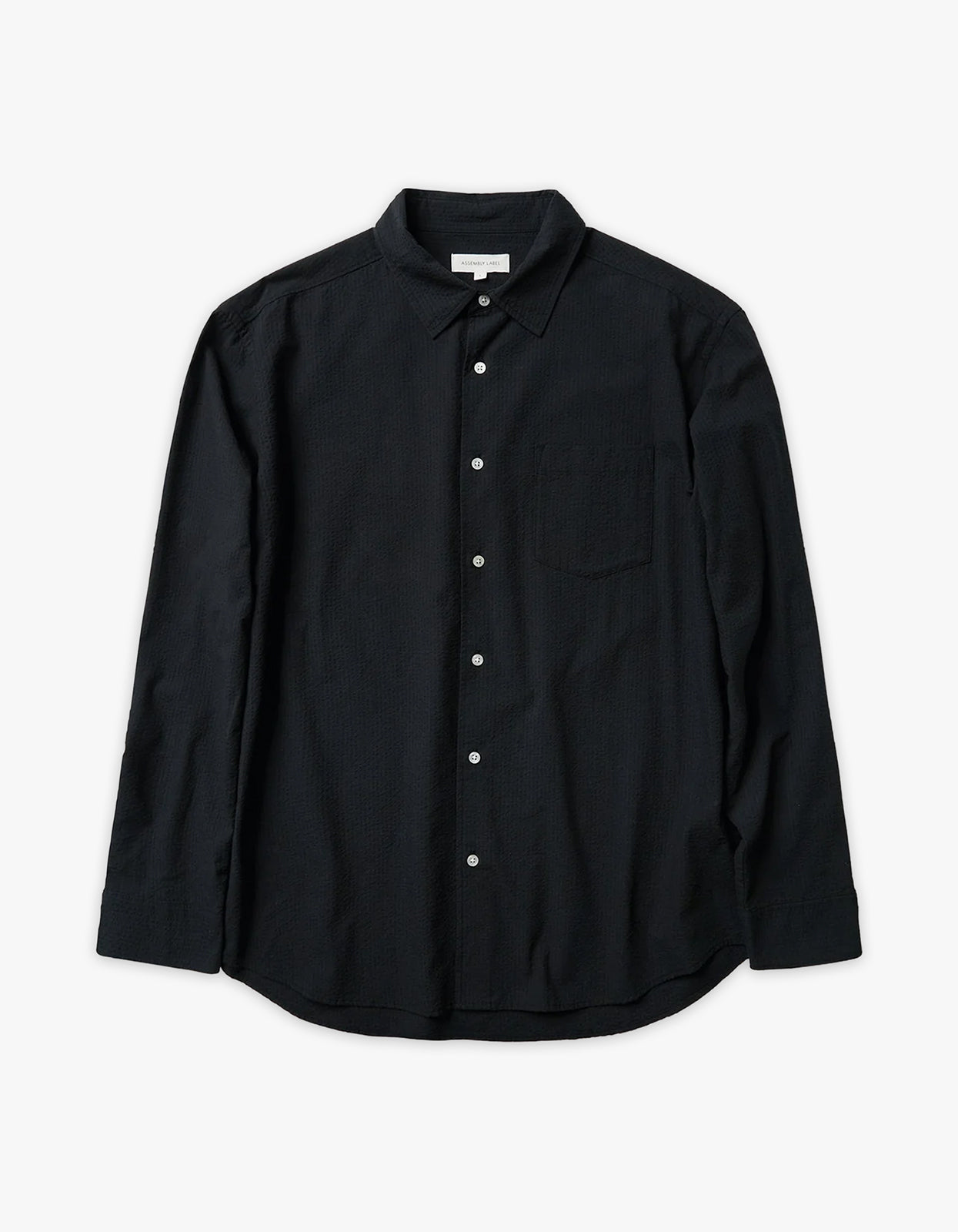 Elevate your style with Assembly Label's Beau Seersucker Long Sleeve Shirt in Washed Black.