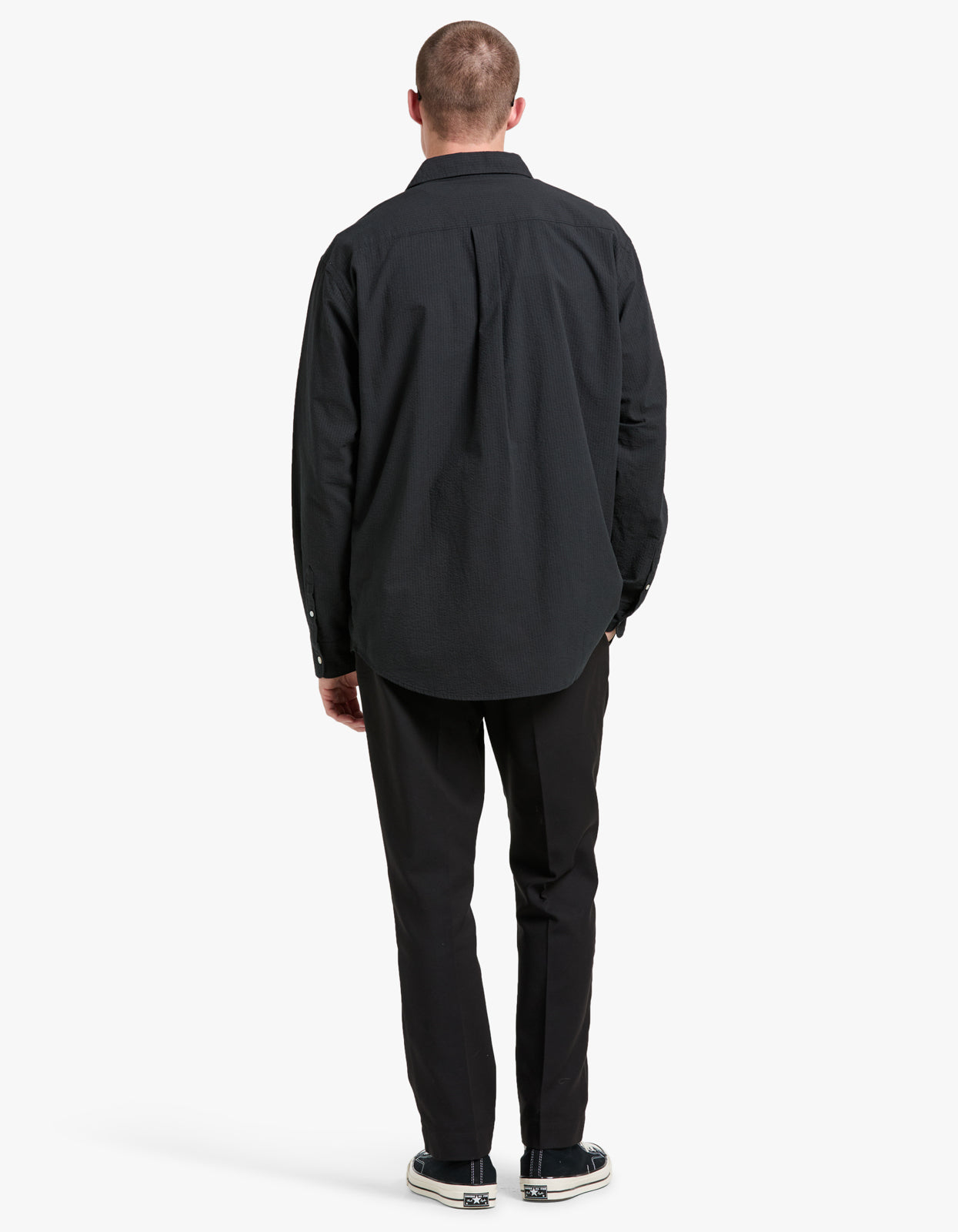 Beau Seersucker Long Sleeve Shirt - Washed Black