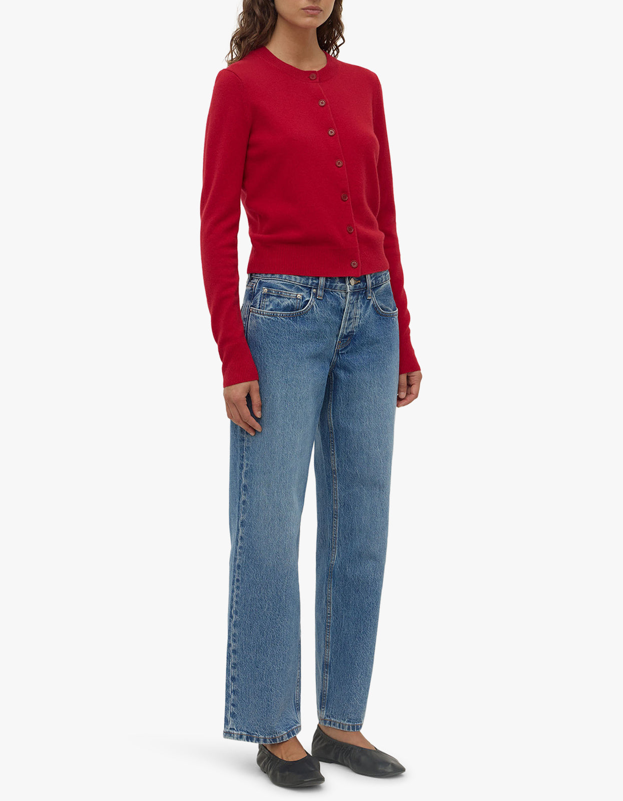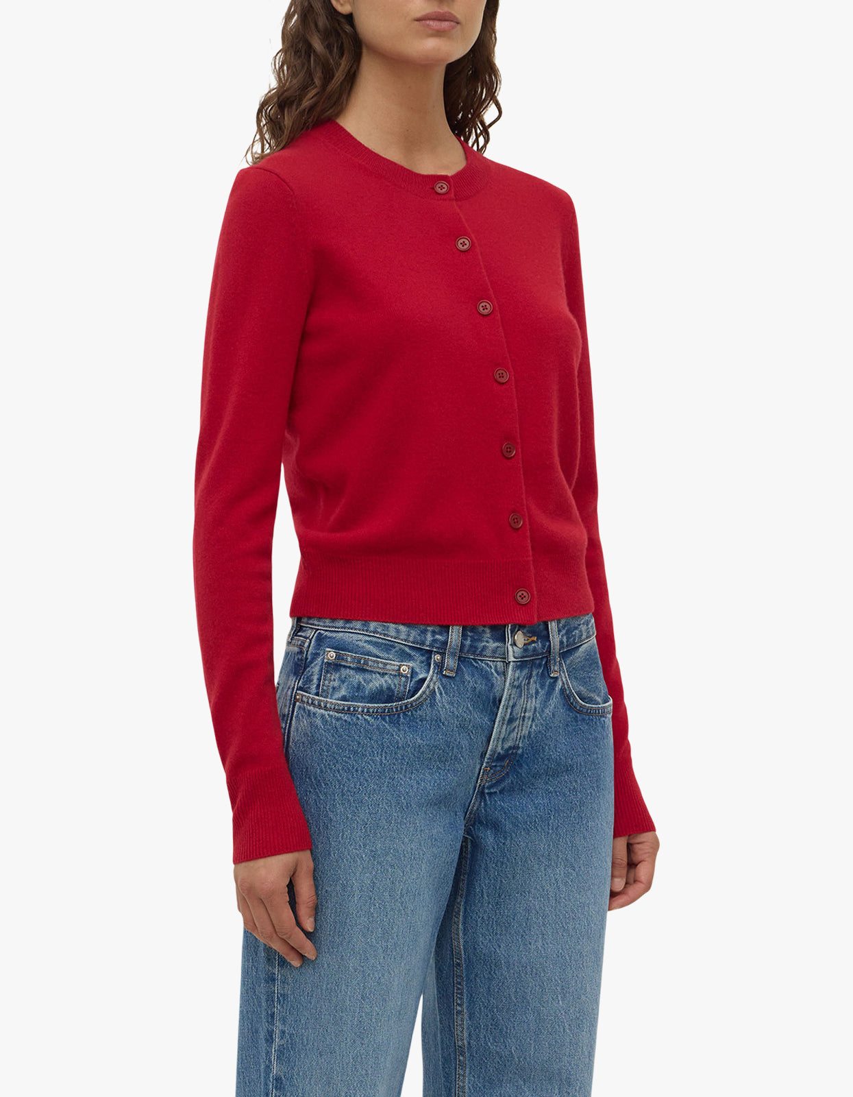 Embrace cosy sophistication with the Assembly Label Benny Knit Cardigan in Mulberry—a luxurious wool blend knit with a slightly cropped length and crew neckline for effortless layering.