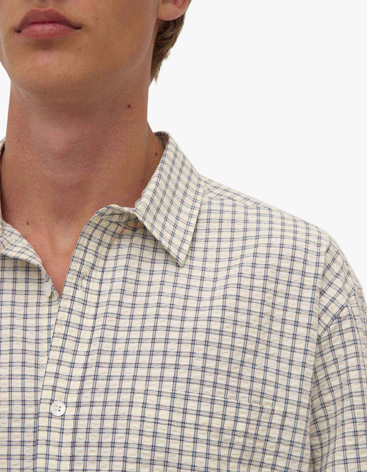 Crafted from a checkered seersucker cotton, this shirt offers a relaxed, breezy fit on the body and features a shaped hem, back yoke and front pocket detail for added utility.
