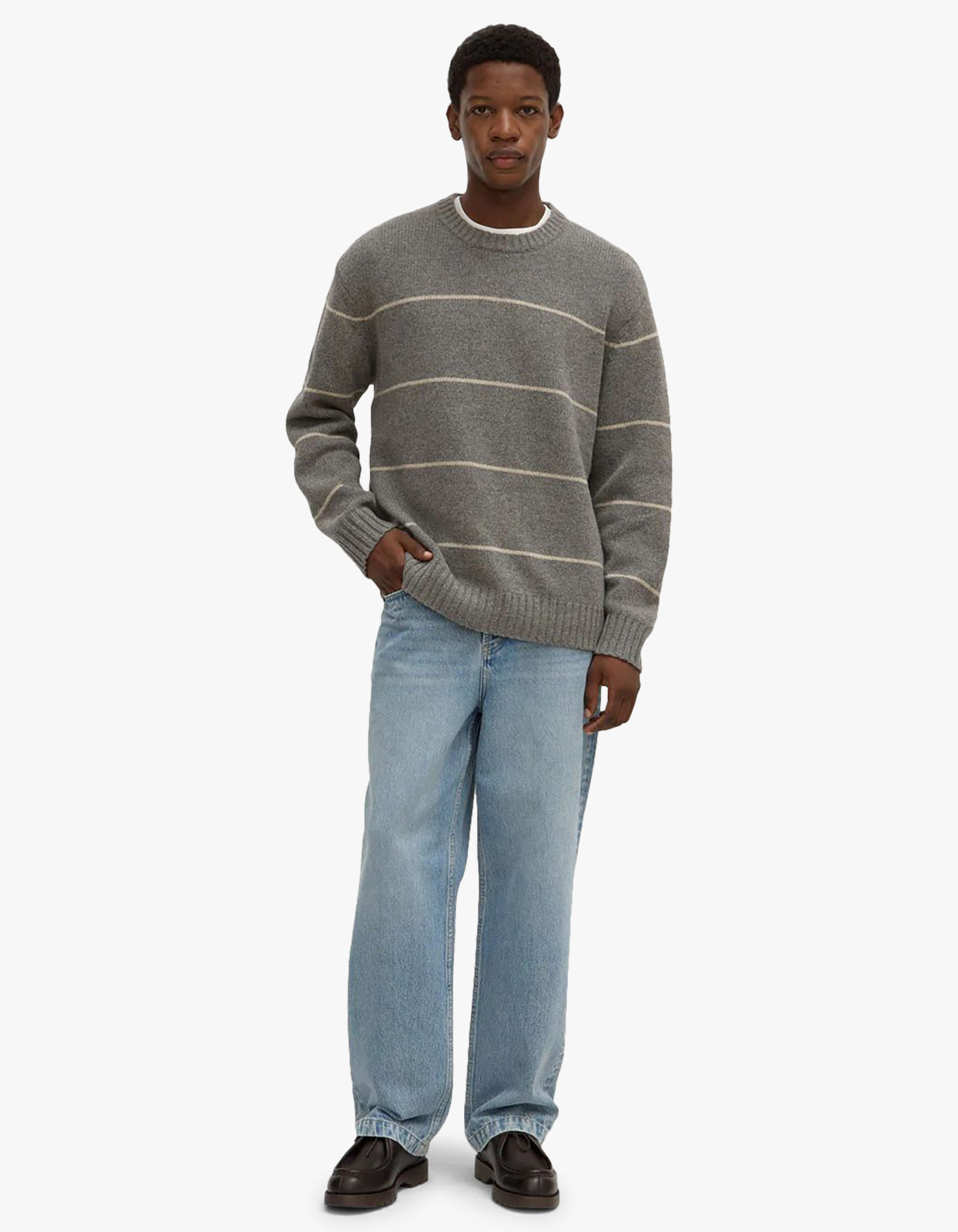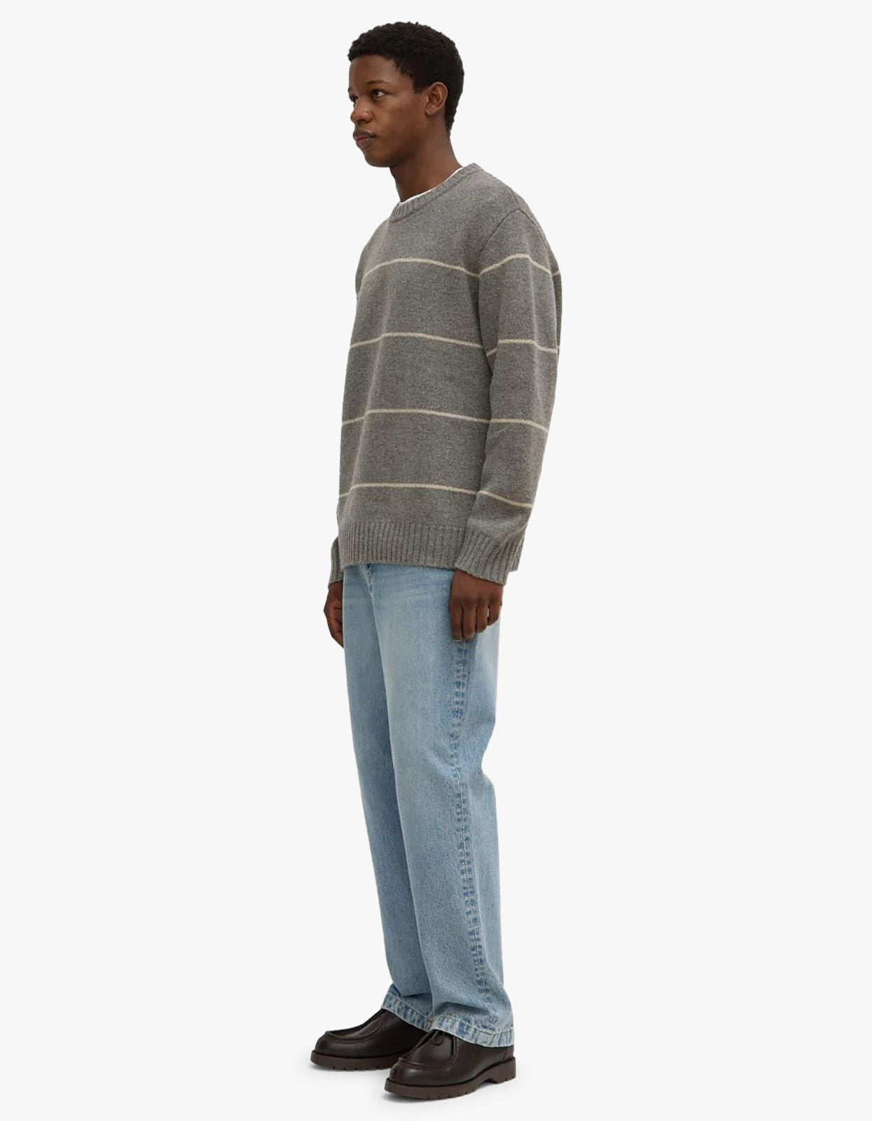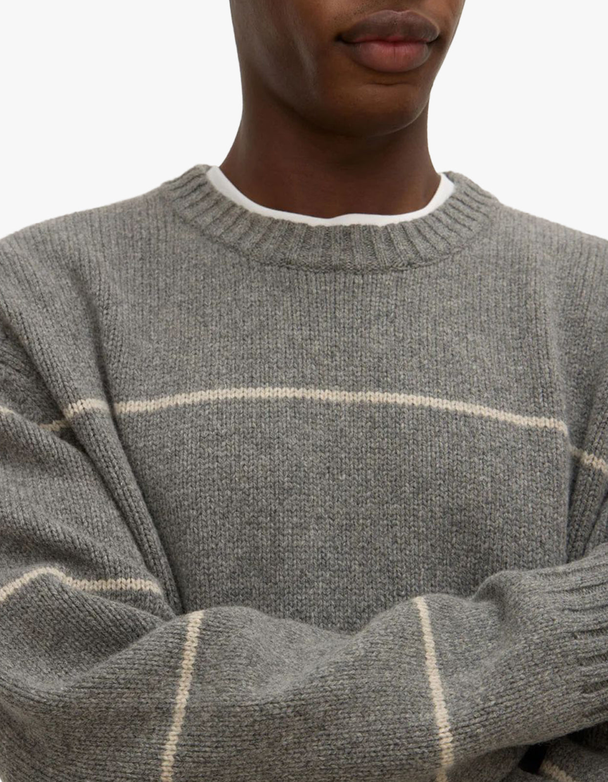 Luca Merino Stripe Crew Neck Knit - Grey Marle/Natural Marle