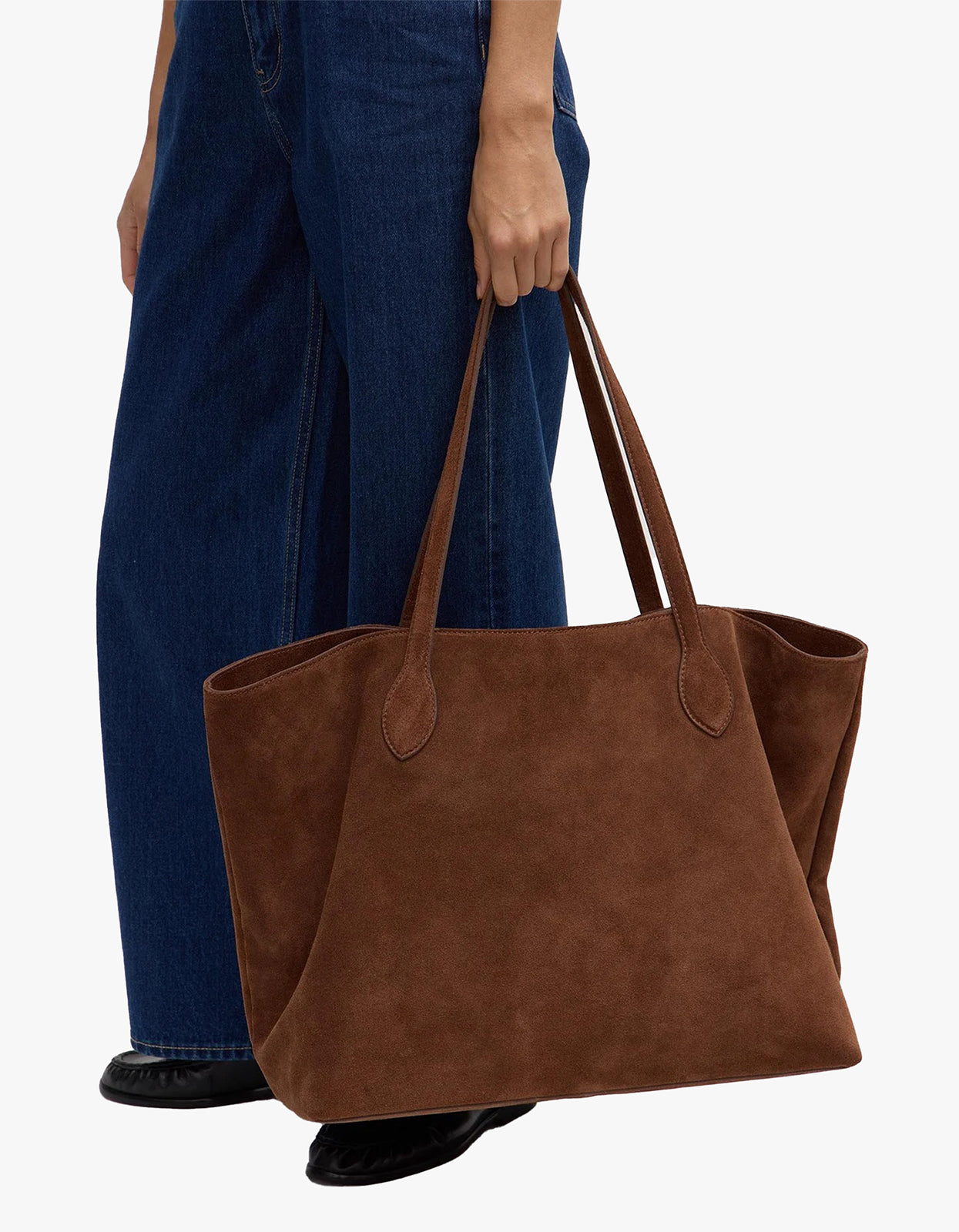 Introducing the Olivia Suede Tote Bag - Amaro, your ultimate spacious carryall from Assembly Label.