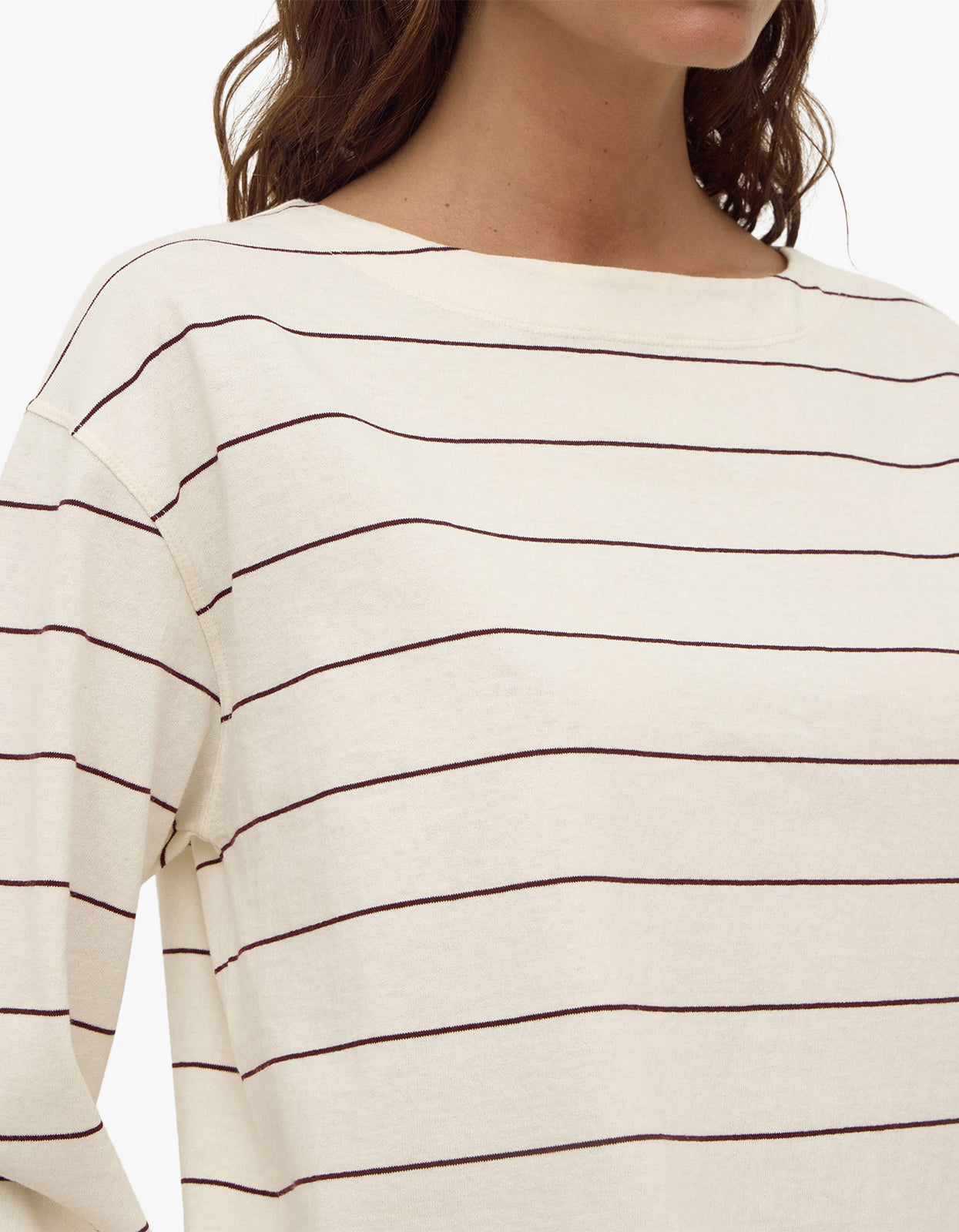 Embrace effortless style with the Assembly Label Scout Long Sleeve Tee in Cream/Mulberry—a 100% cotton essential with a boat neckline and flare sleeves for a refined, feminine touch.