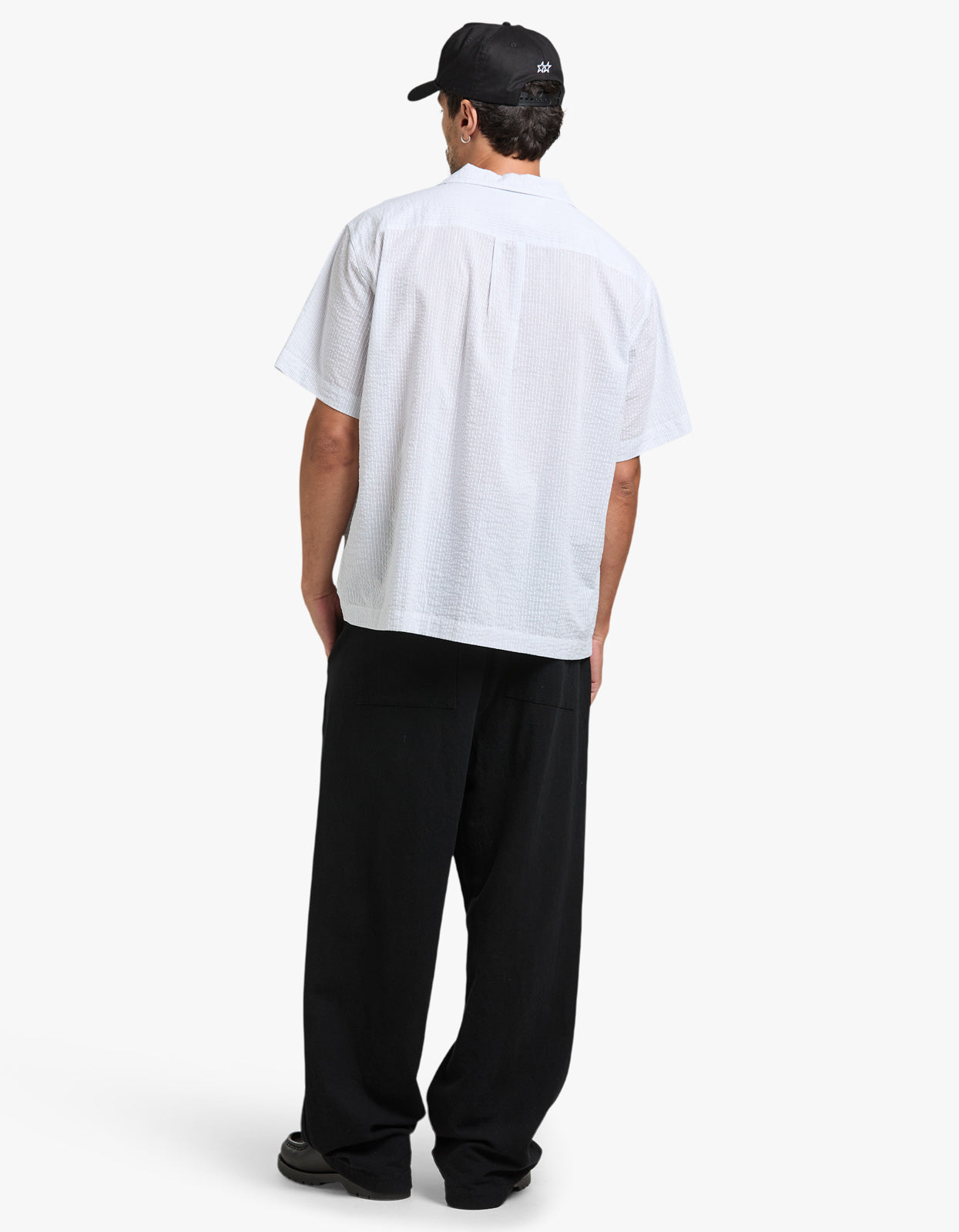 Designed for an oversized fit, this shirt is crafted from a textured linen and cotton seersucker and features a fine stripe design.