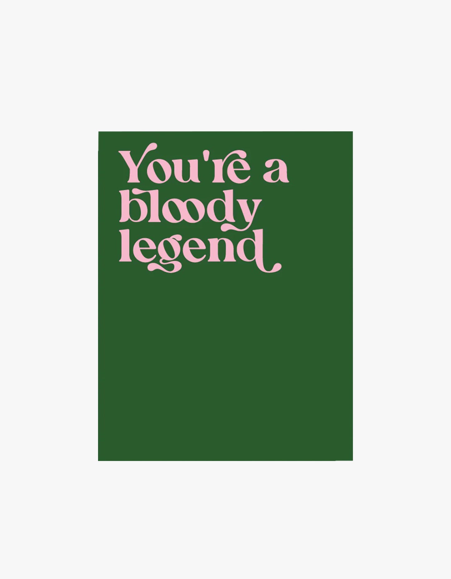 This Dark Green "You're A Bloody Legend" card from Bad On Paper is a versatile, all rounder card that can be used for any occasion.