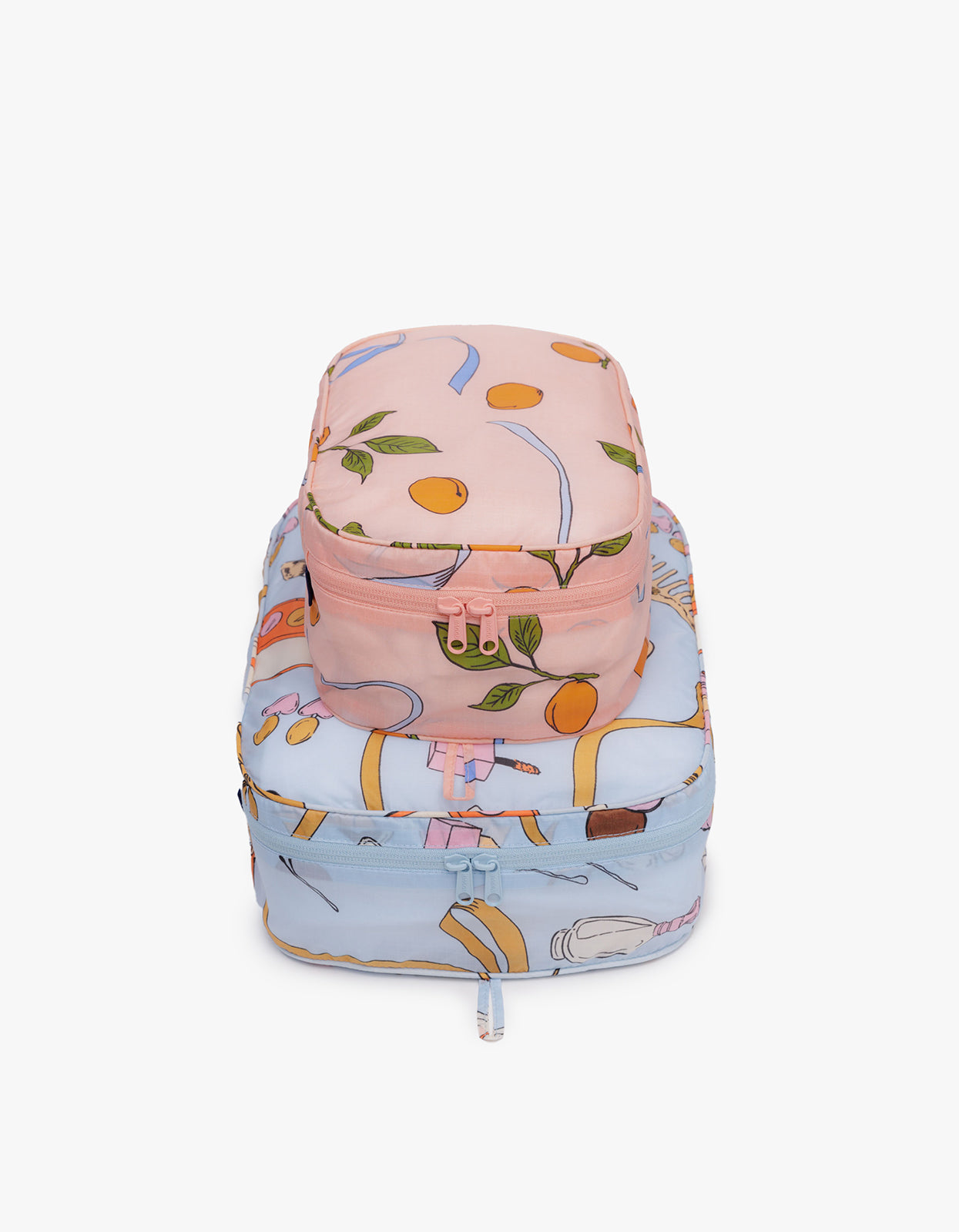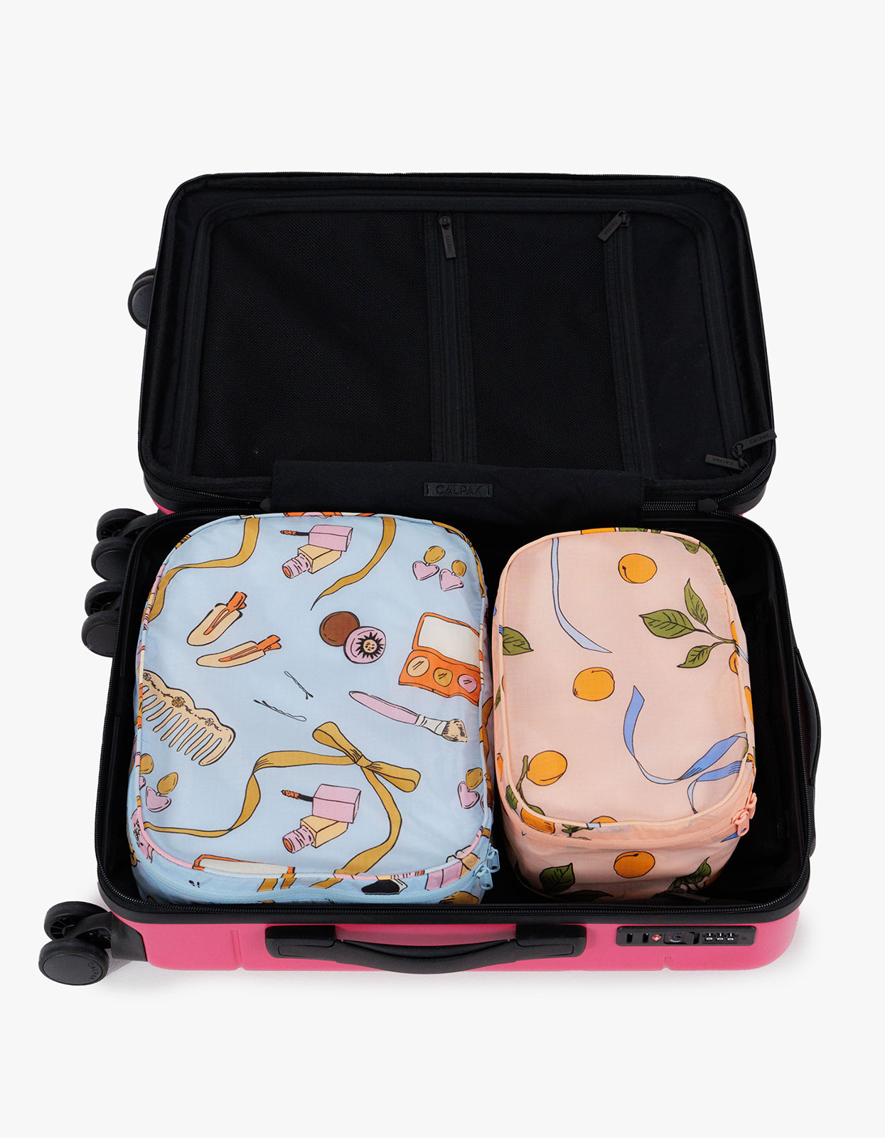 The Packing Cube Set from Baggu includes two expandable cubes of different sizes in the cutest pattern out. Perfect for organising your luggage, drawers, your closet or other areas of your home!