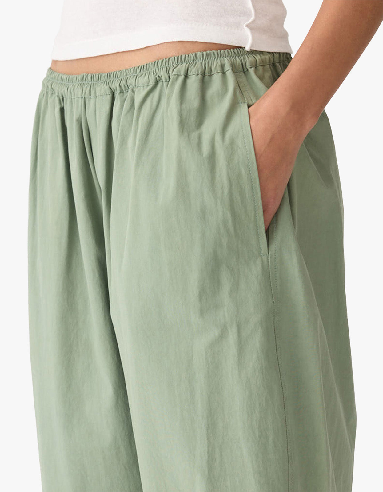 Crushed Cotton Gathered Pant - Dark Sage