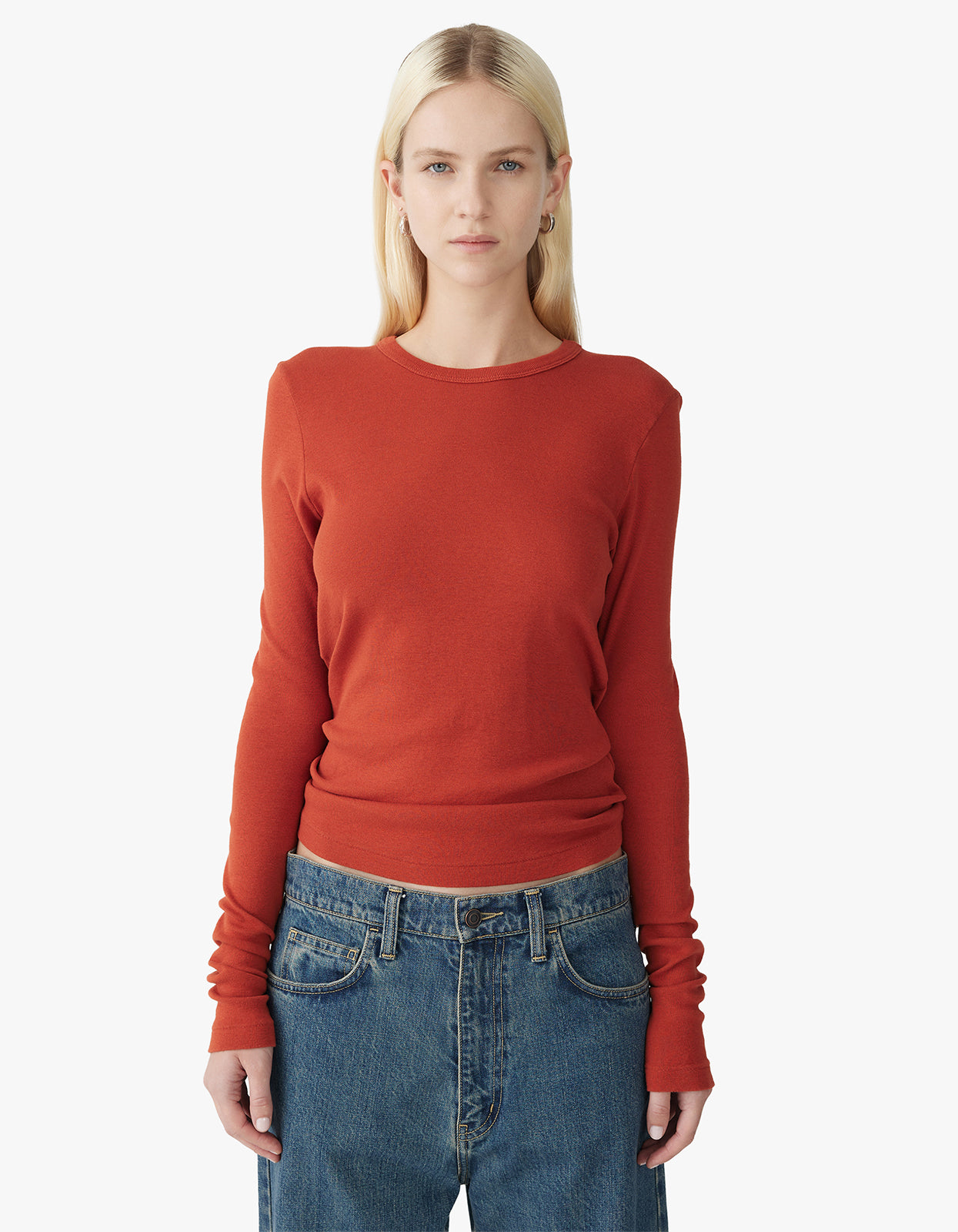 Indulge in luxury with Bassike's Slim Superfine Rib L/S T.Shirt in Red Cedar.