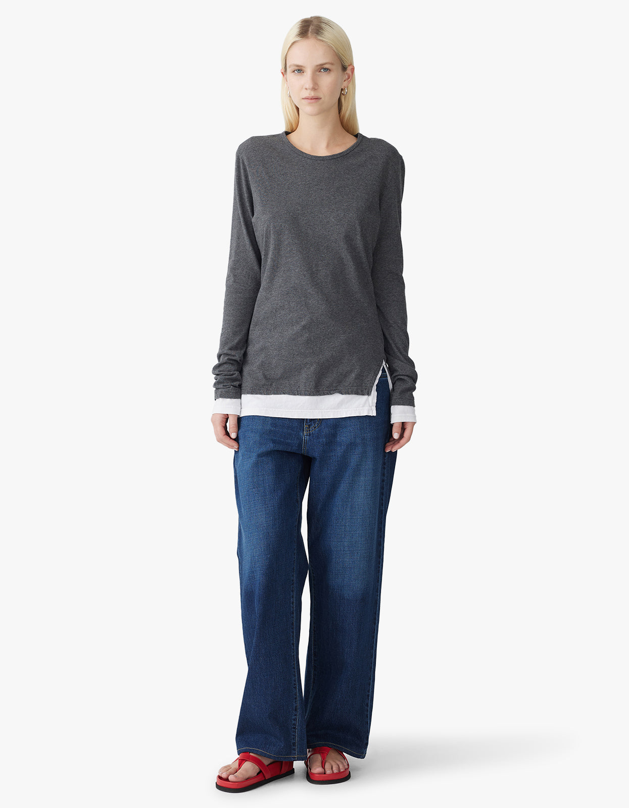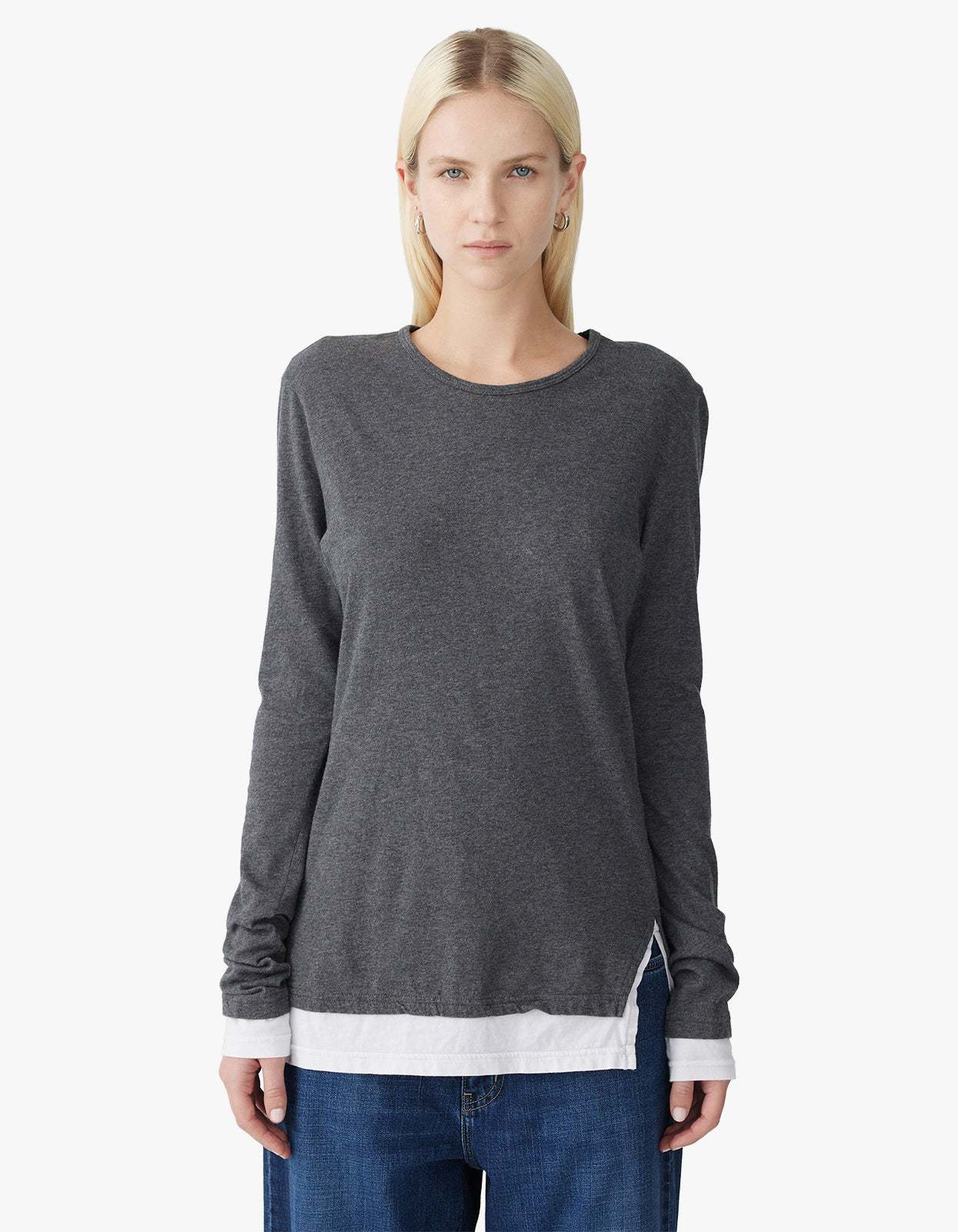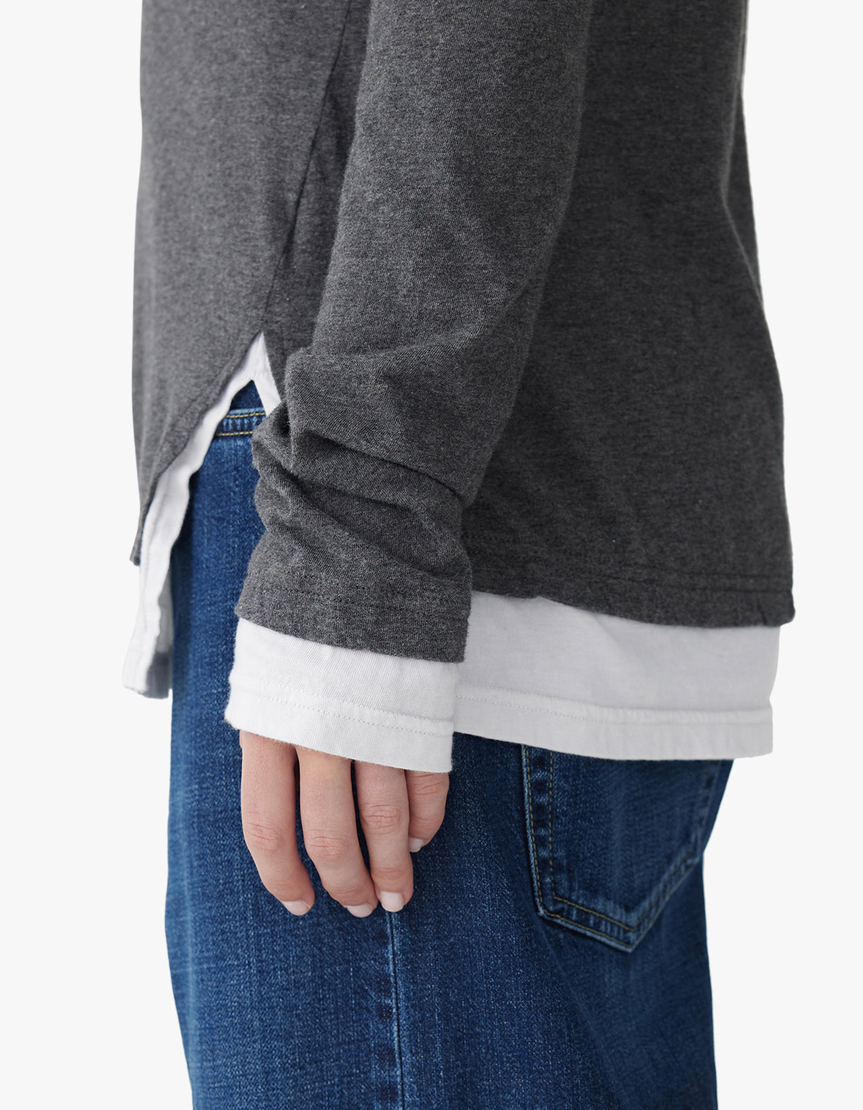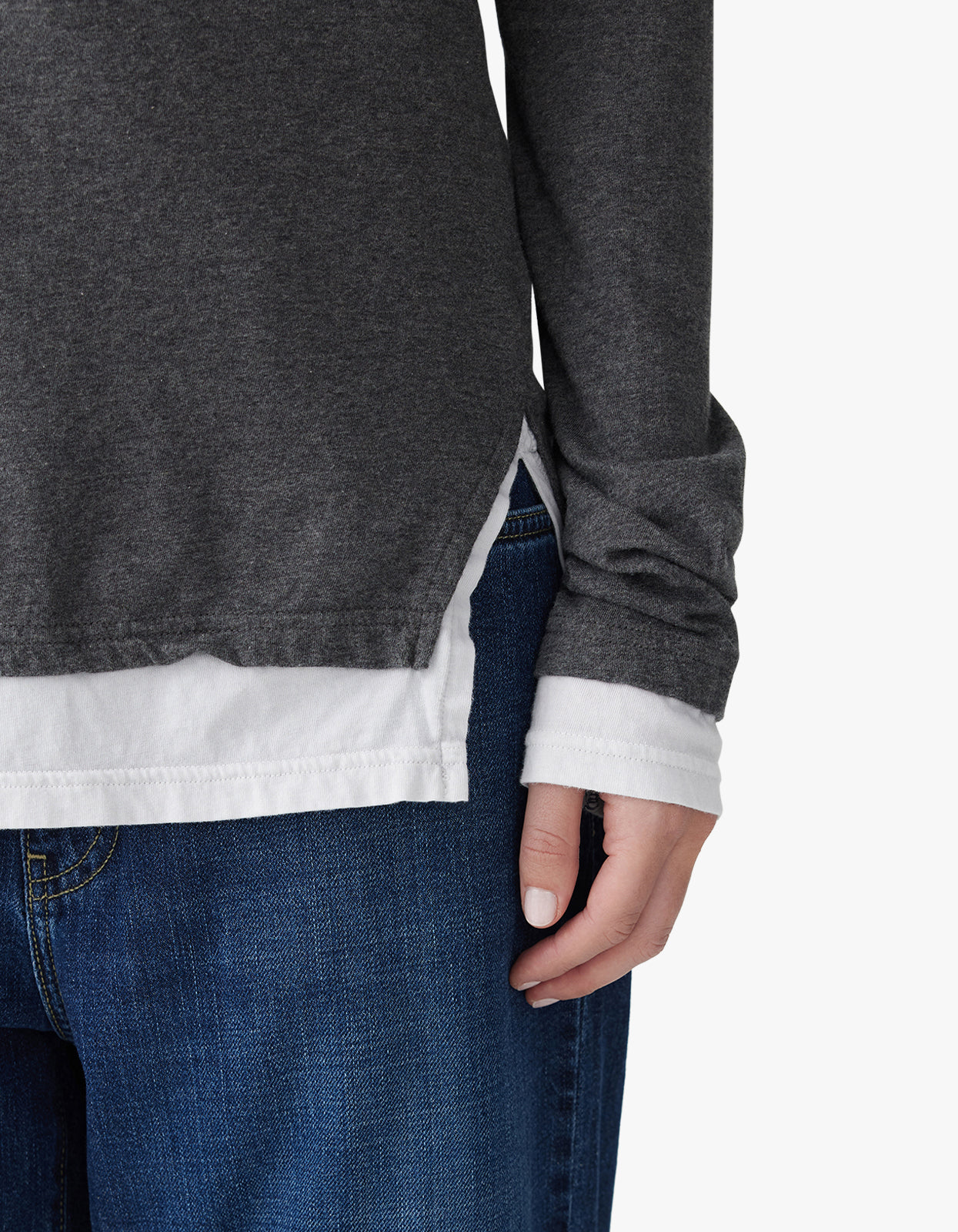 Split Layered L/S T.Shirt - Charcoal Marl/White