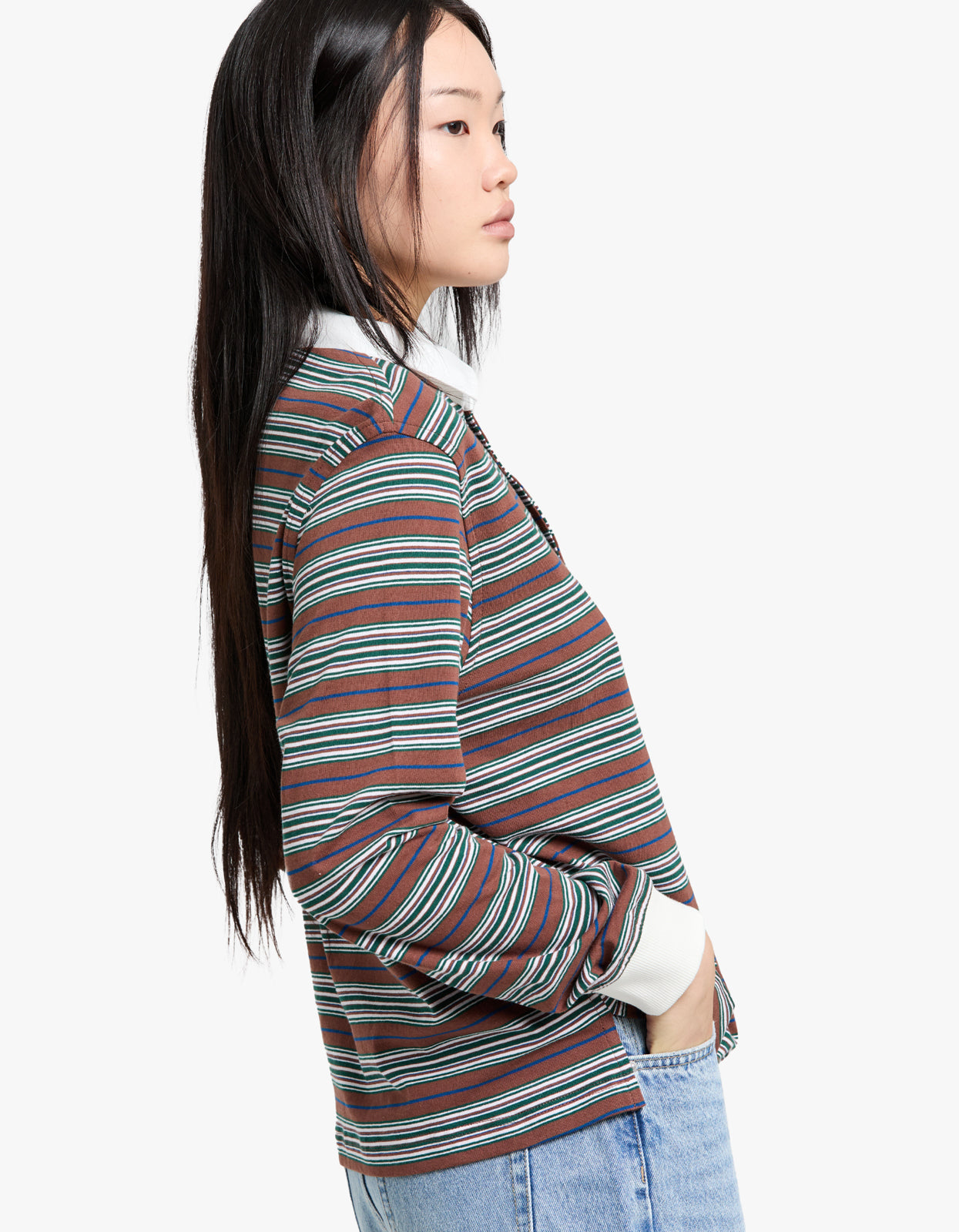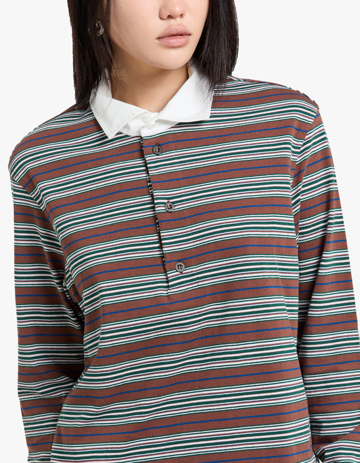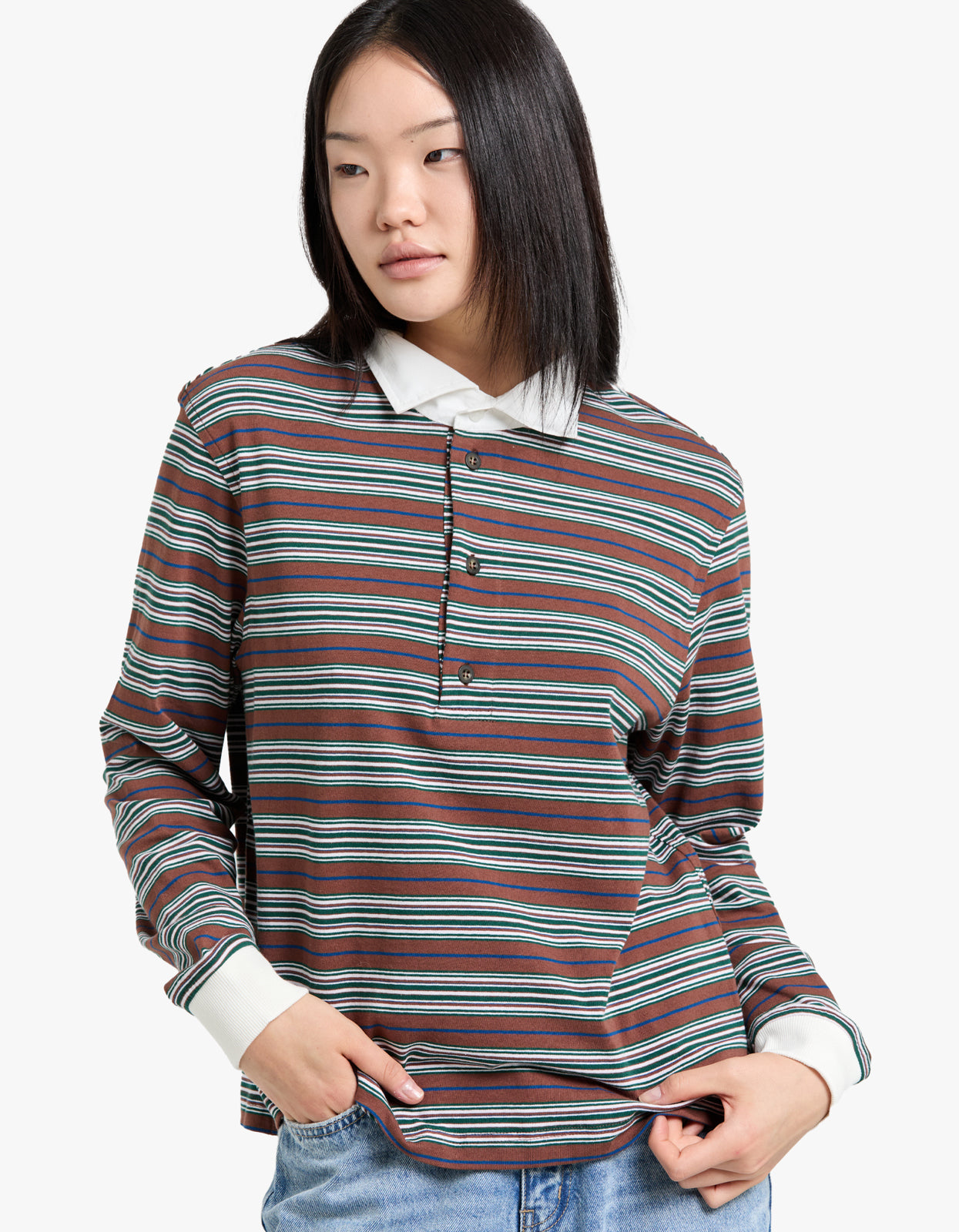 Vintage Stripe Long Sleeve Polo - Brown/ Cobalt/ Military/ White