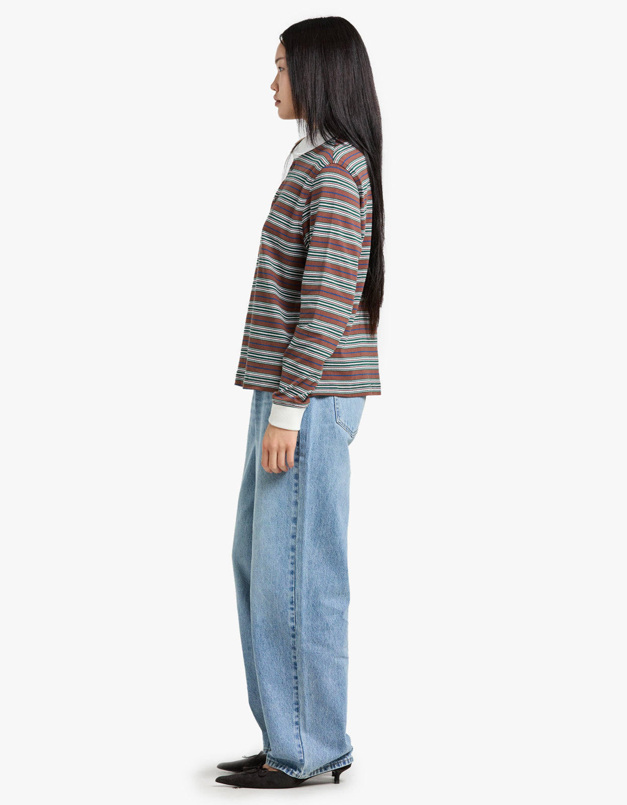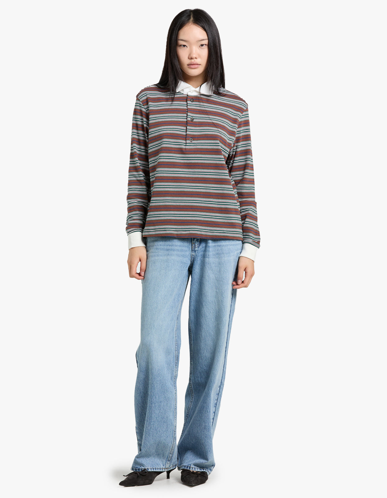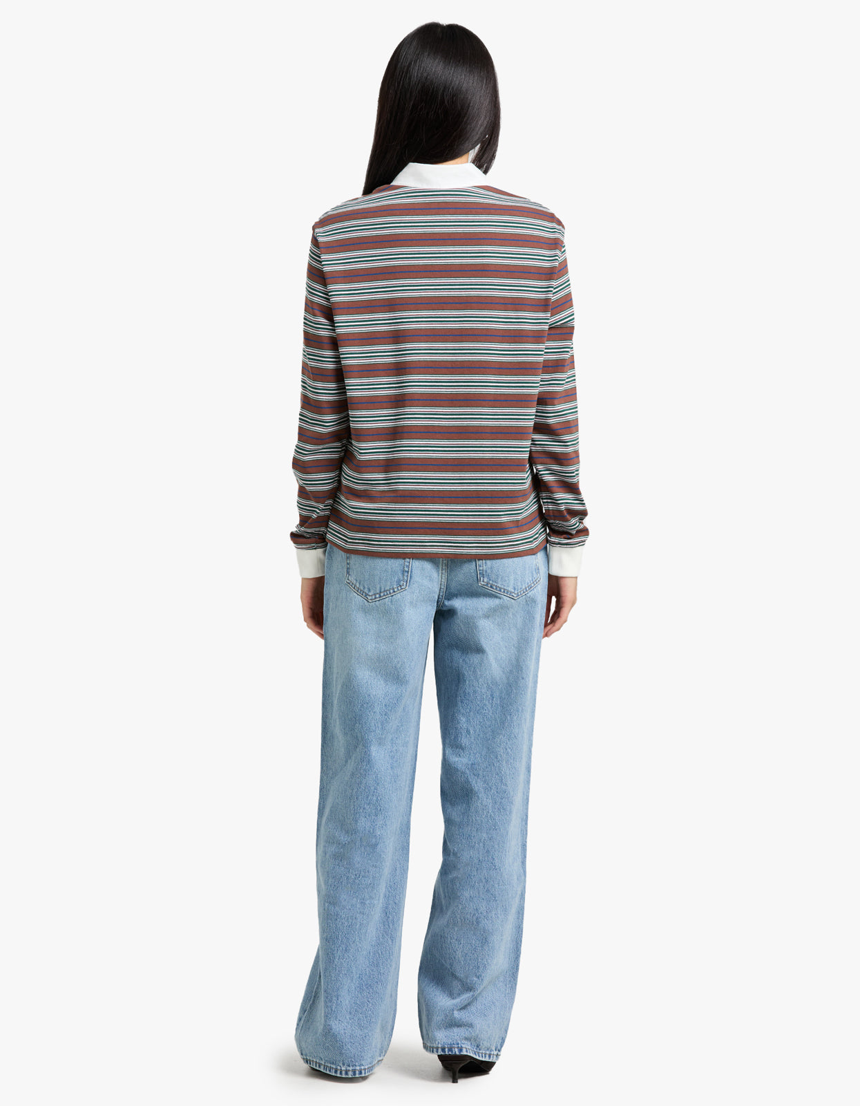 Vintage Stripe Long Sleeve Polo - Brown/ Cobalt/ Military/ White