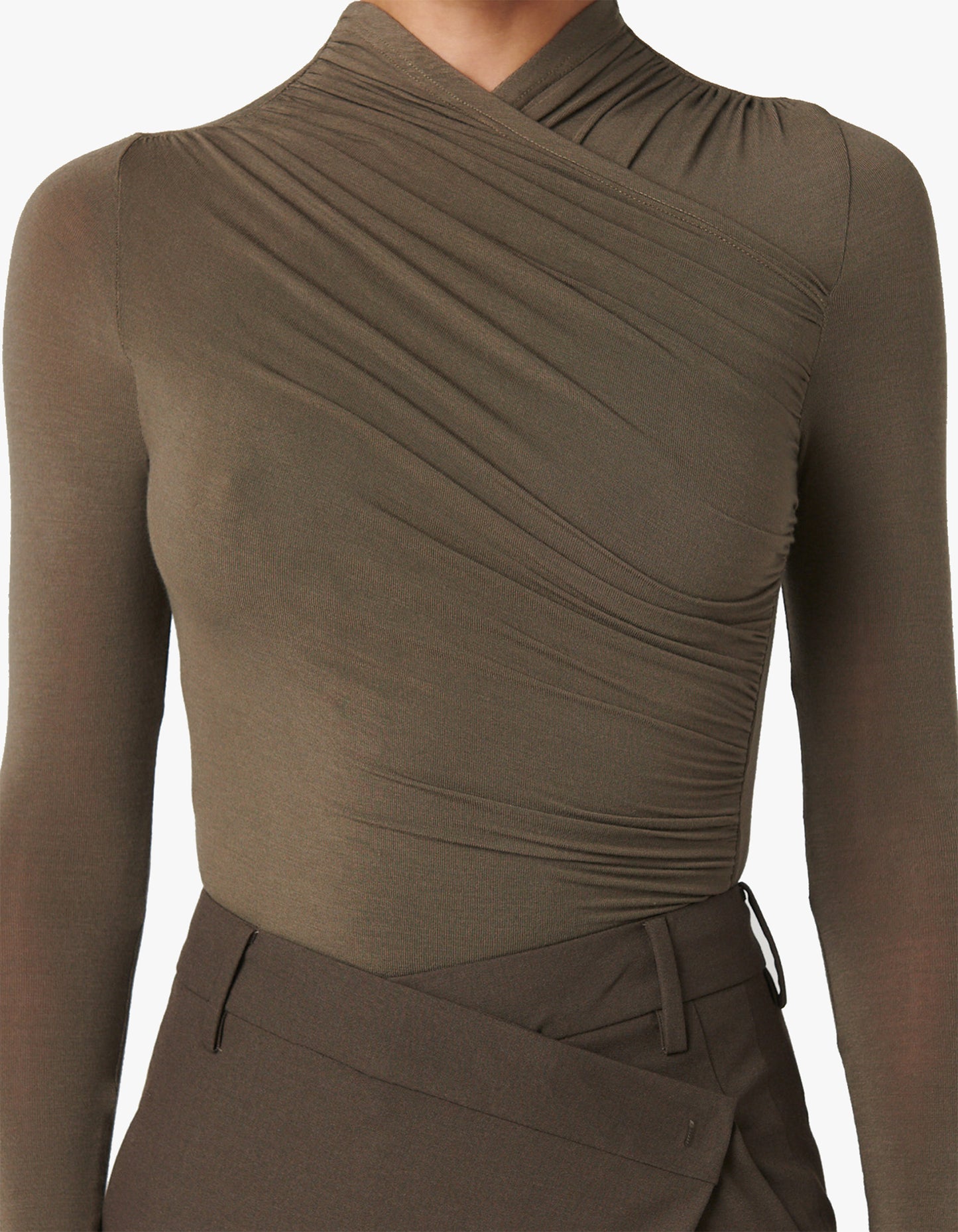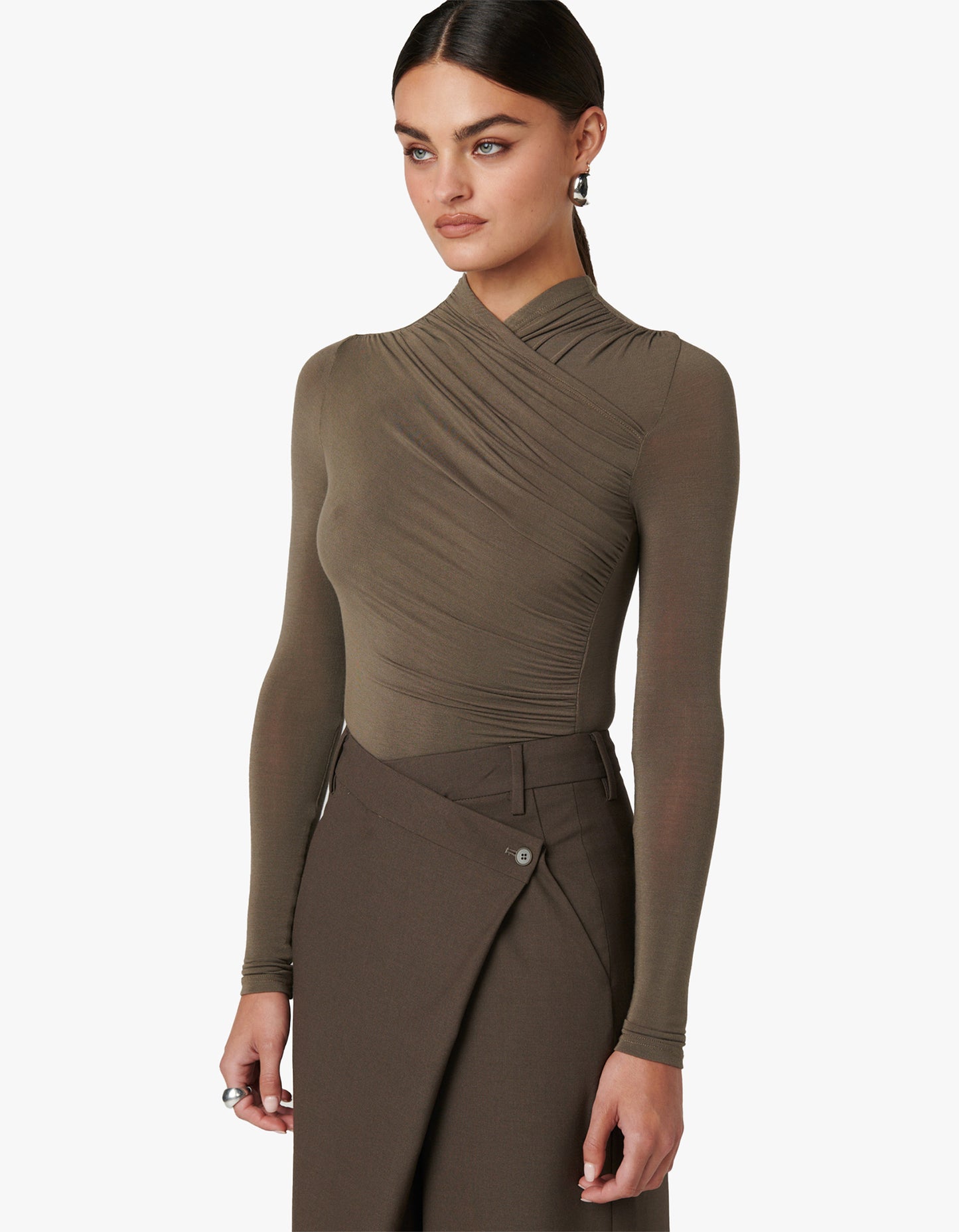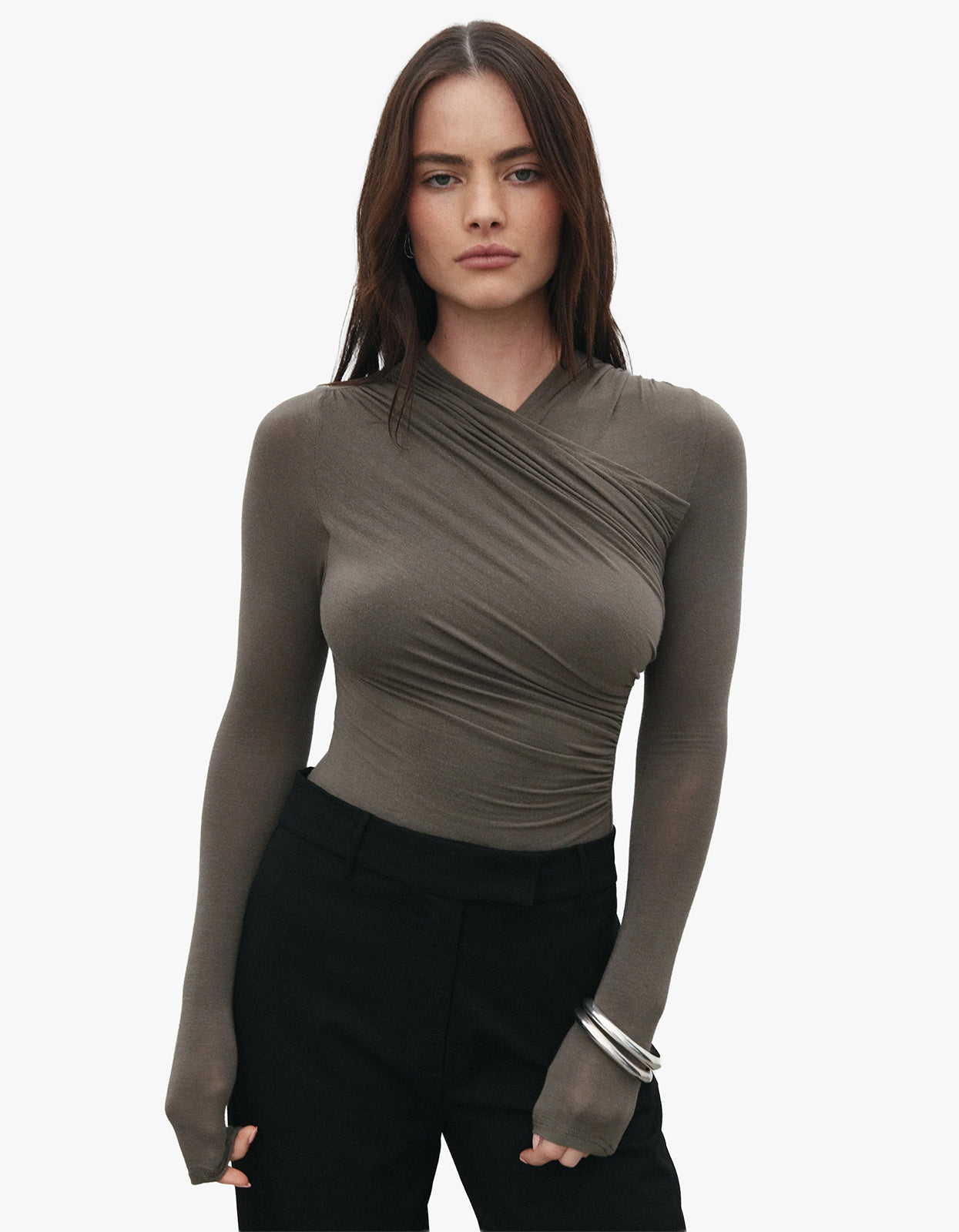 Made from soft, stretch-knit fabric in an elegant khaki tone, this timeless piece effortlessly combines comfort and style. Elevate your capsule wardrobe with this sophisticated and versatile bodysuit.