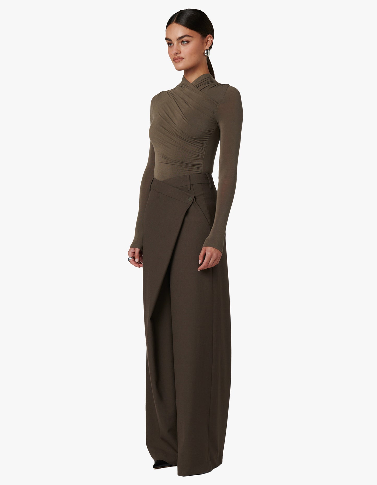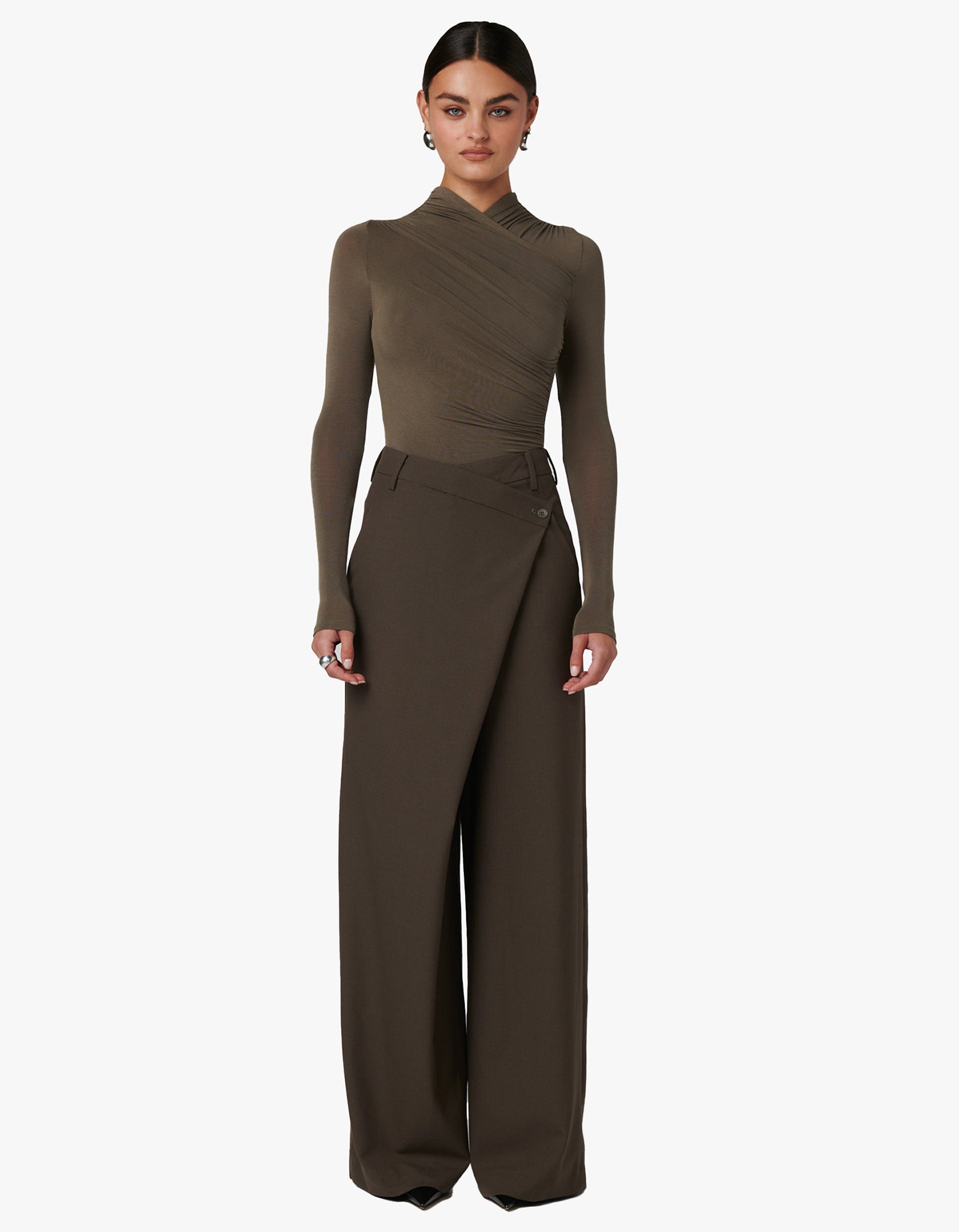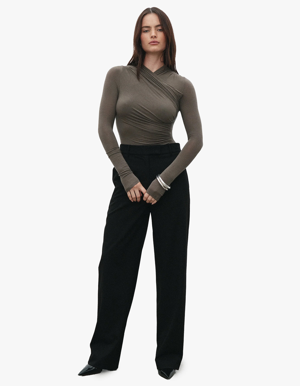 Made from soft, stretch-knit fabric in an elegant khaki tone, this timeless piece effortlessly combines comfort and style. Elevate your capsule wardrobe with this sophisticated and versatile bodysuit.