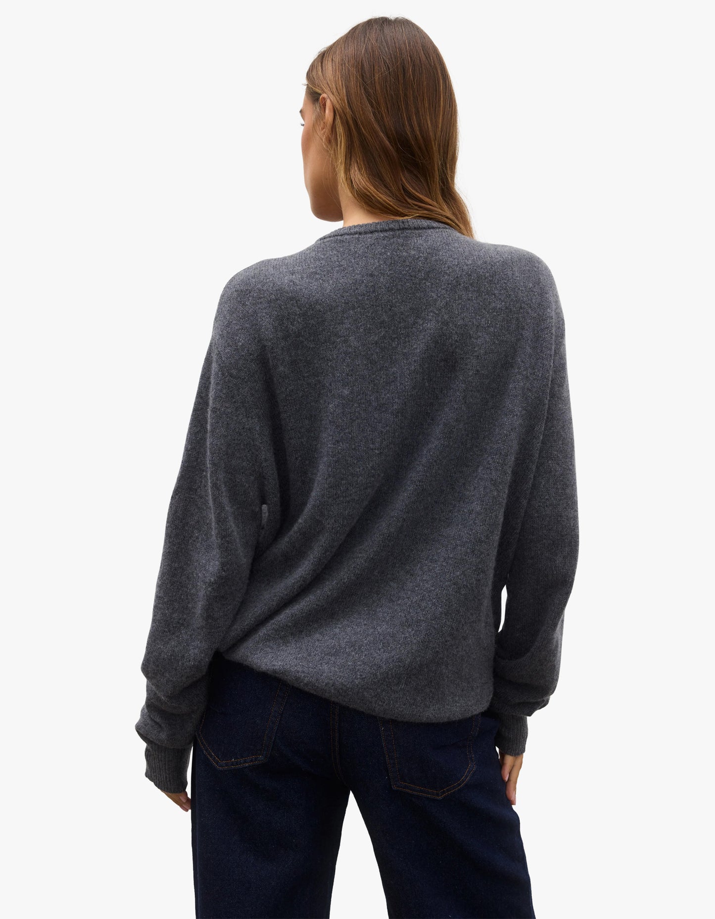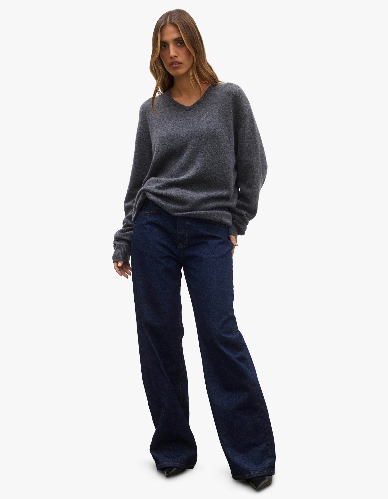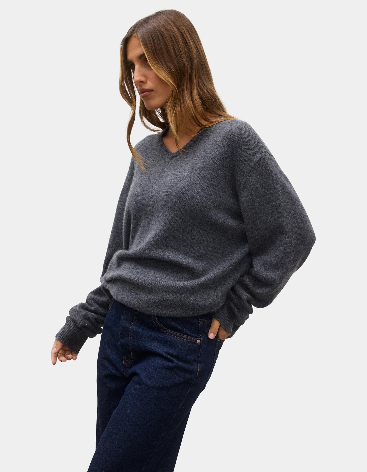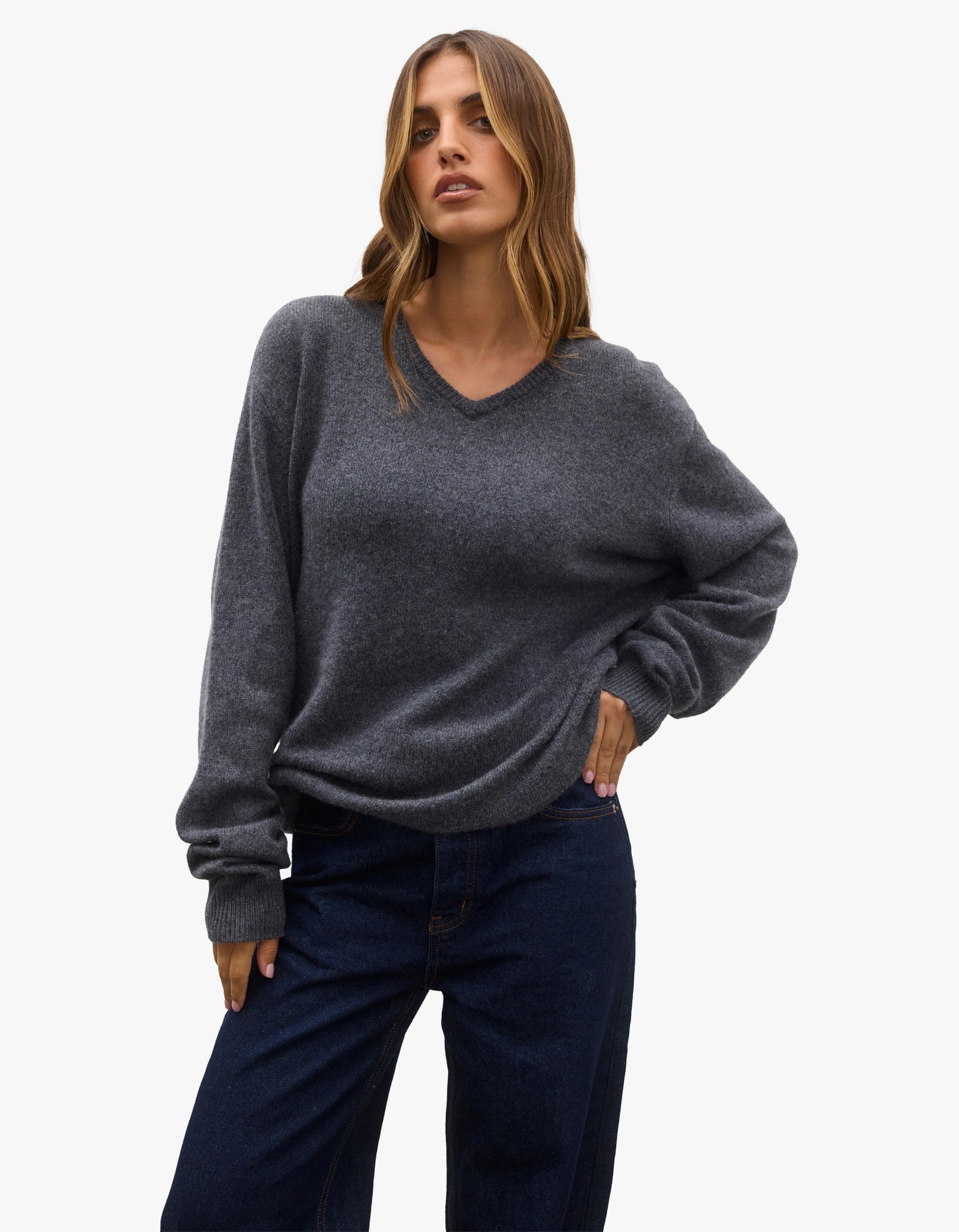 Billie Knit V Neck Sweater - Dark Heather Grey