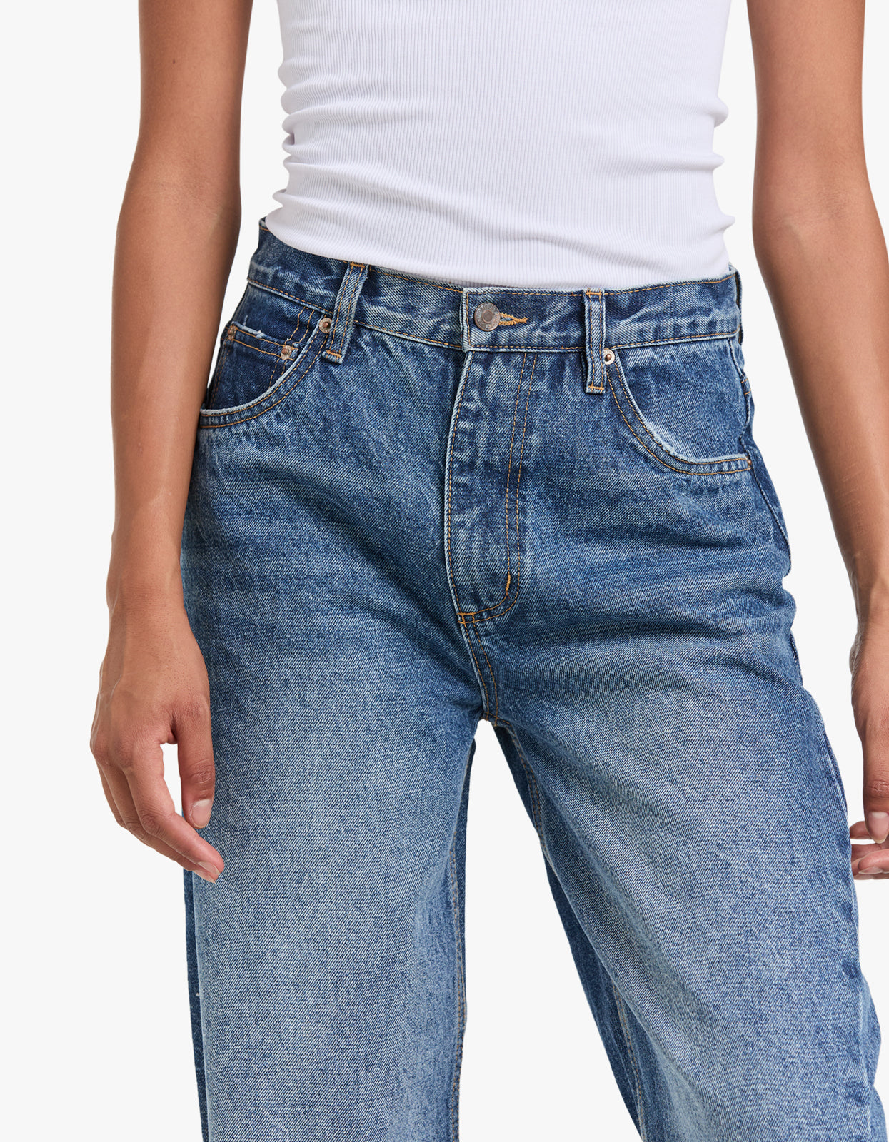 Add some Brooklyn edge to your wardrobe with our Bayse- Brooklyn Barrel Leg jeans in True Blue.