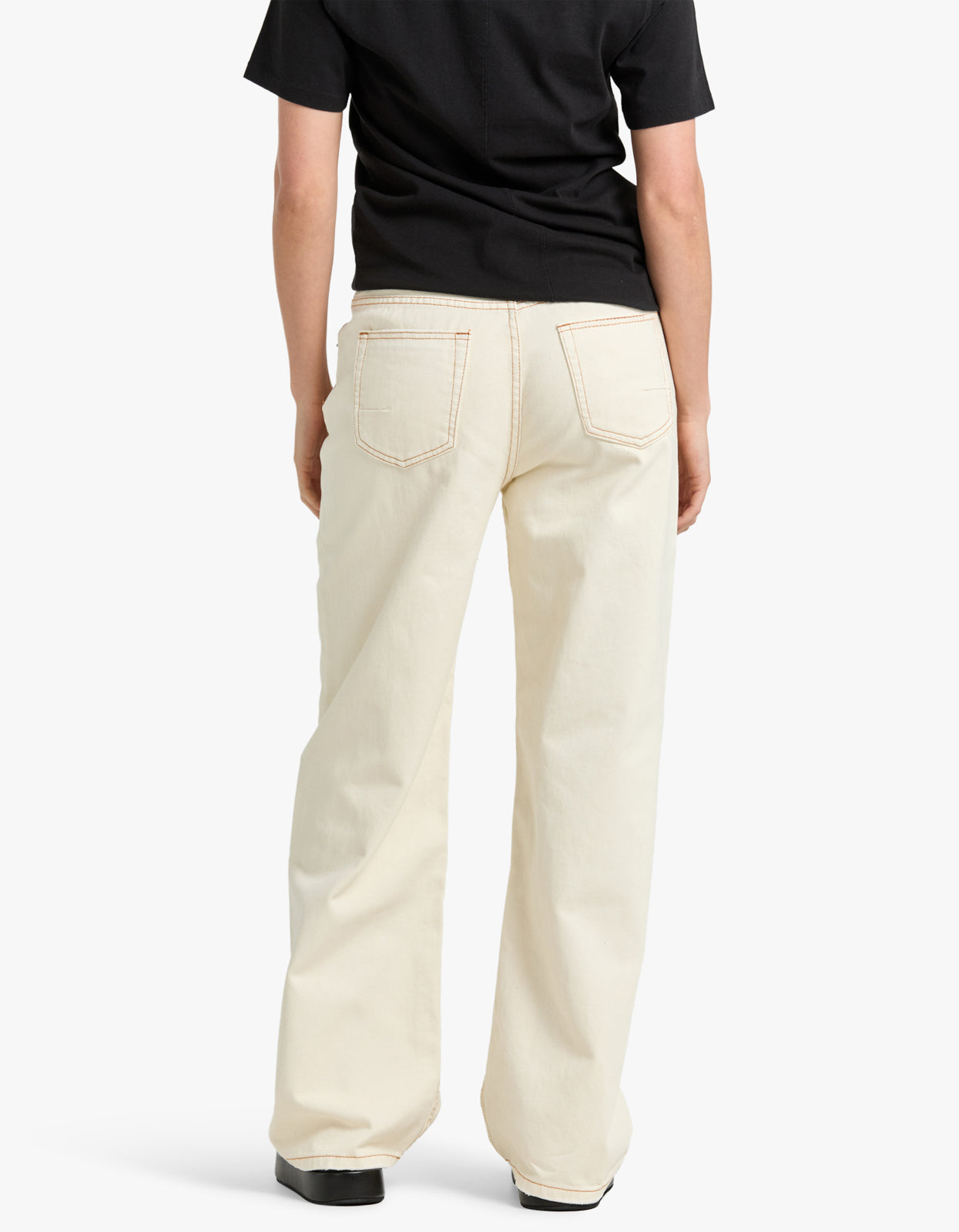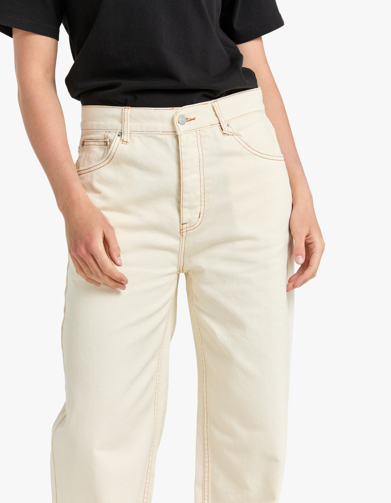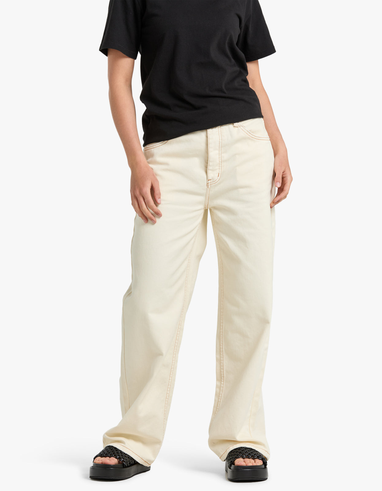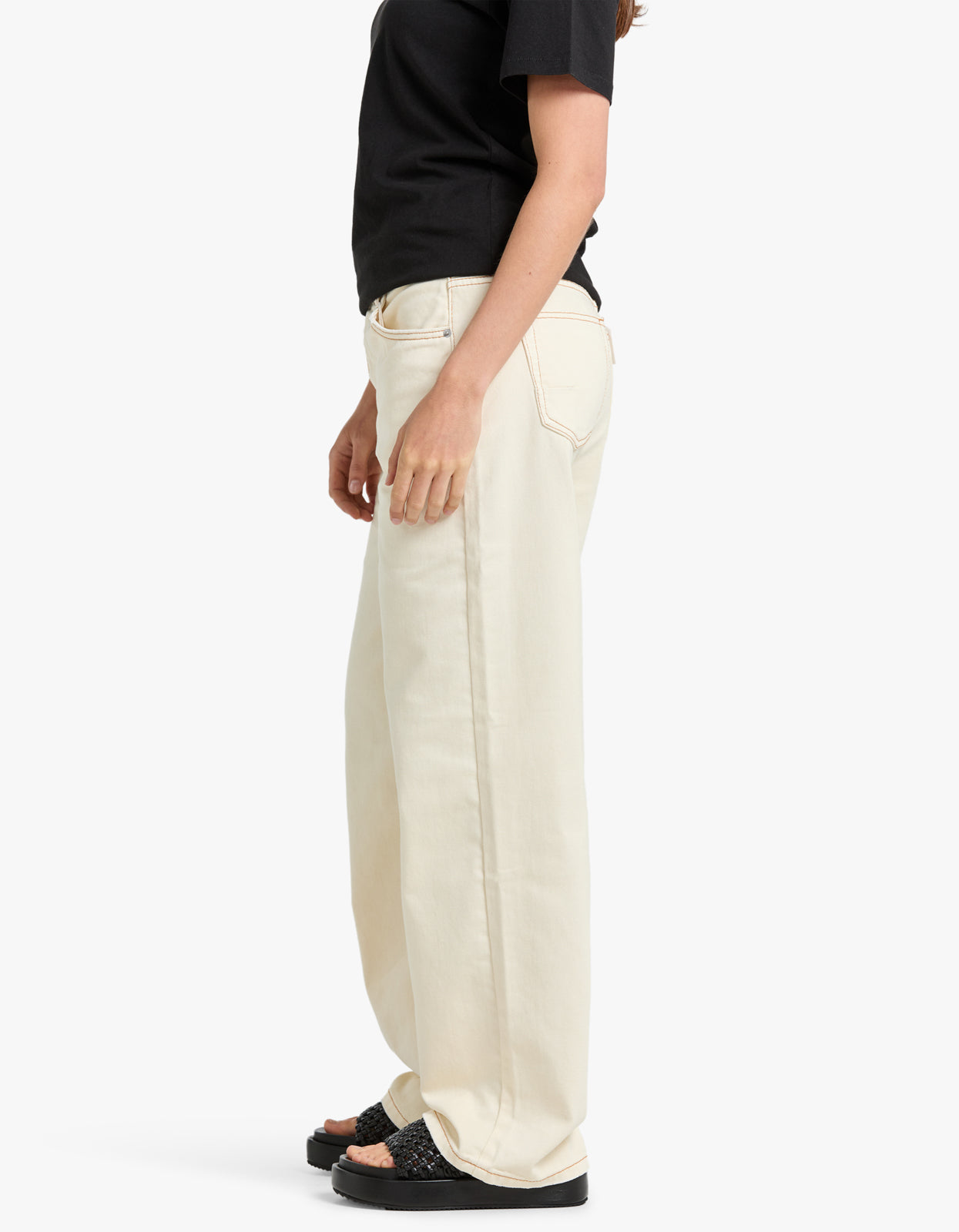 Designed in Melbourne Australia - the Perry Low Slung Baggy Jean in a super fresh white for summer from BAYSE is made to sit low on the hips with a directional, baggy straight leg.