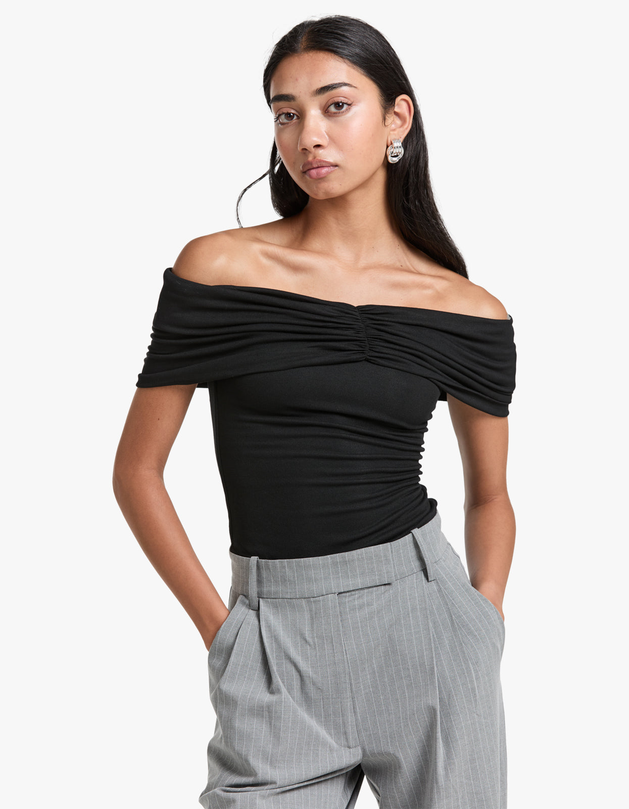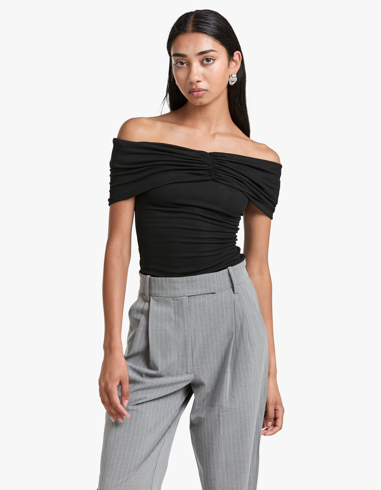 Indulge in luxury with Bayse's Eisley Sleeveless Bodysuit in classic black.