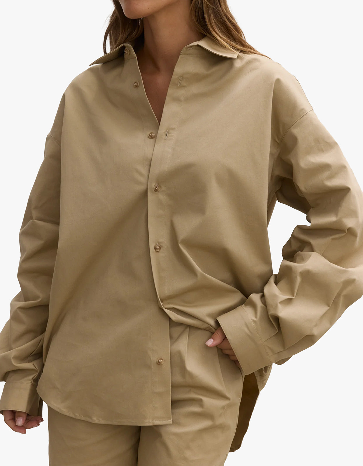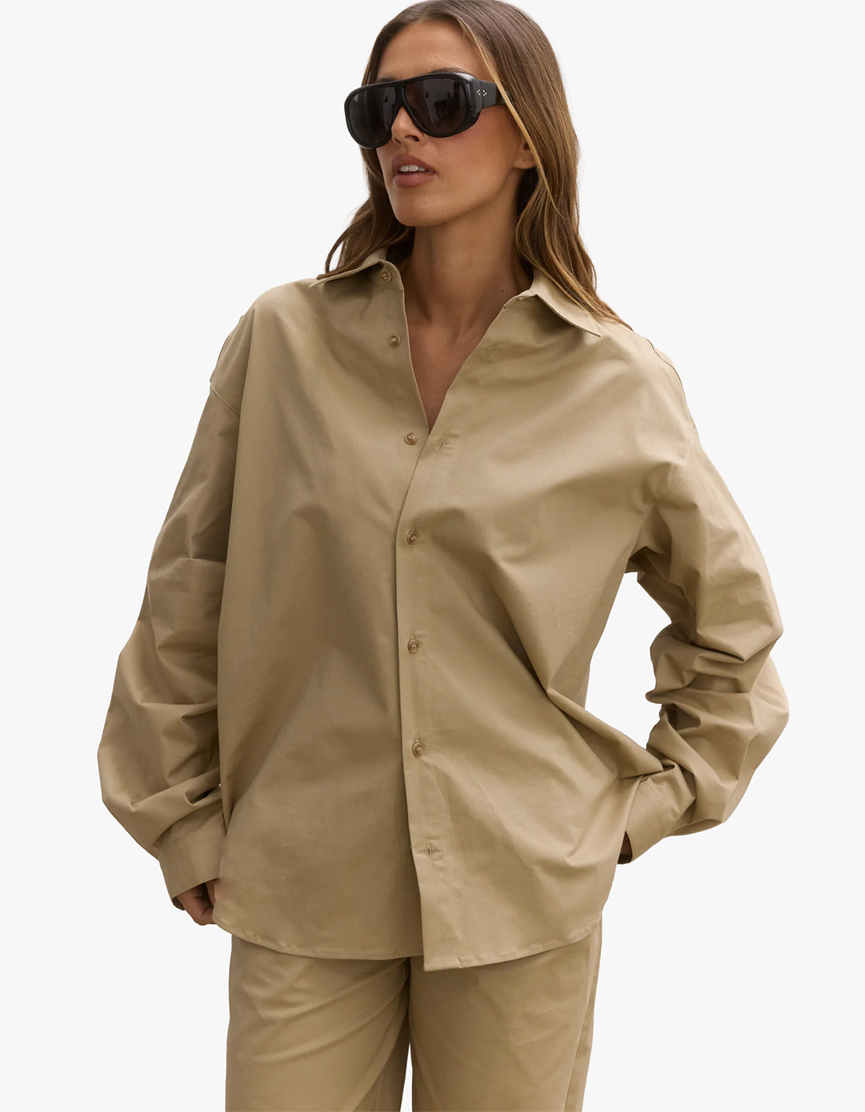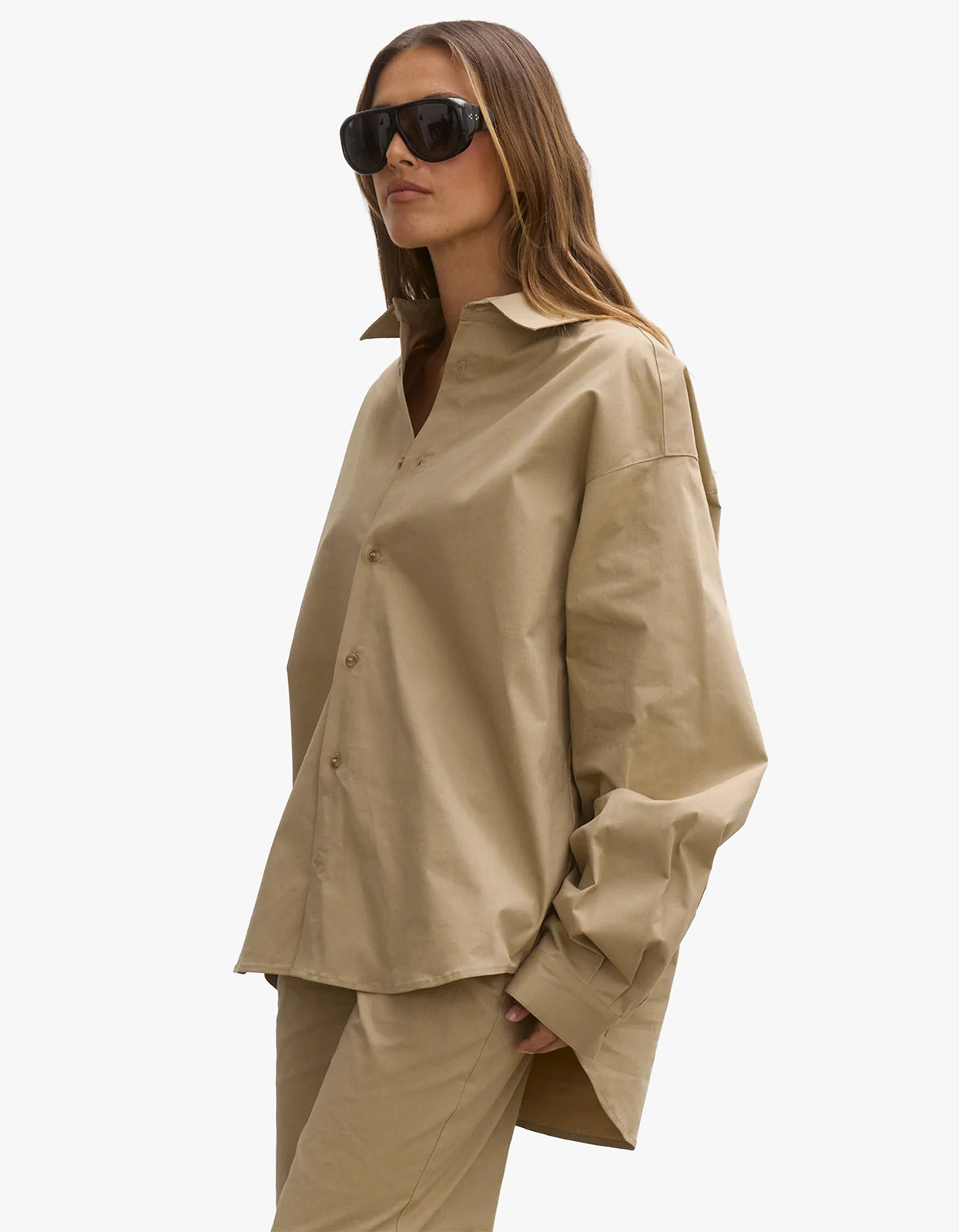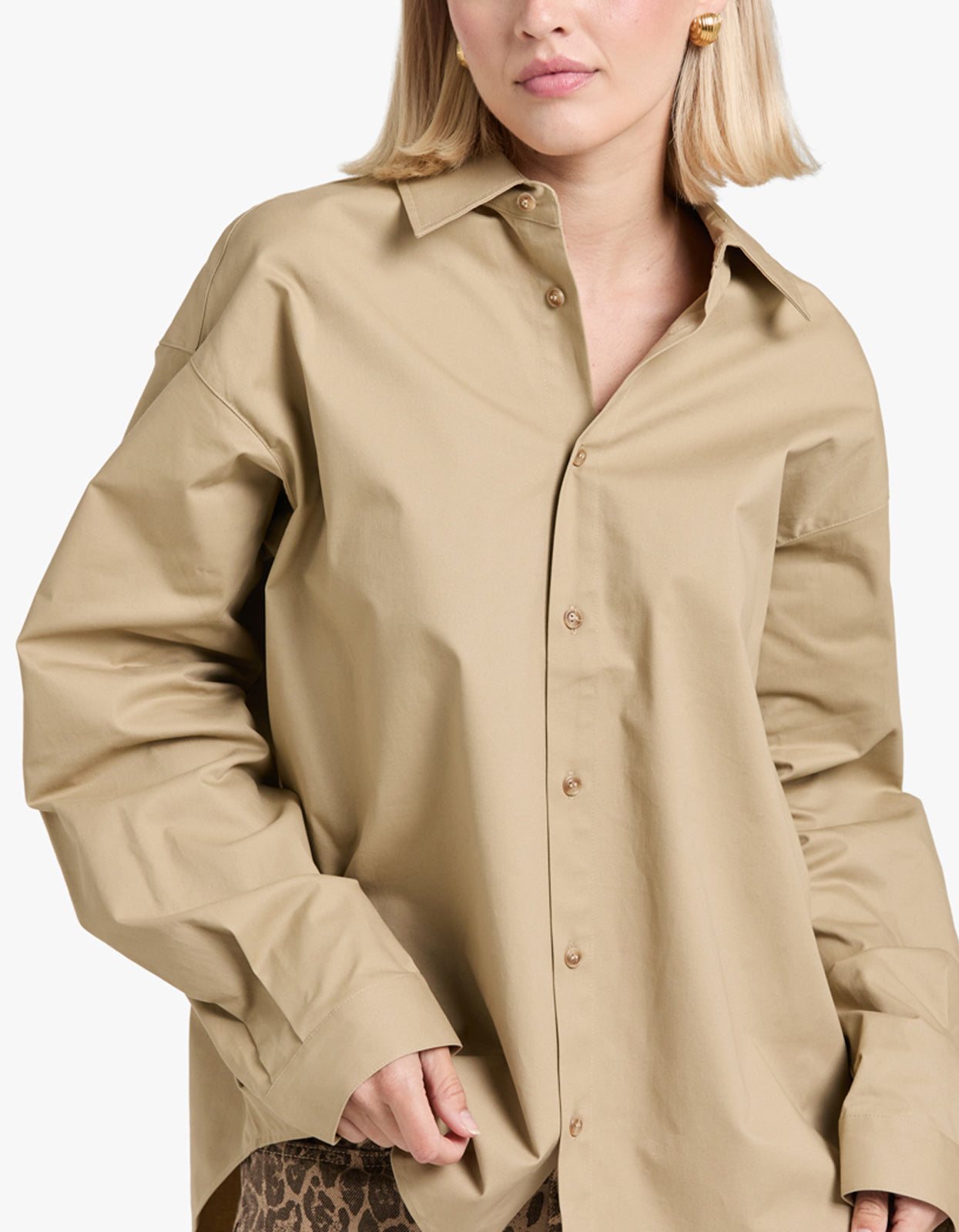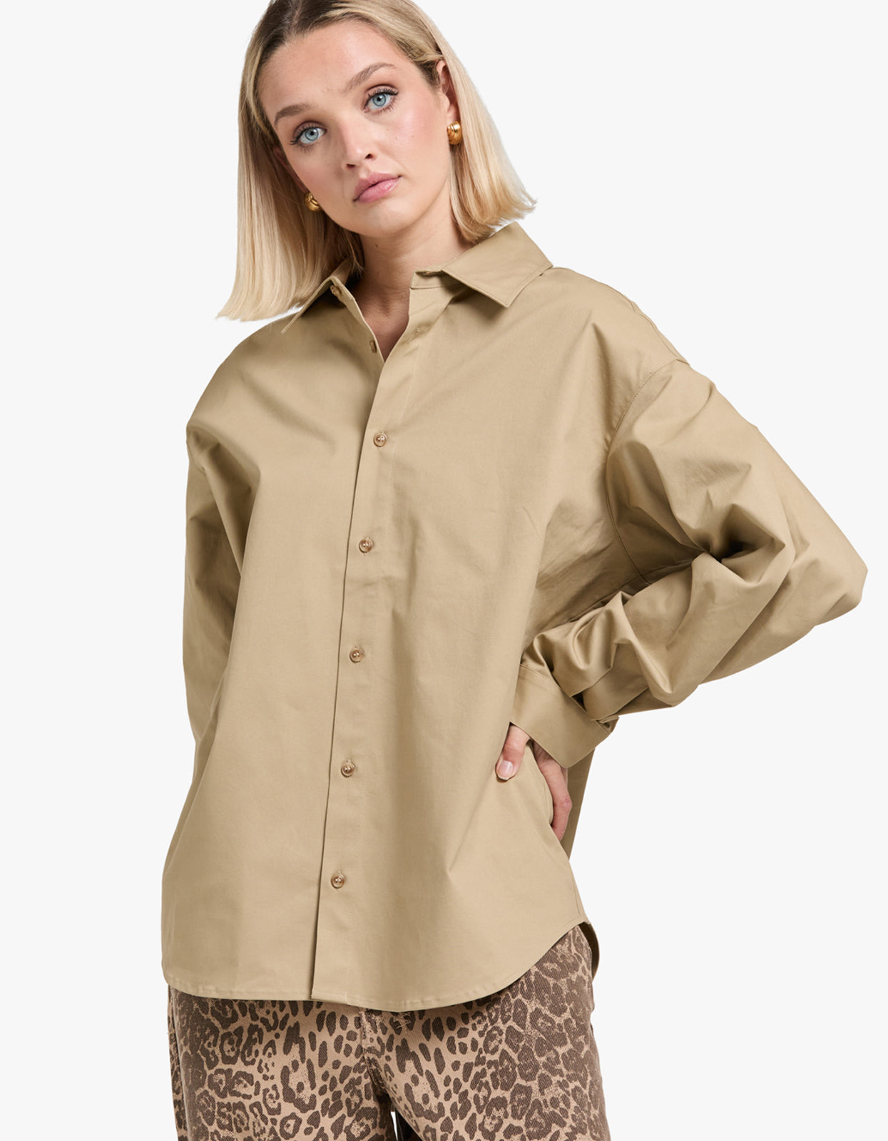 Crafted with exquisite attention to detail, this Desert-colored shirt exudes elegance. The perfect addition to any wardrobe, its intricate design and premium quality make it a timeless piece. Complete your look with the Esther Shirt and elevate your style.