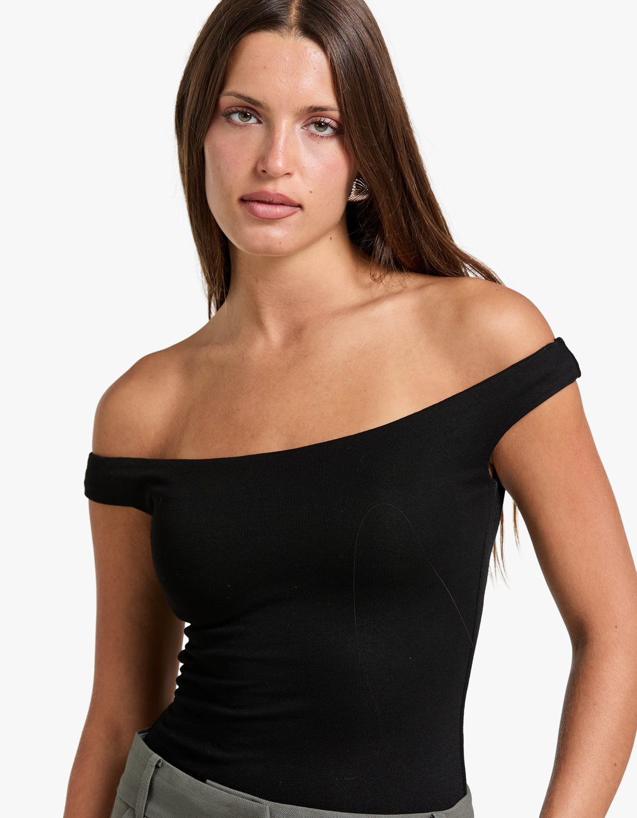 Its soft and stretchy fabric contours to your body for a flattering fit. Wear it on its own or as a layering piece for any occasion. Elevate your style with the off-the-shoulder design.