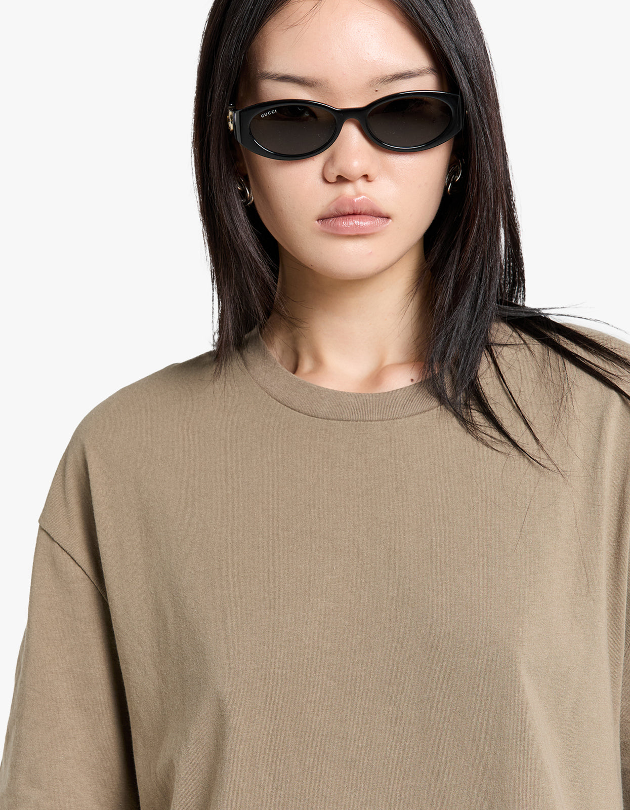 The oversized fit of this classic tee offers a relaxed and effortless look, perfect for every day wear. Elevate your wardrobe with a touch of luxury and feel confident in this must-have piece.